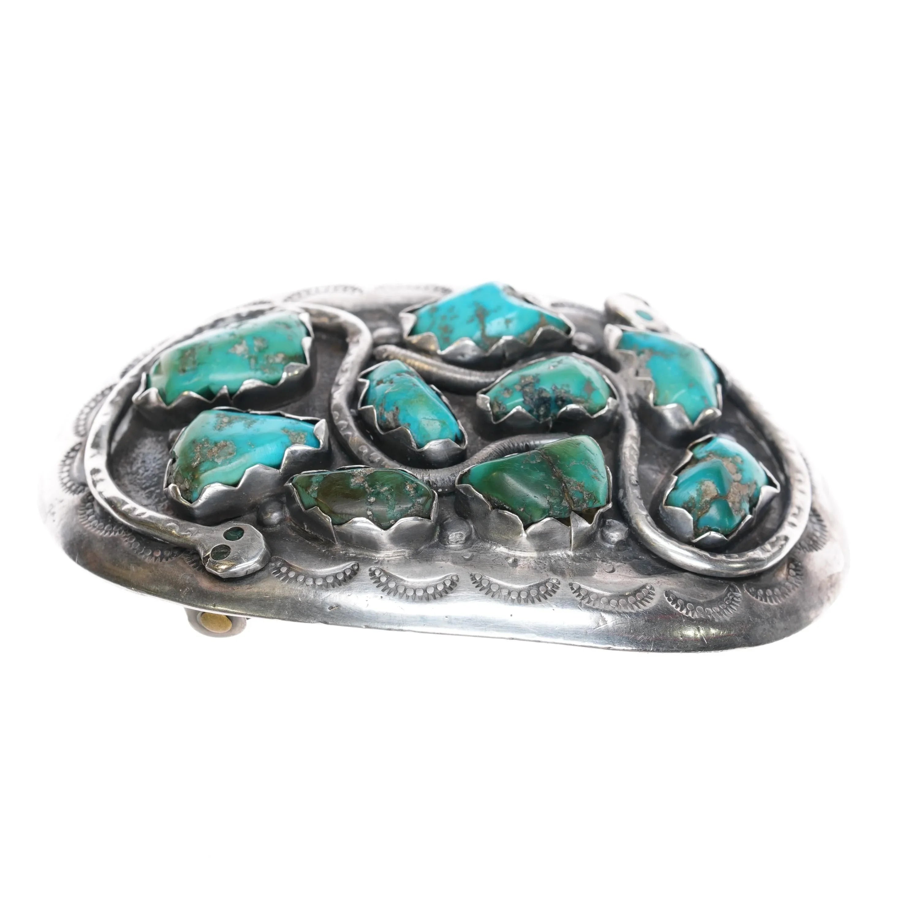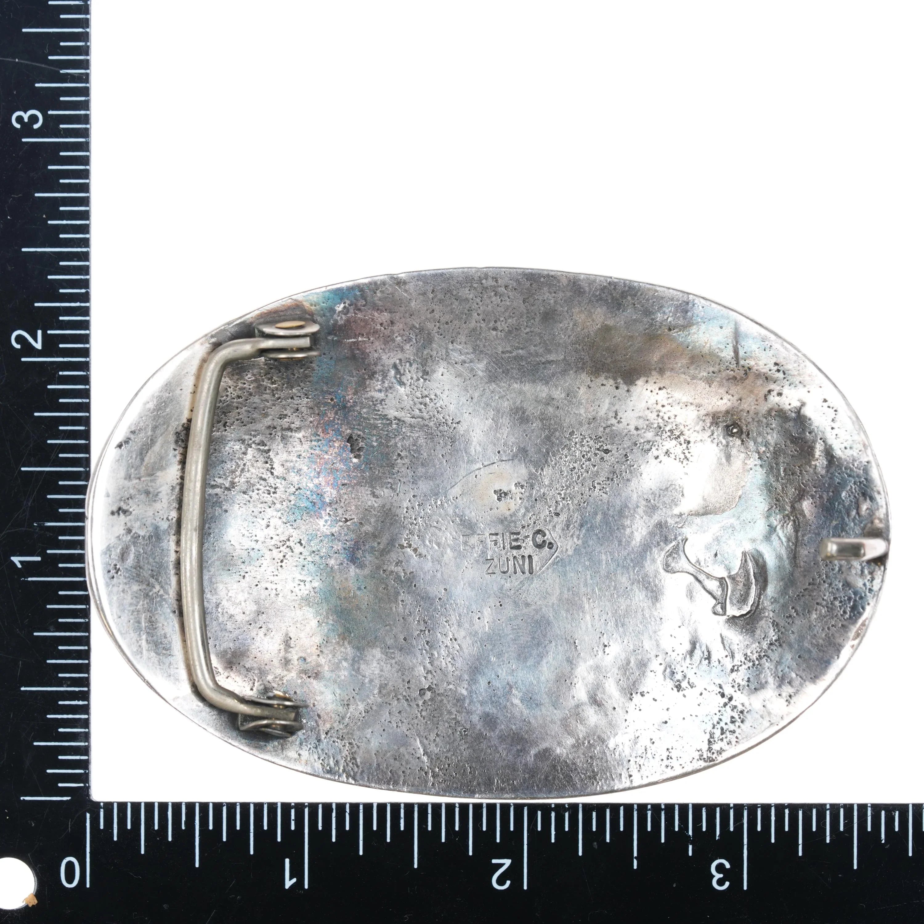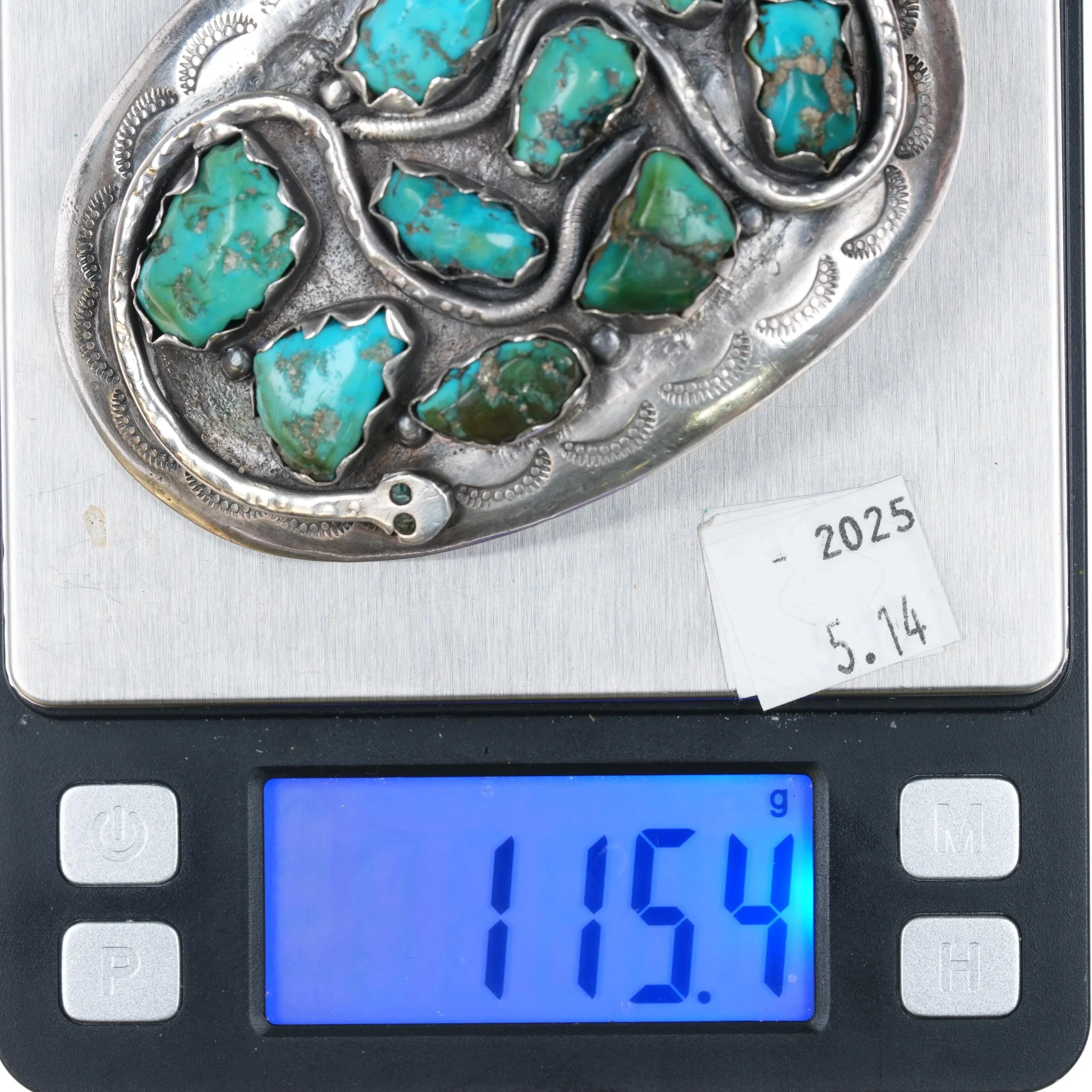 Large/Heavy Effie Calavaza Zuni Sterling silver Snake turquoise belt buckle