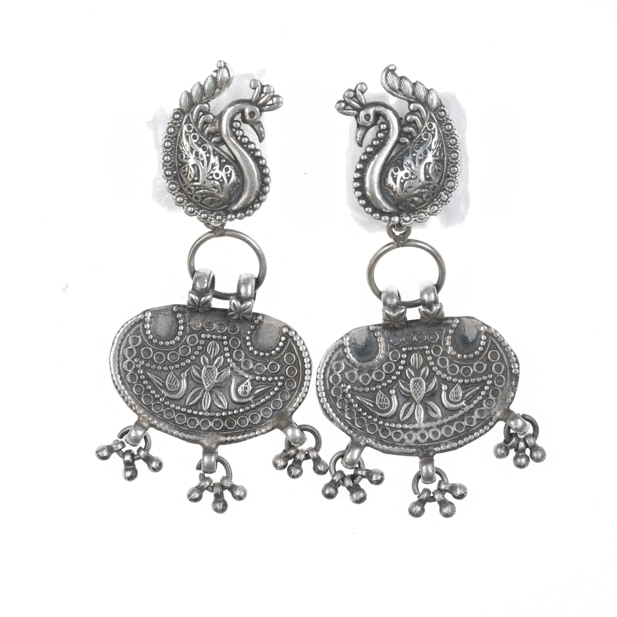 Large Retro Sterling dangle earrings with birds. Very substatial handmade earrings, unsure of origon. No issues.<br><br>anderas