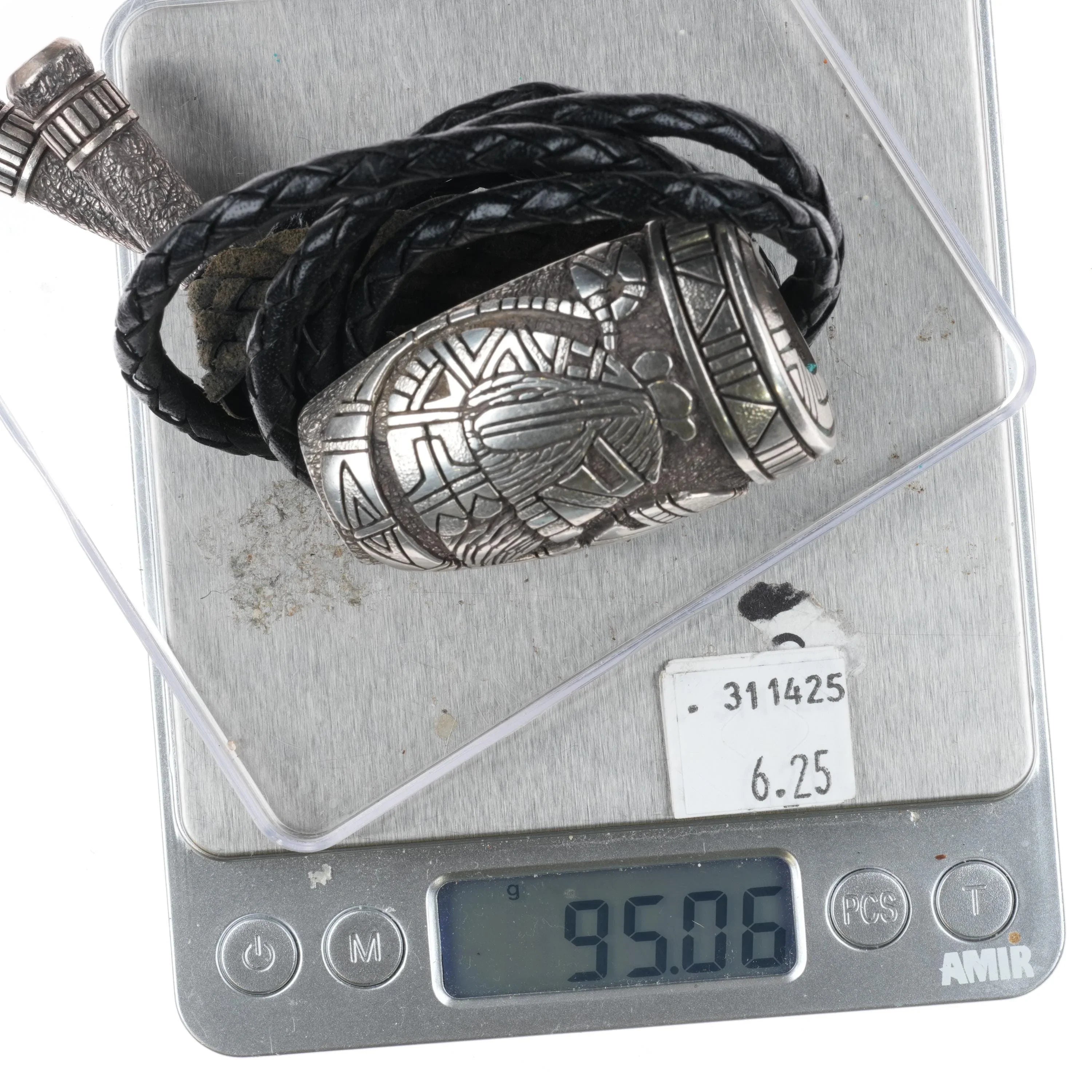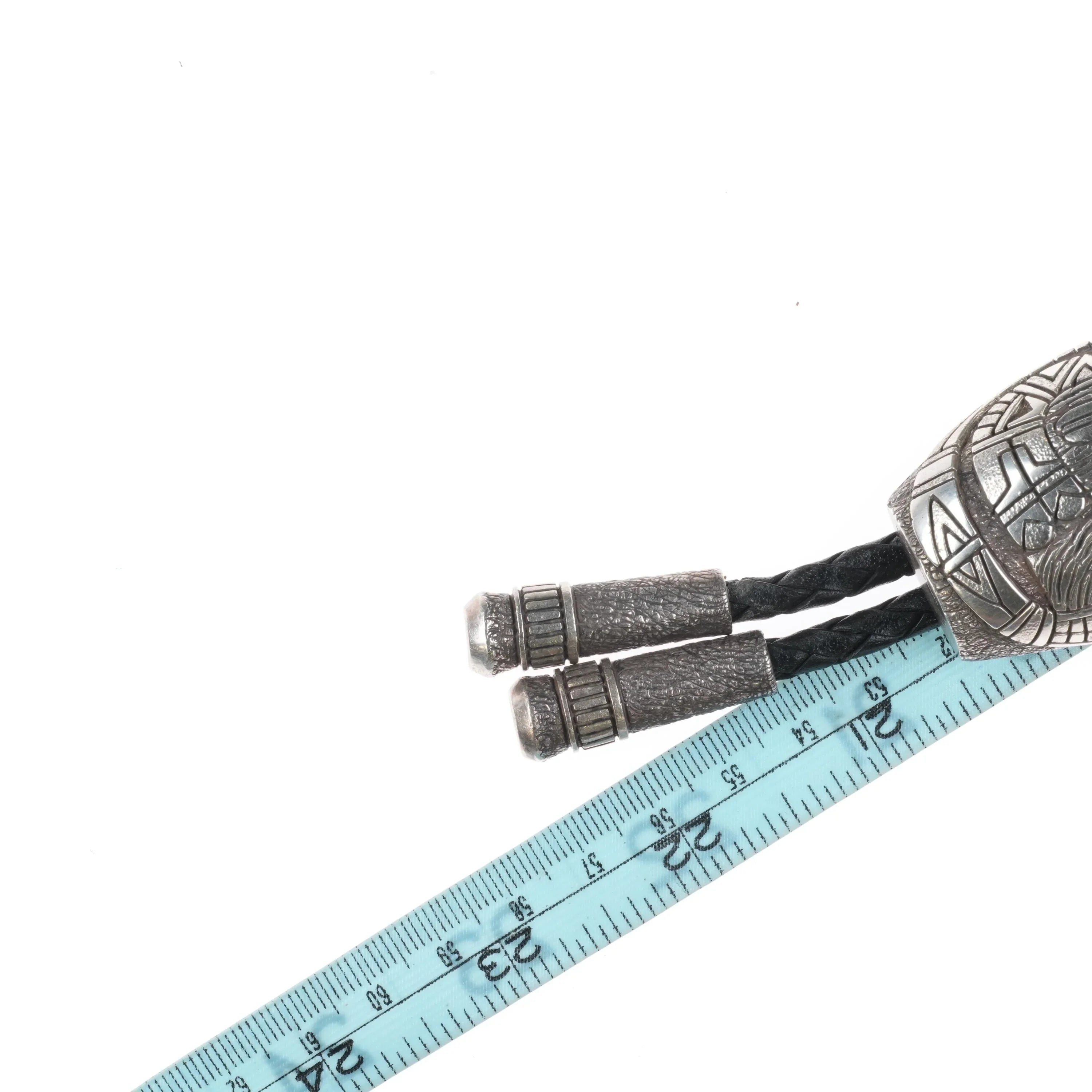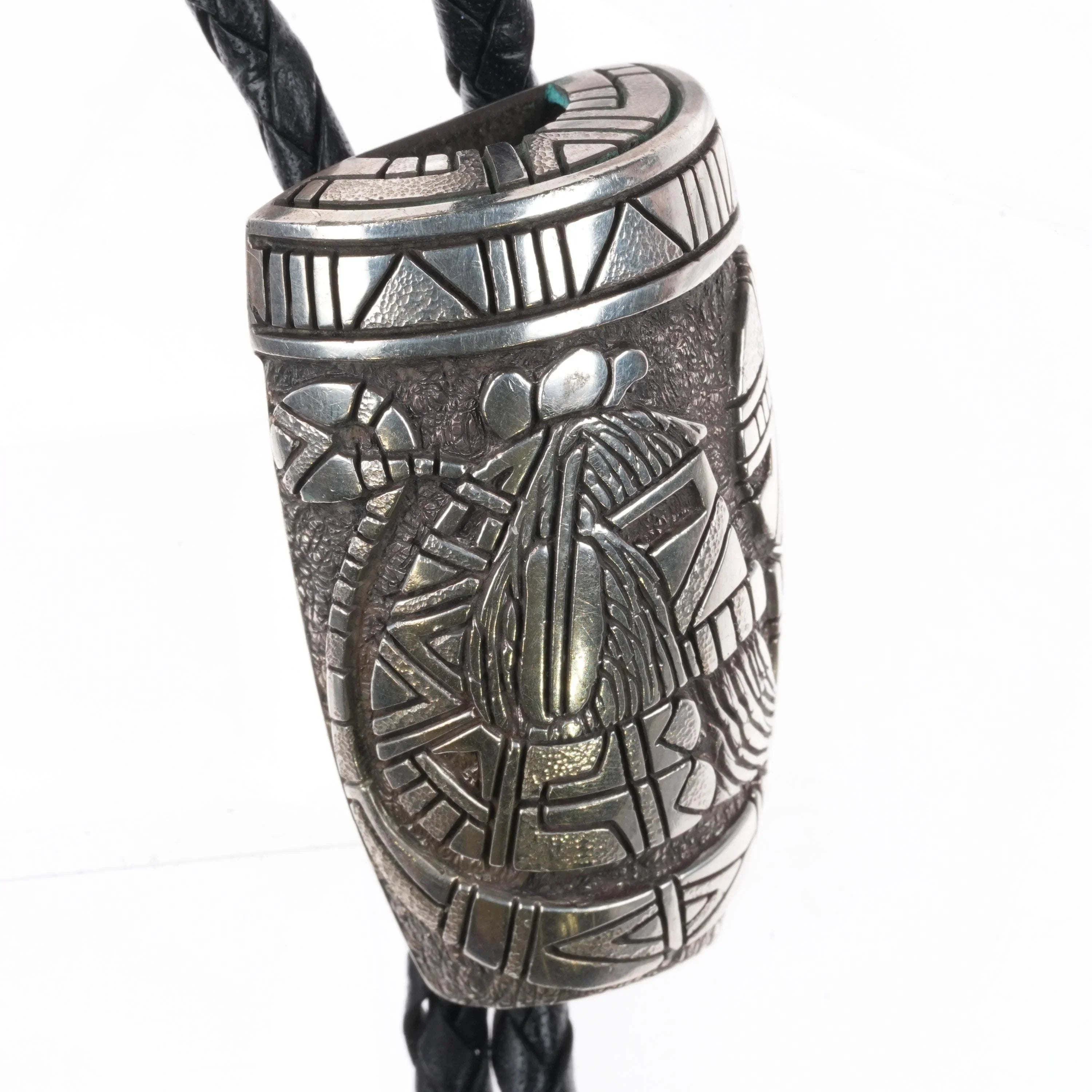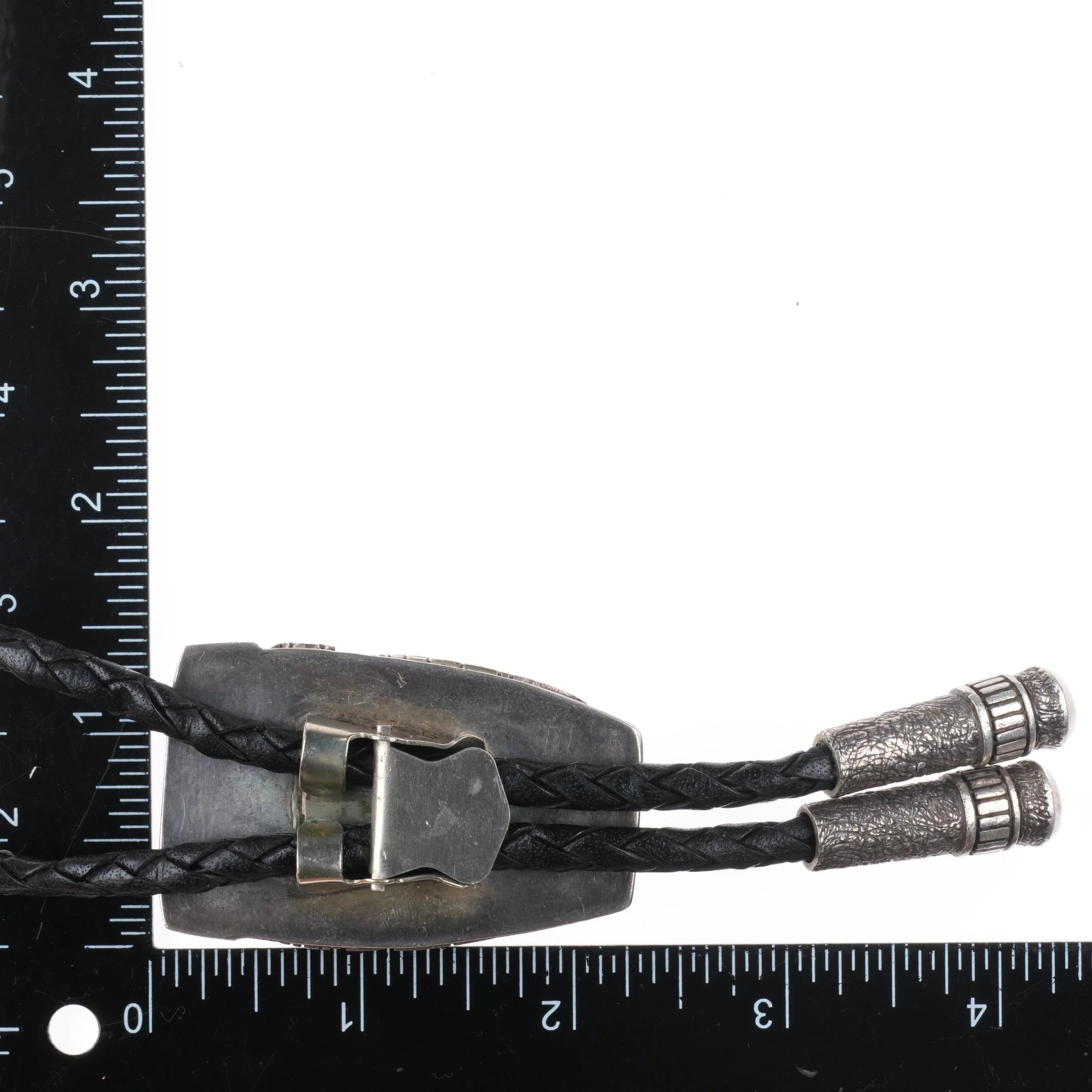Lee Epperson Cherokee Sterling silver, turquoise/coral overlay bolo tie