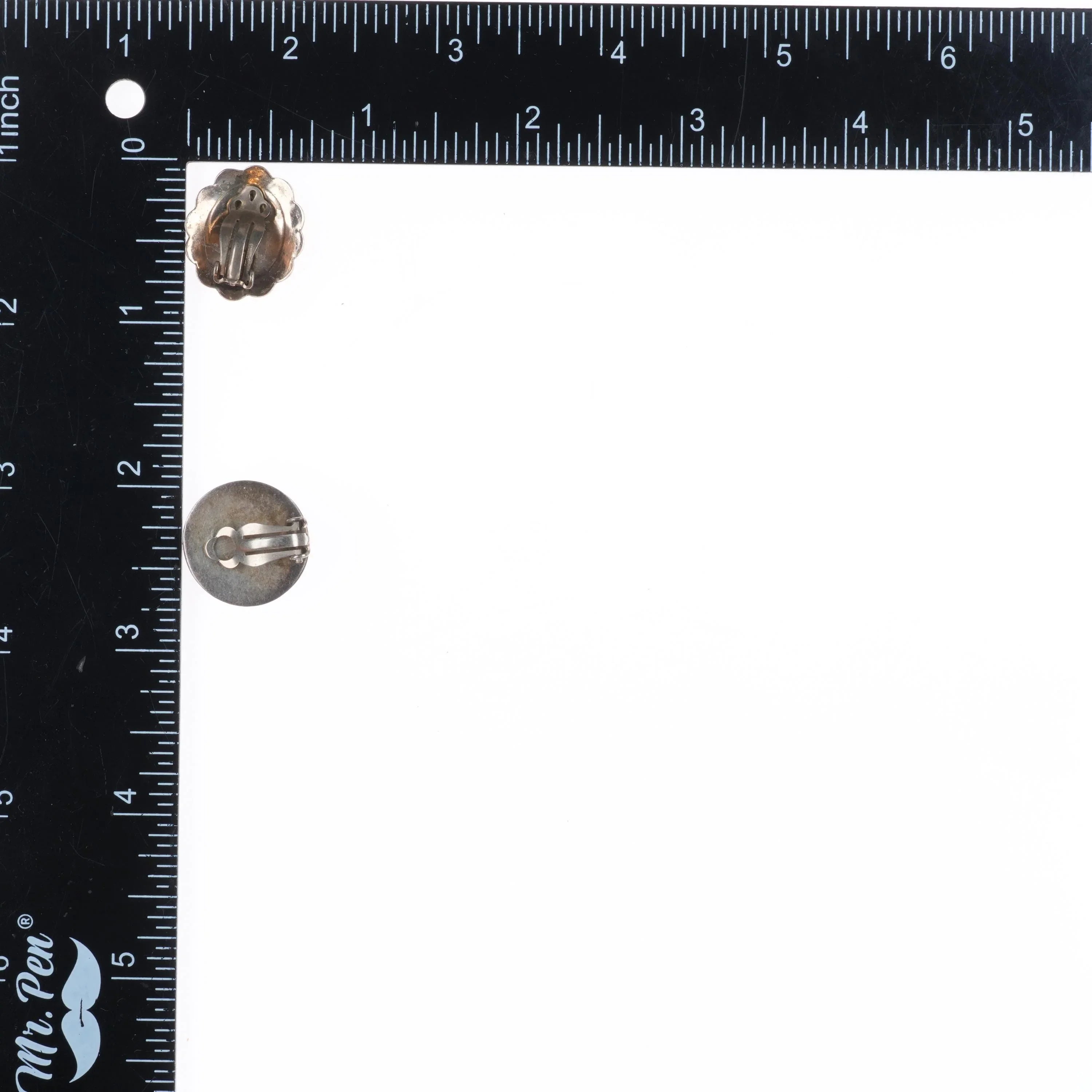 Lot of Retro southwestern/designer/Mexican sterling silver clip-on earrings. Great earrings with no damage other than one missing a beaded accent on the rim, strong springs on clips. Selling 5 pairs shown.