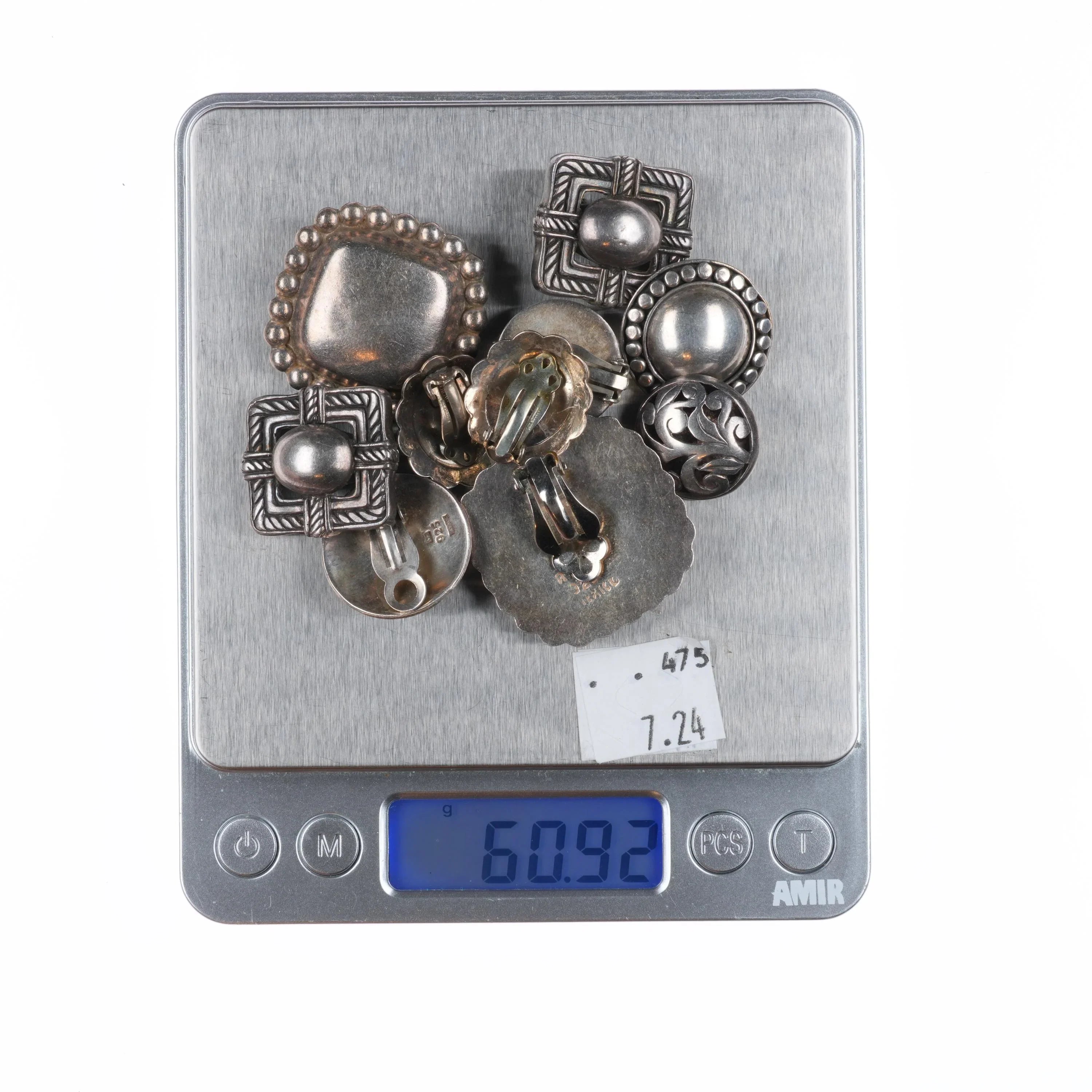 Lot of Retro southwestern/designer/Mexican sterling silver clip-on earrings