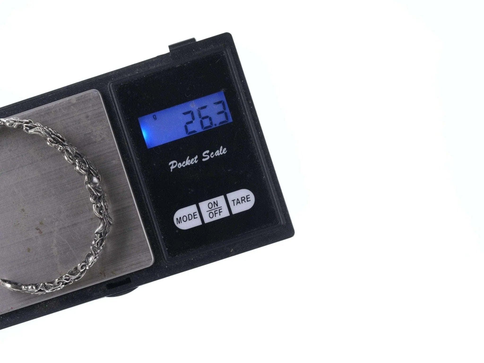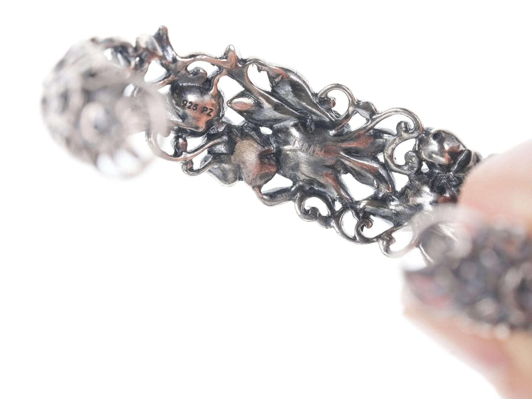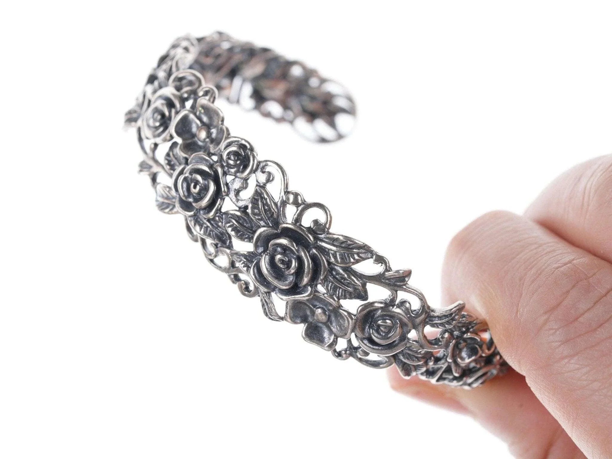6.5" Retro Israel Sterling silver rose filigree cuff bracelet
