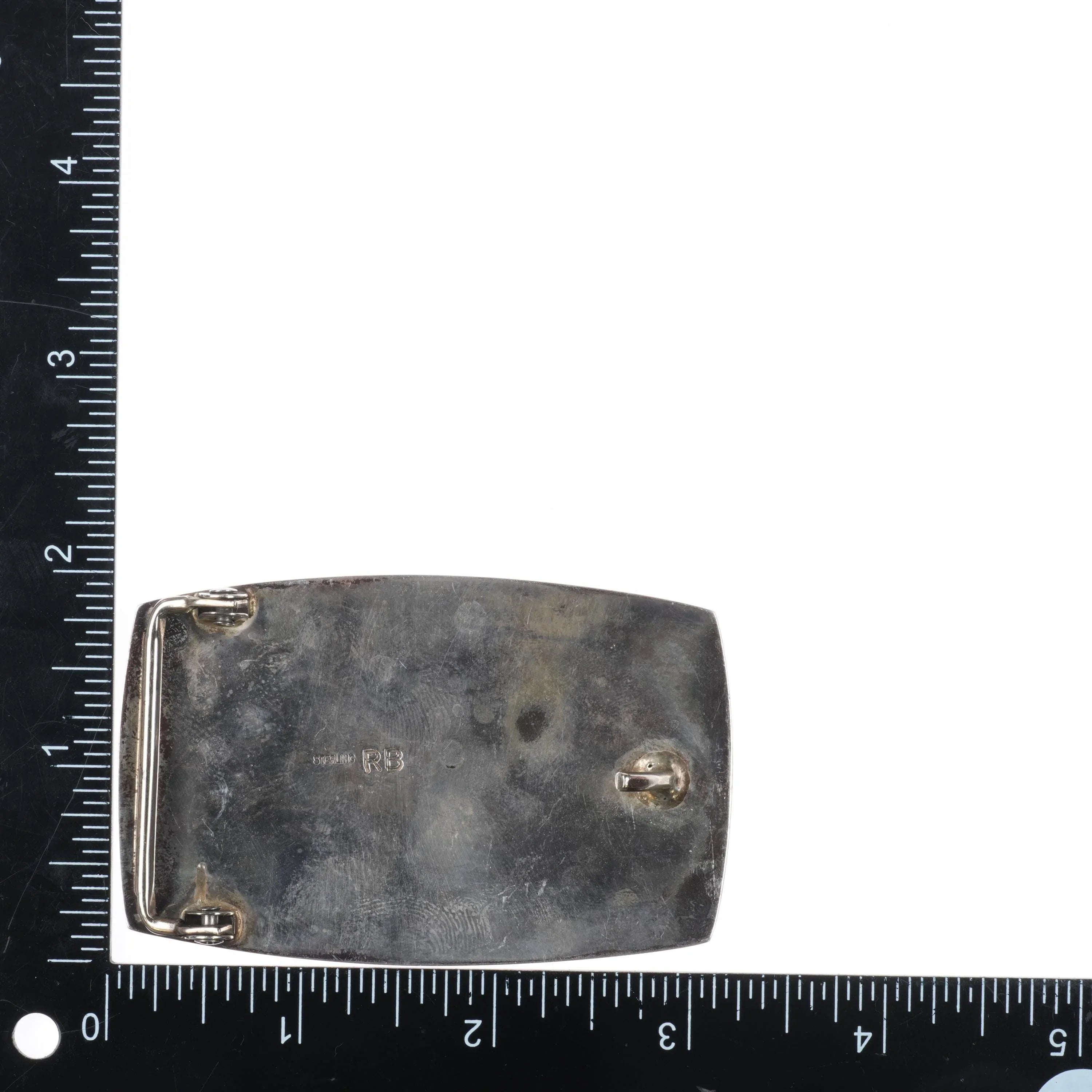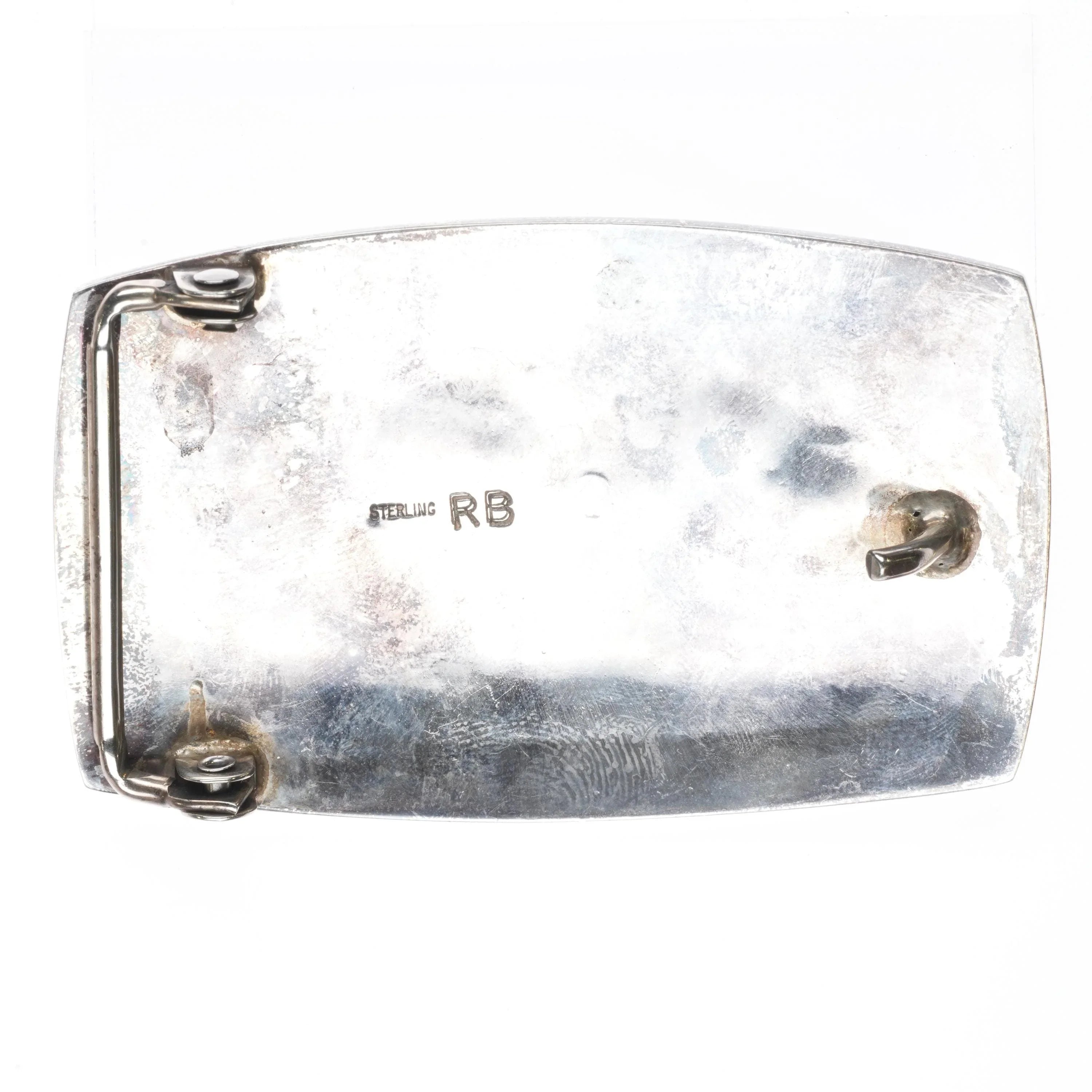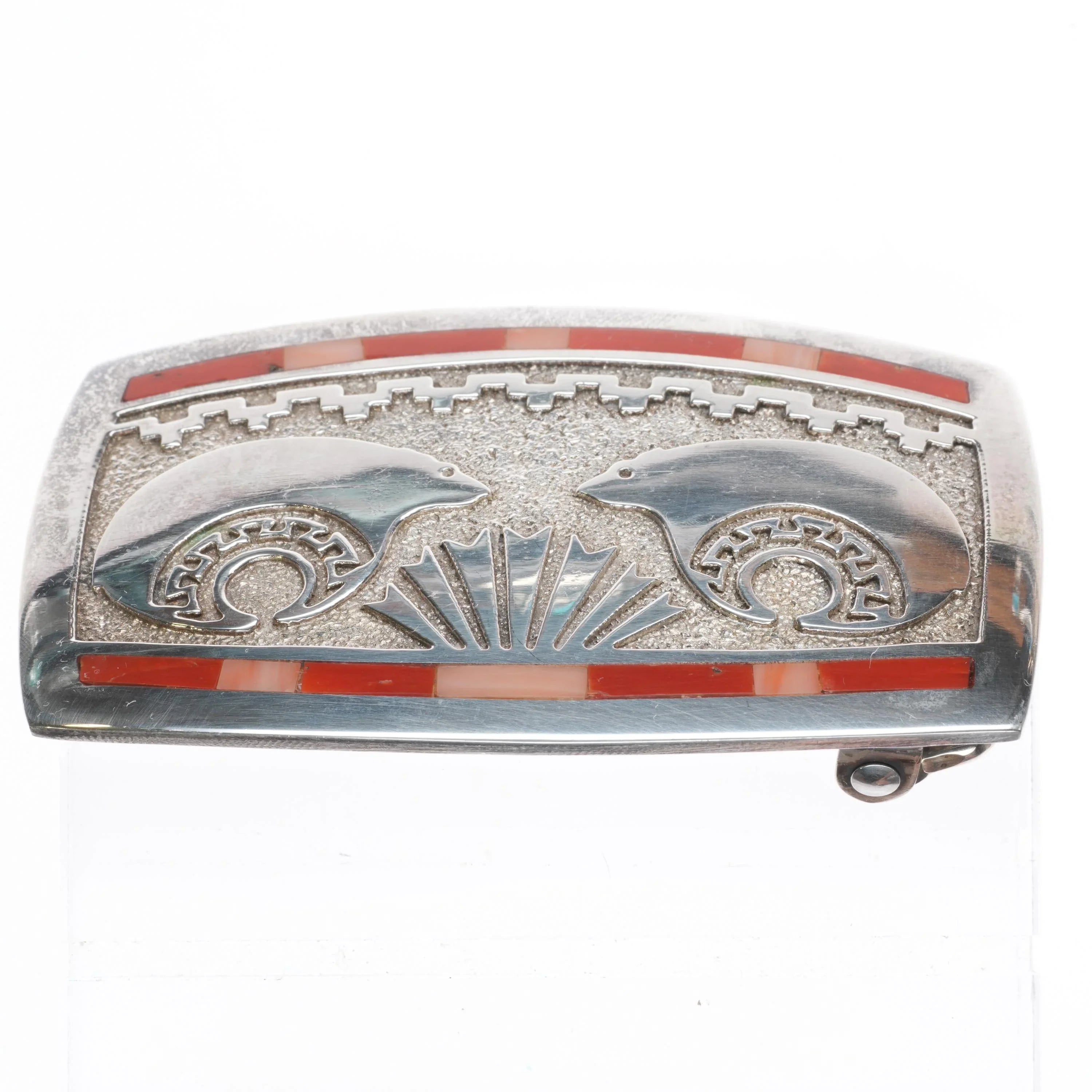 Richard Begay Navajo sterling silver, Mediterranean coral bears belt buckle. Tested and guaranteed solid sterling silver, fits up to a 1.5" wide belt. Some expected wear. Circa last quarter of the 20th century. Weight and measurements in pictures.