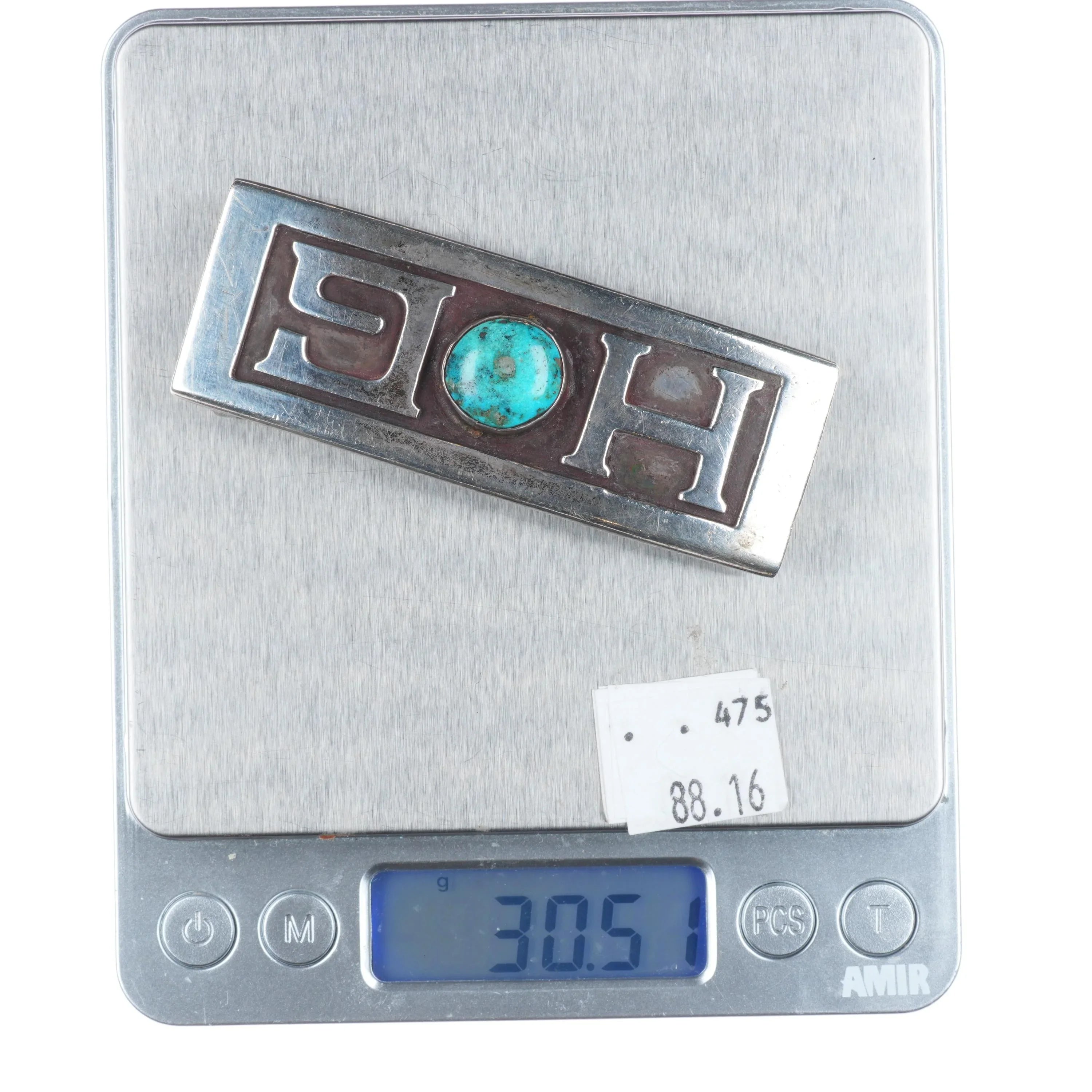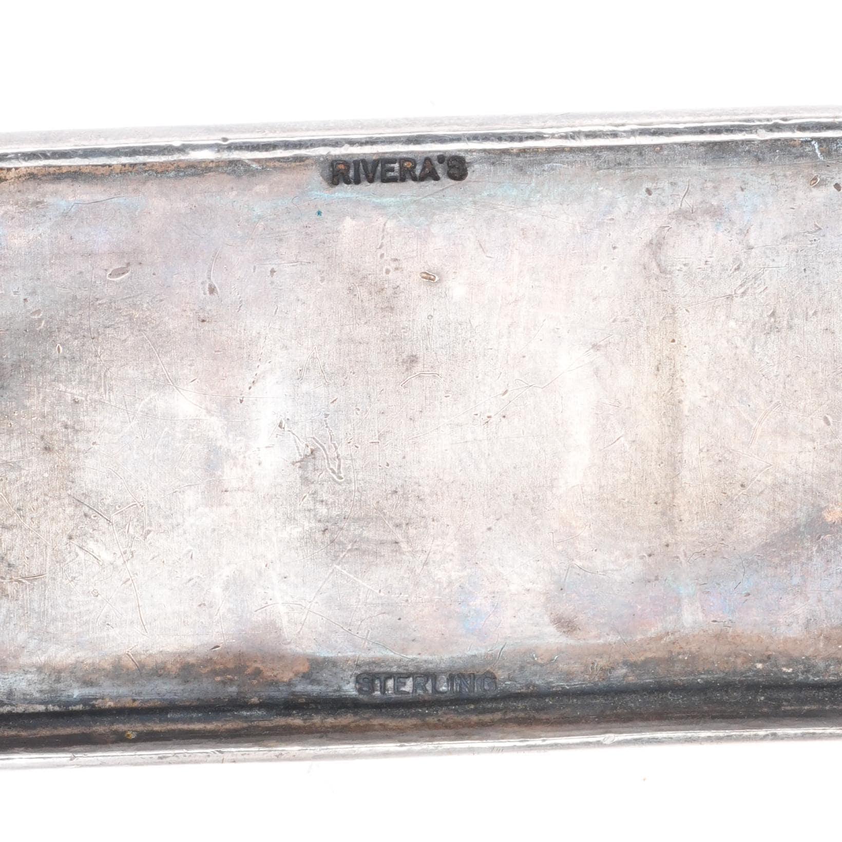 Riveras Southwestern Modernist sterling silver HOG Harley turquoise belt buckle