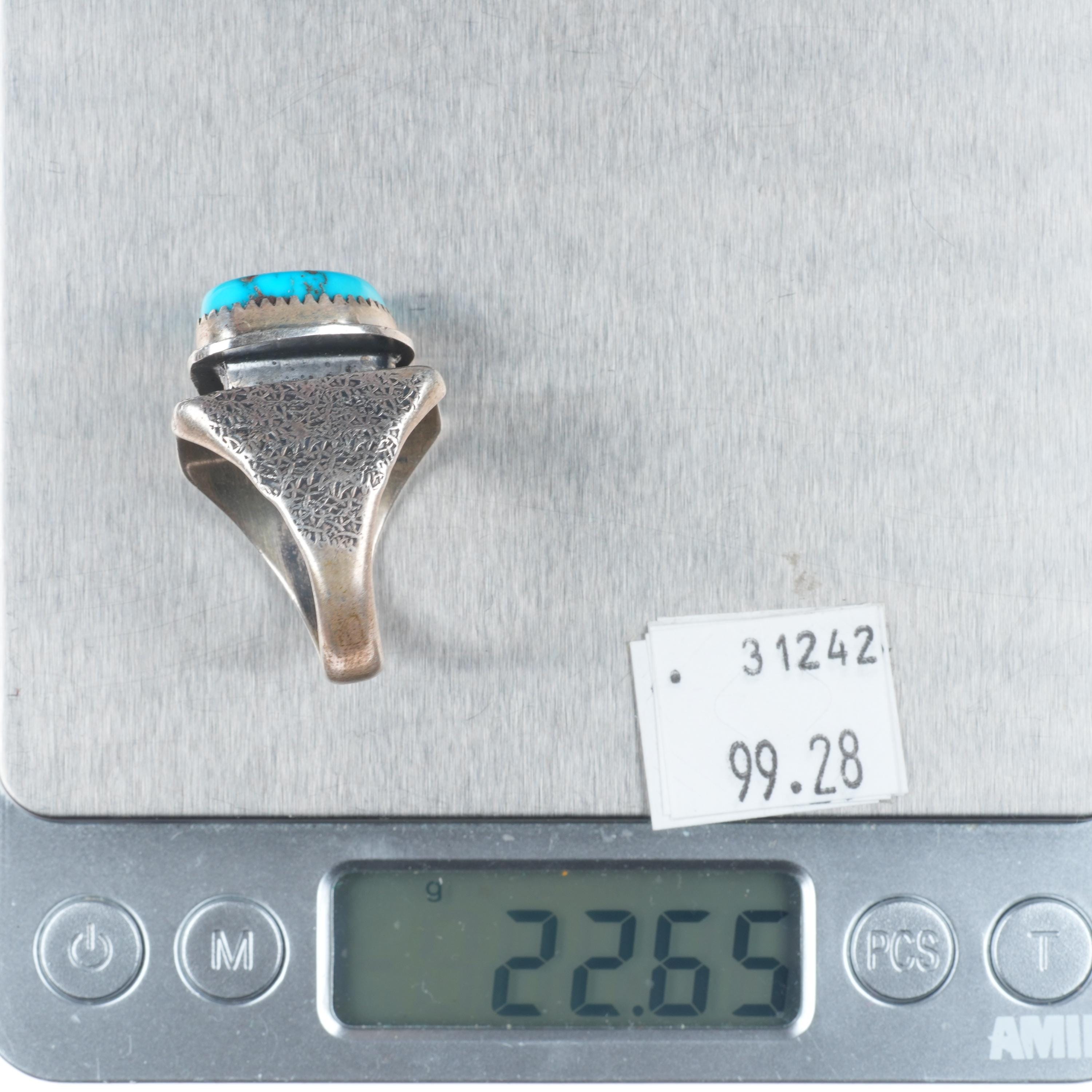 sz11.5 Vintage Native American sterling silver turquoise southwestern men‘s ring. Tested and guaranteed solid sterling silver. Nice ring from the fourth quarter of the 20th century. Some expected wear, weight and measurements in pictures. Unmarked.