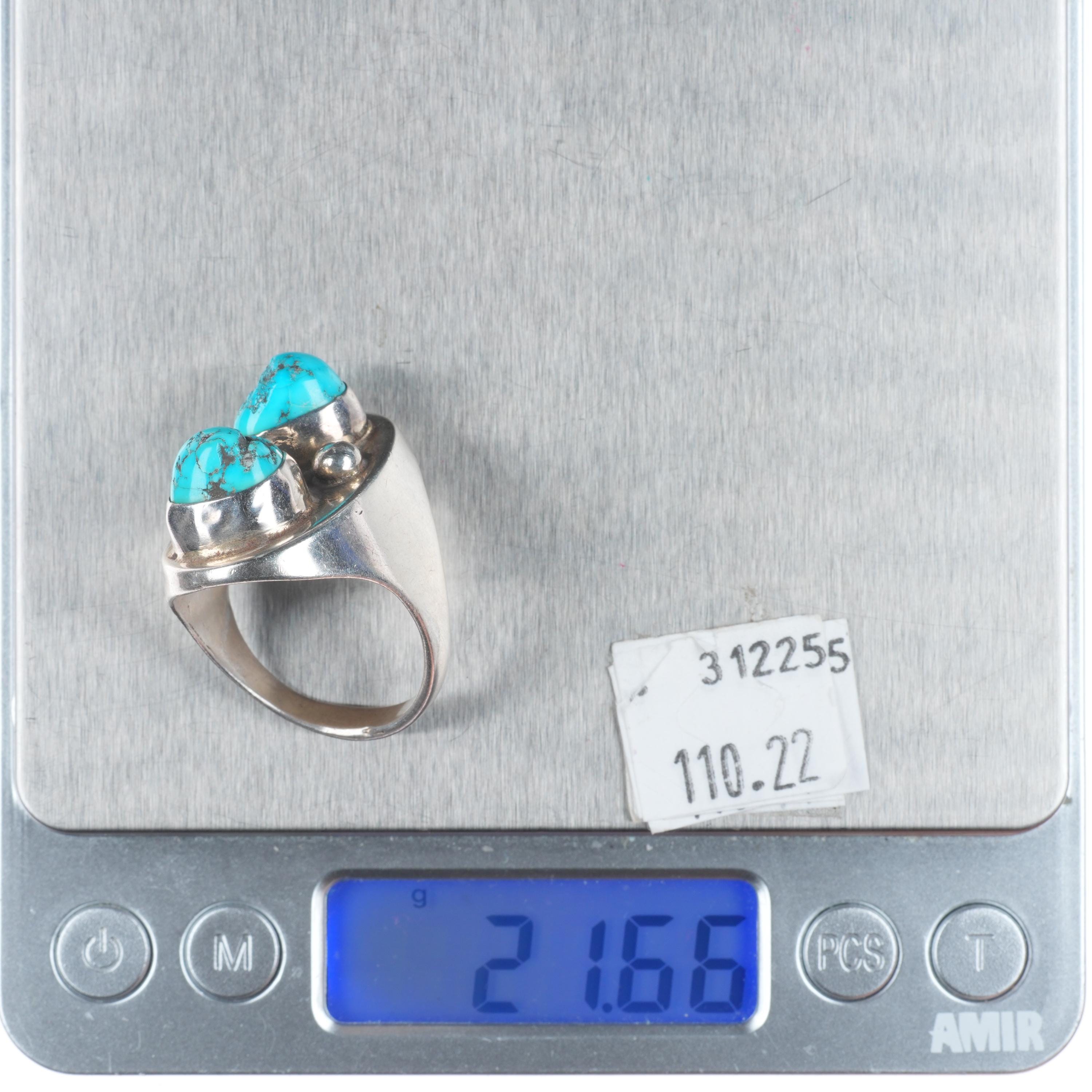 sz12 Vintage Navajo sterling silver 2 stone turquoise Men's ring