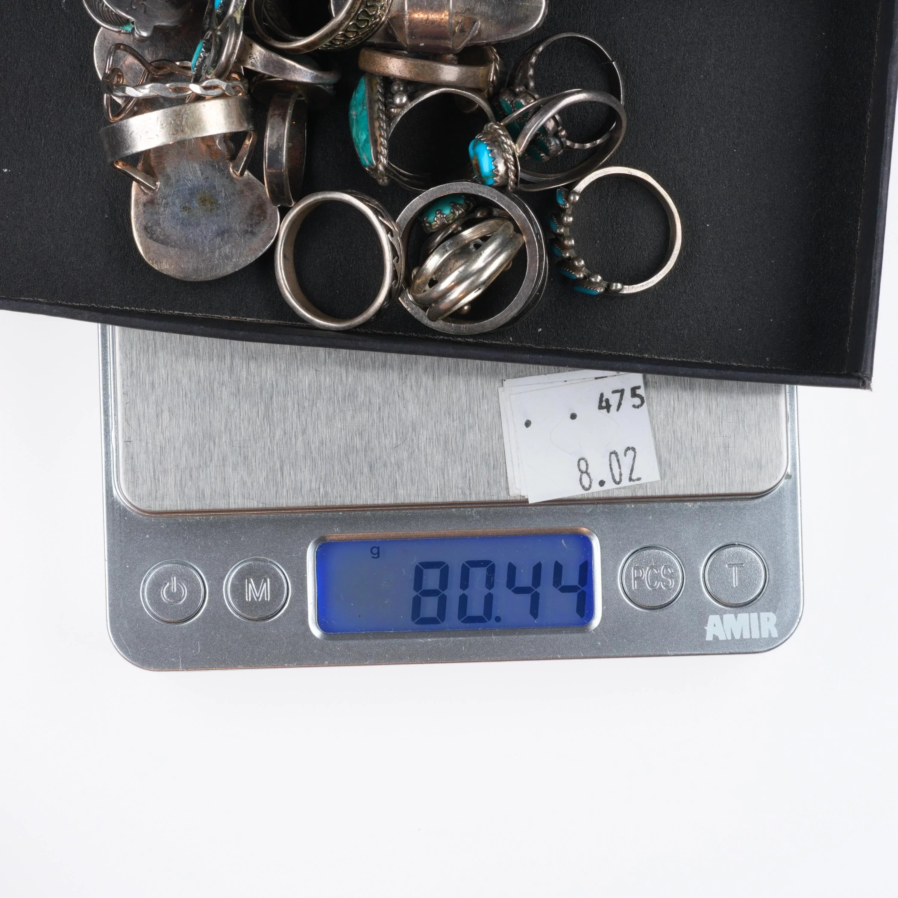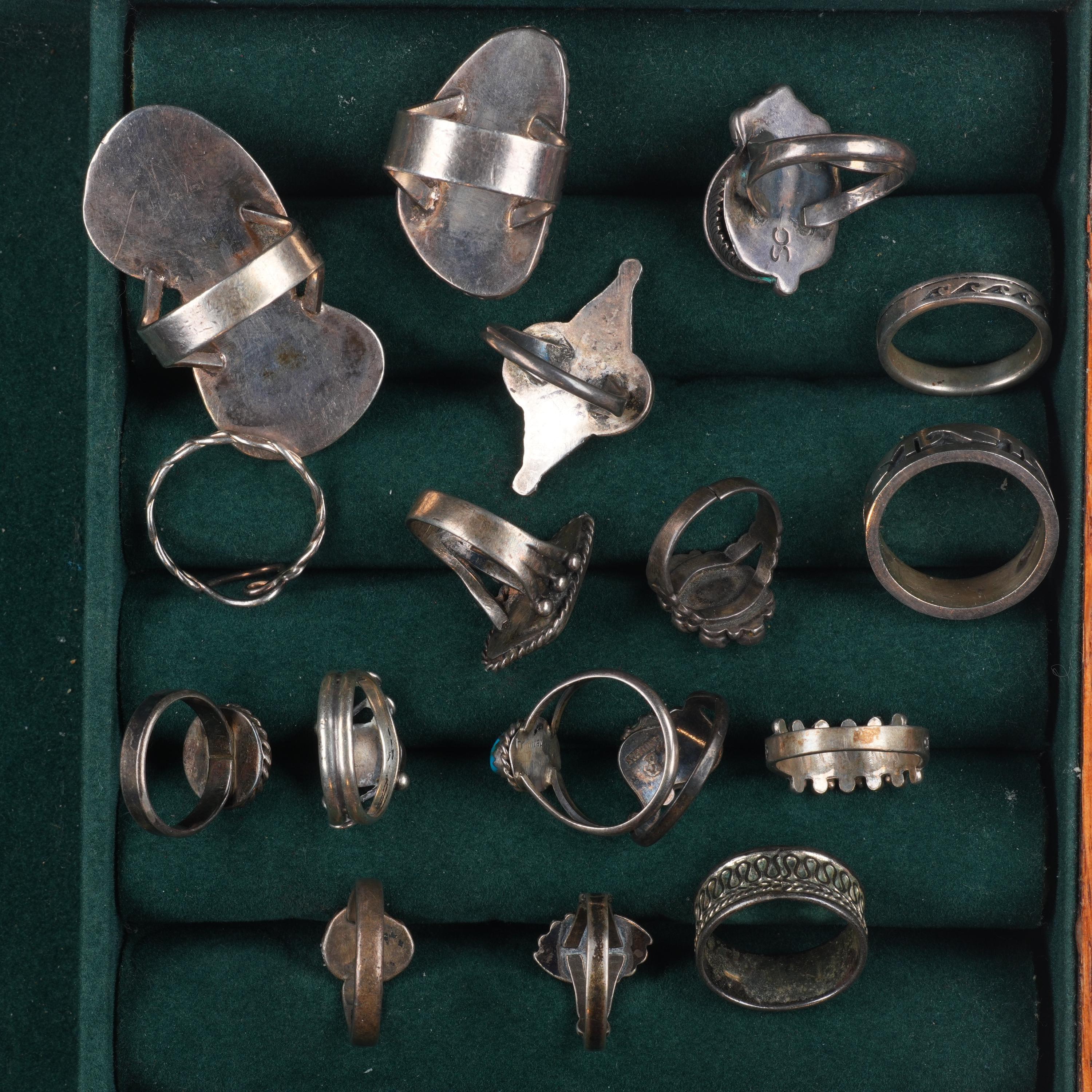 sz4-sz9 Vintage lot 17 Navajo/Zuni/Southwestern sterling silver turquoise rings