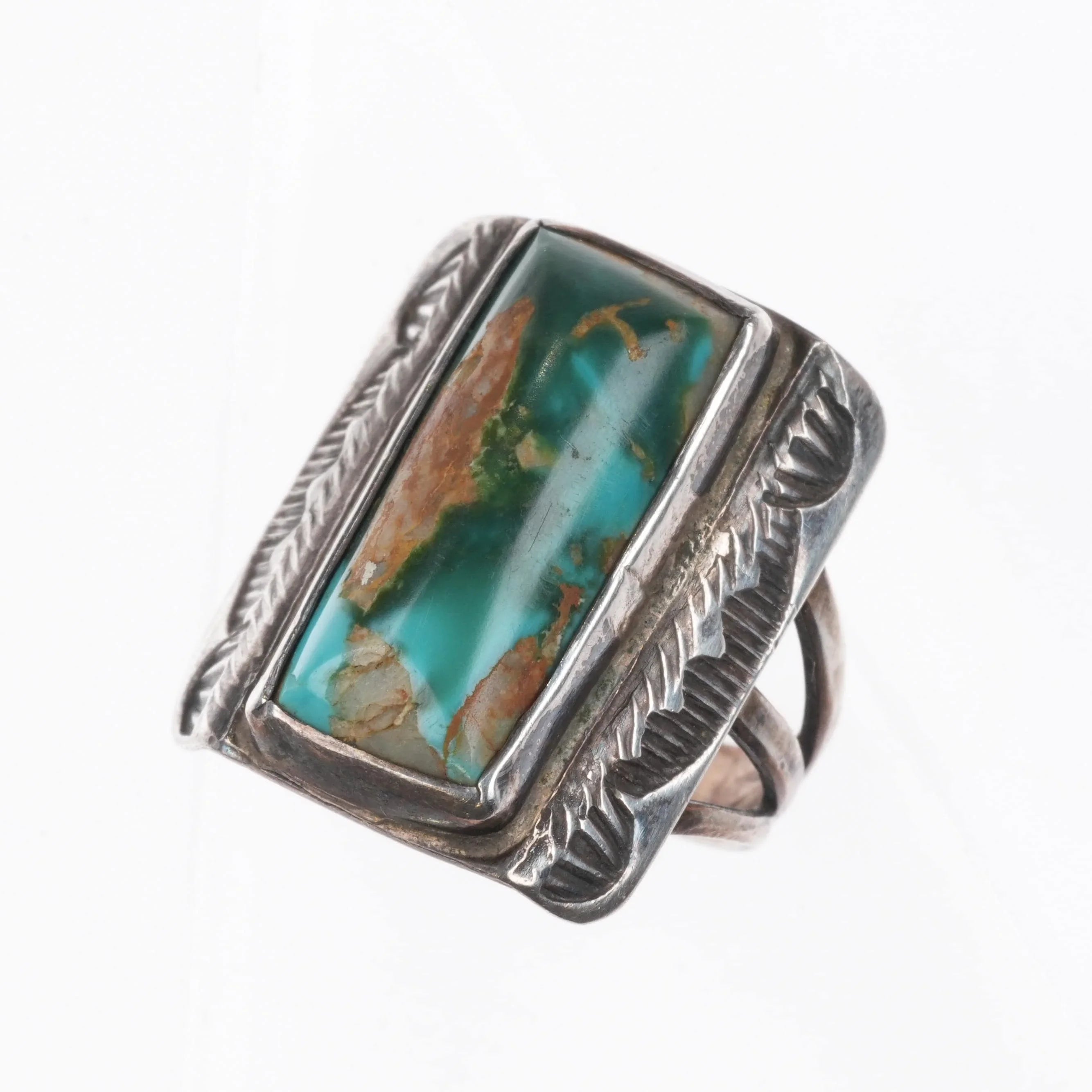 sz5 1940's Navajo Royston turquoise hand stamped sterling silver ring