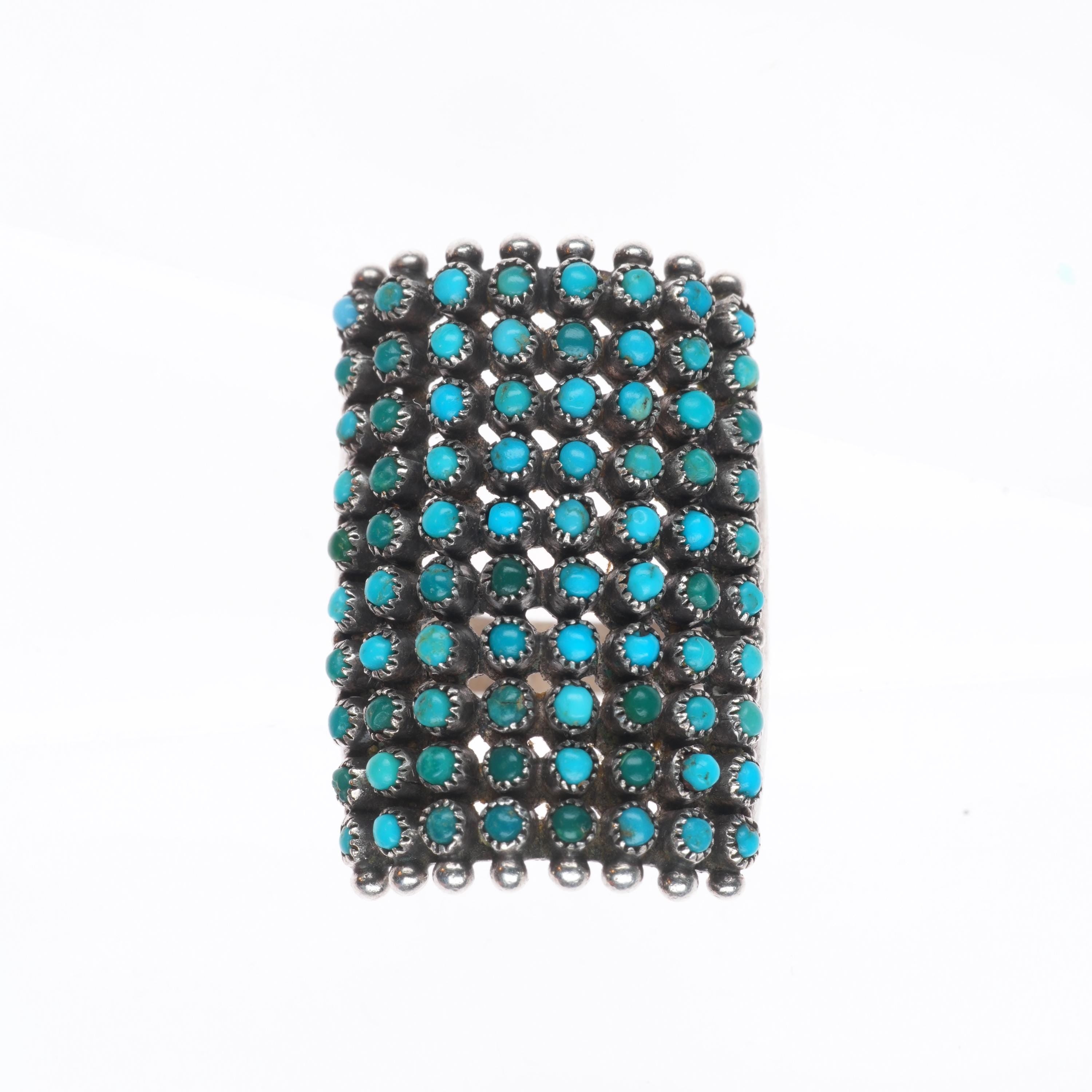 sz6 80 stone turquoise 1940's Vintage Zuni sterling silver snake eye ring