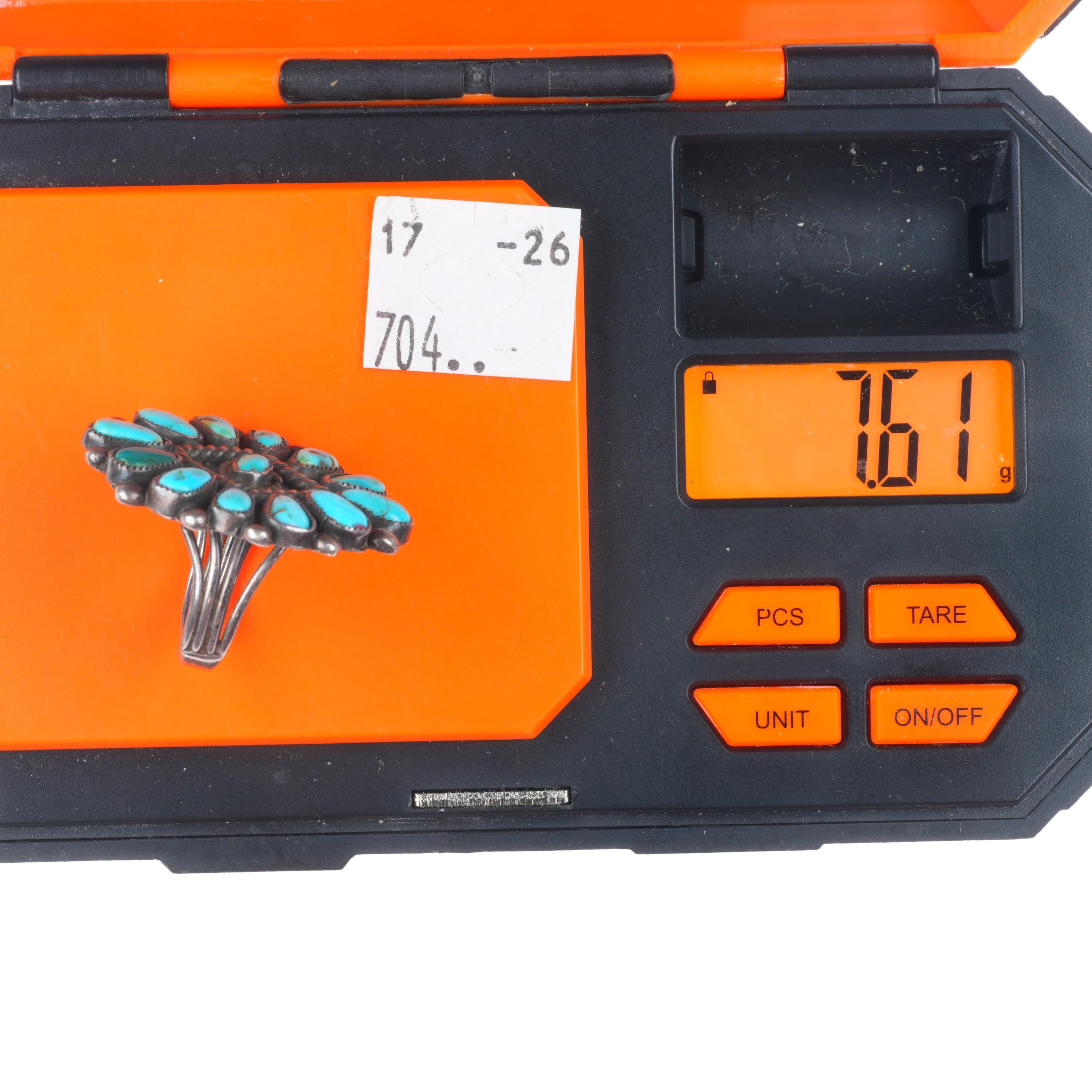 sz7 30's-40's Vintage zuni sterling silver turquoise cluster ring