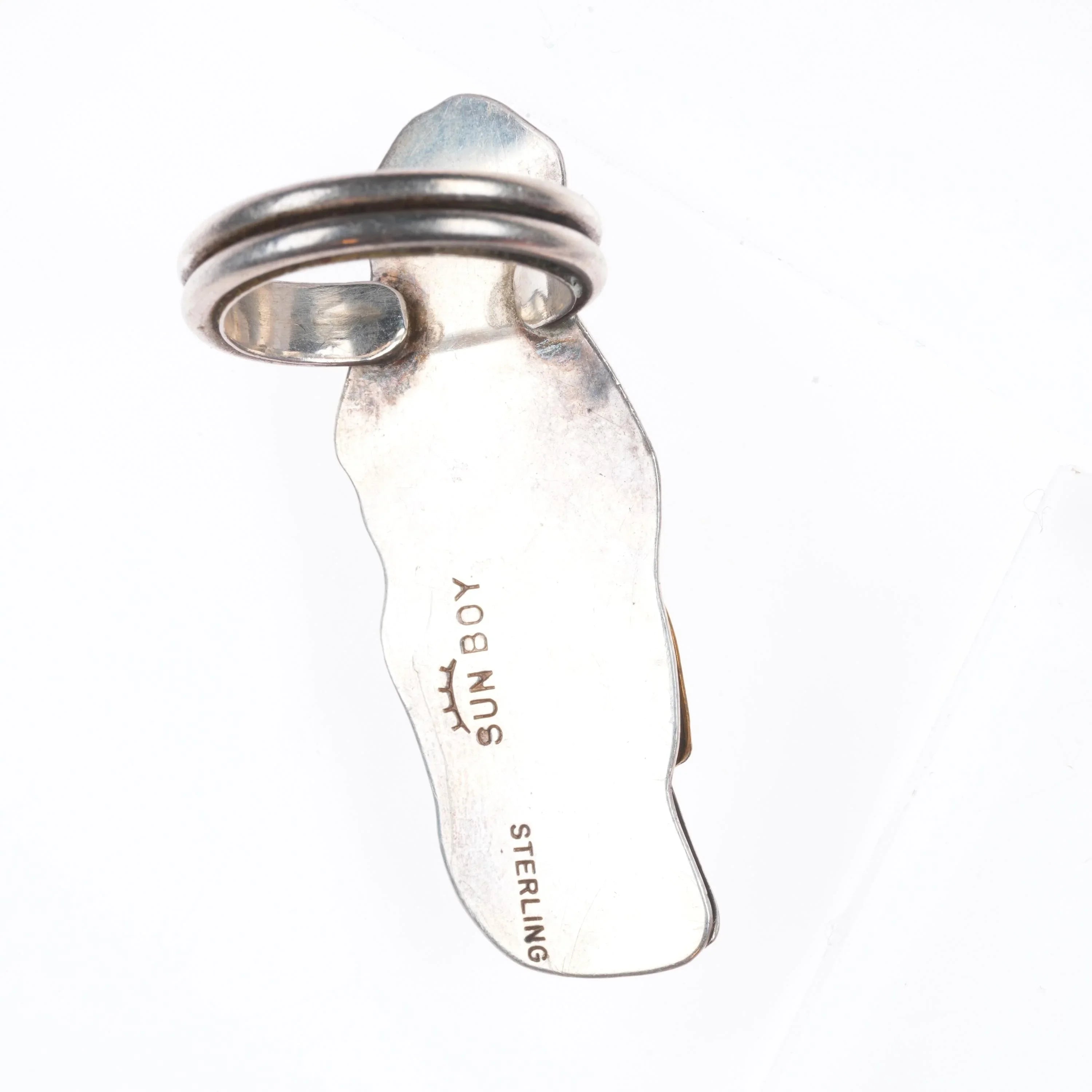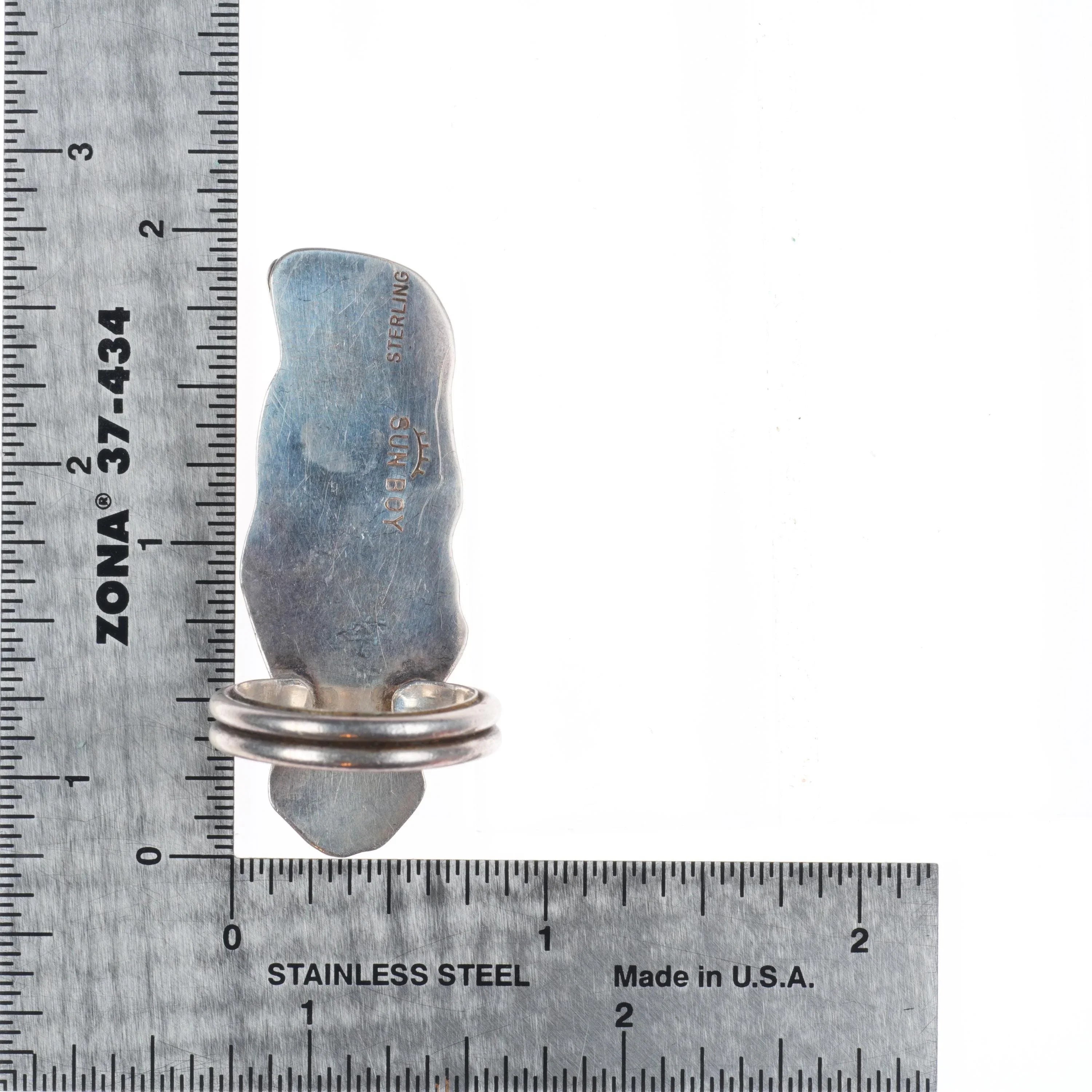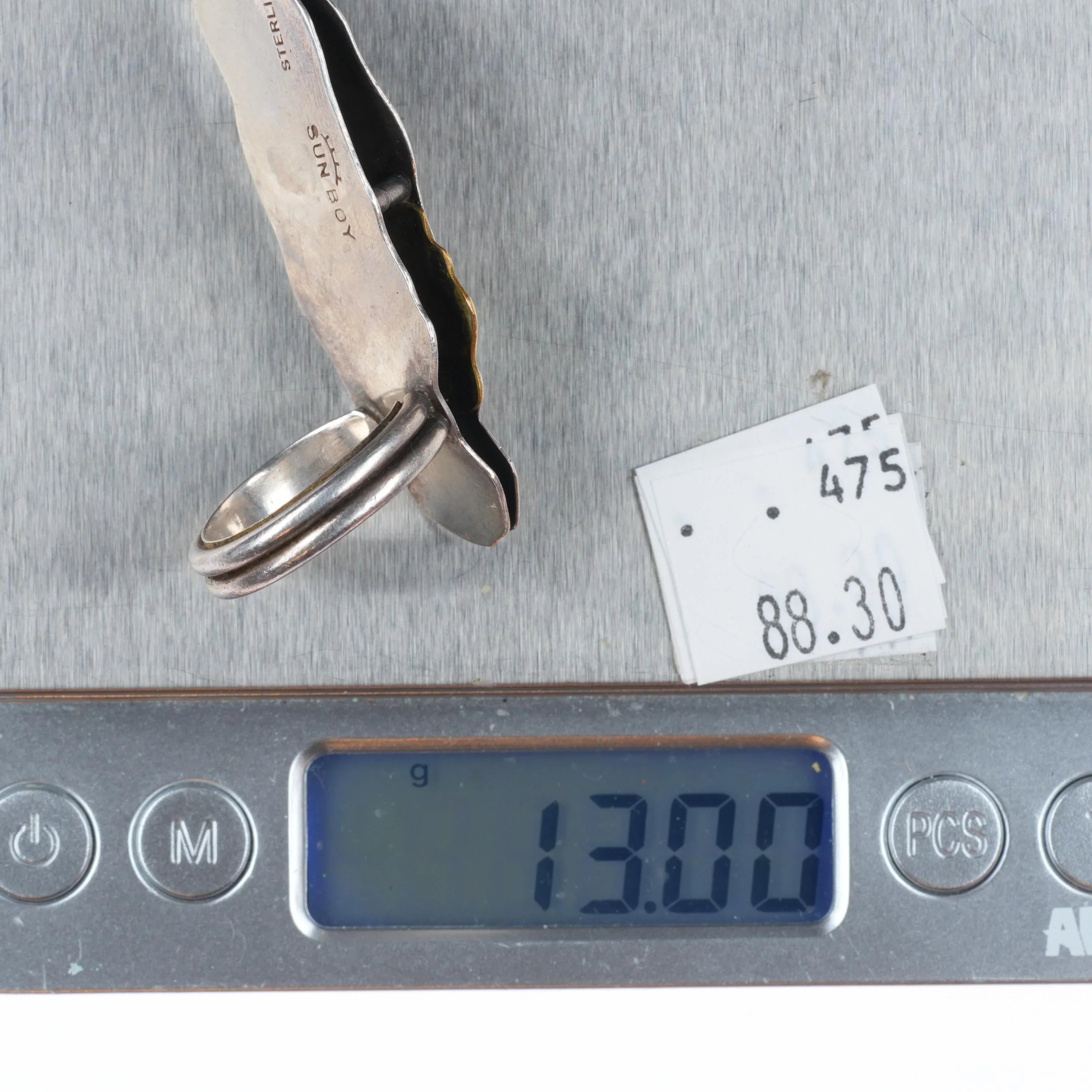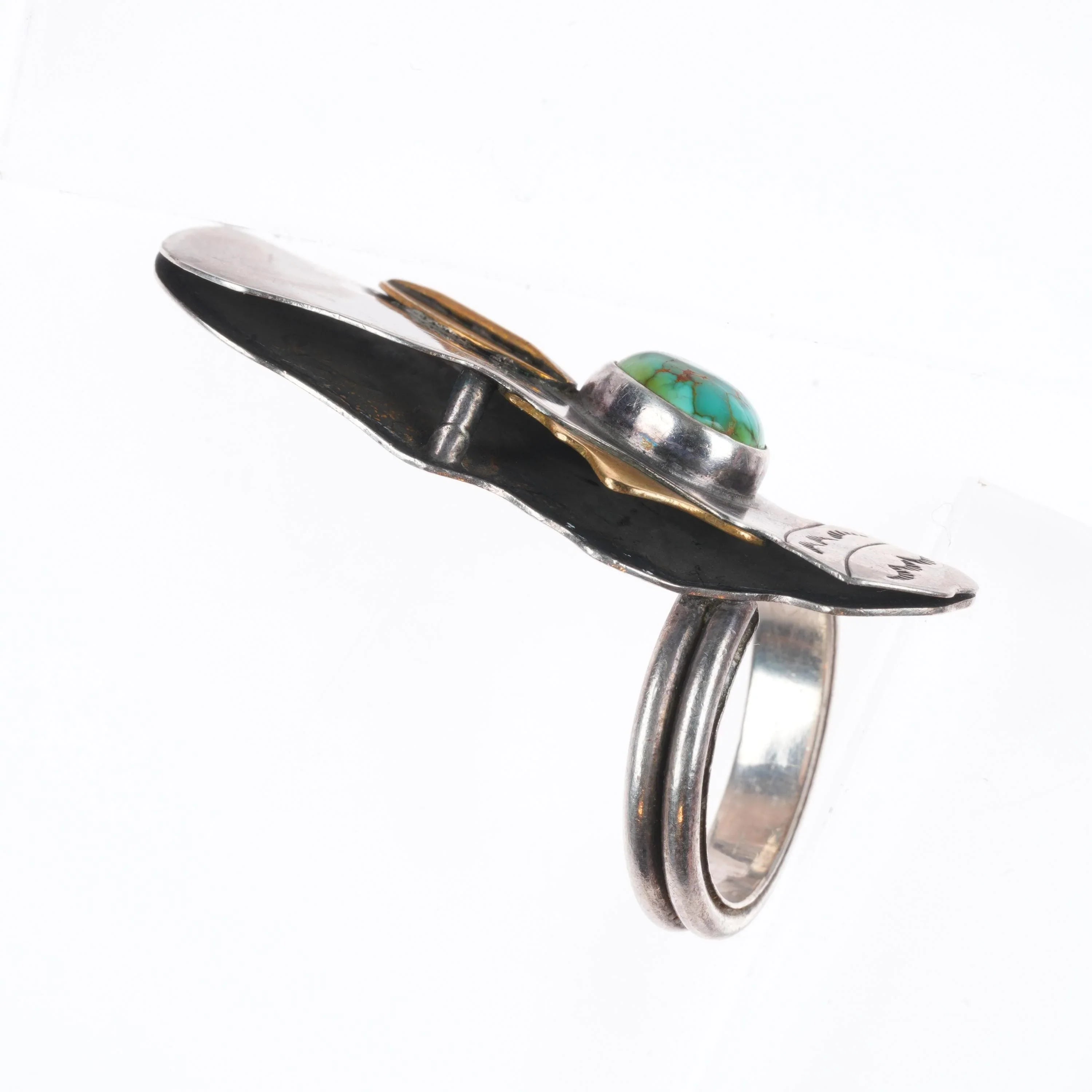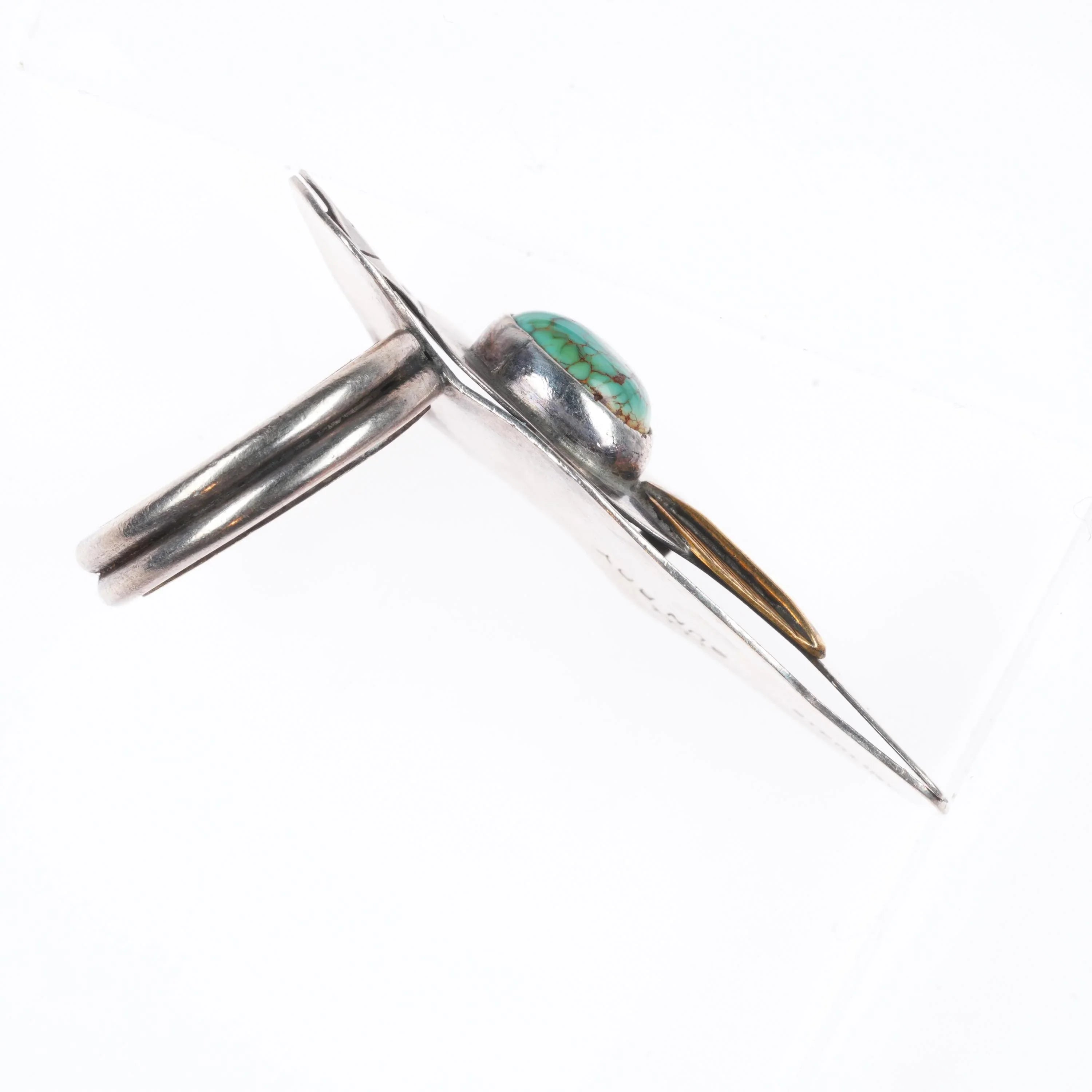 sz8 Terrence Hunt Navajo "Sun Boy" sterling silver feather ring w/turquoise