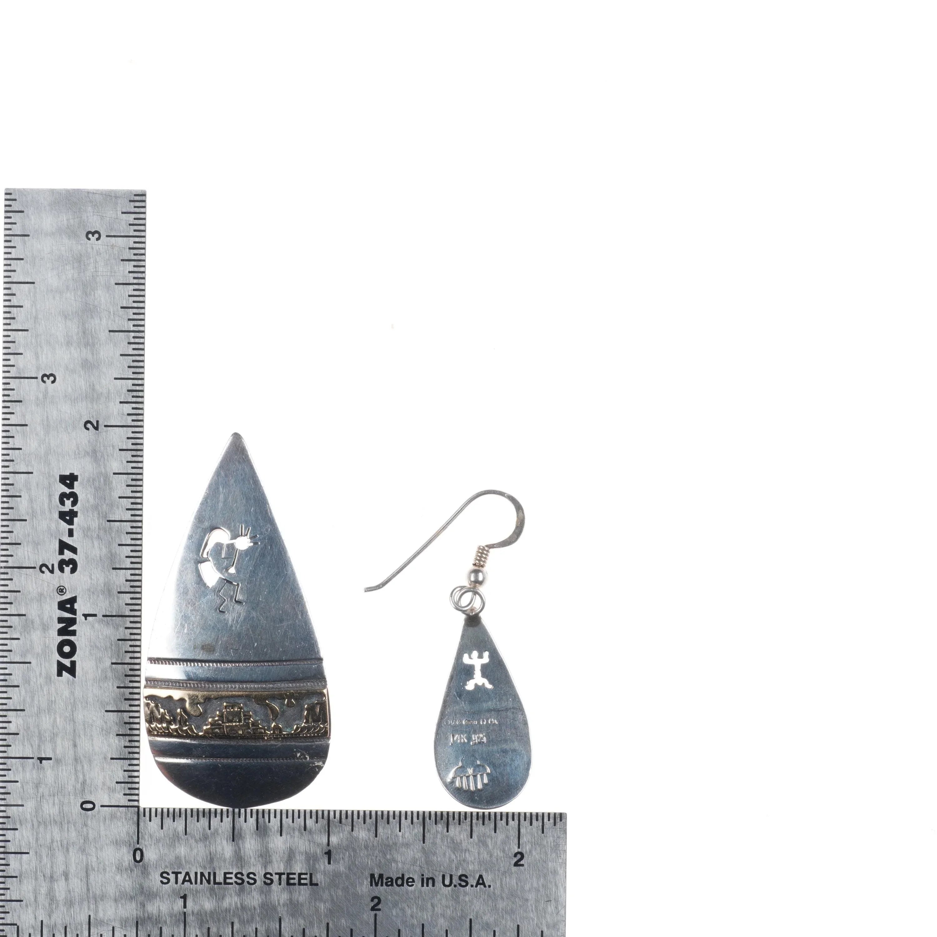 TC Cast Southwestern sterling silver 14k gold pendant/earrings set rug/caves. Great earrings and pendant with no issues, tested and guaranteed solid sterling silver with solid 14k gold overlay designs, any marks detected, weight, and measurements will be shown in the pictures.