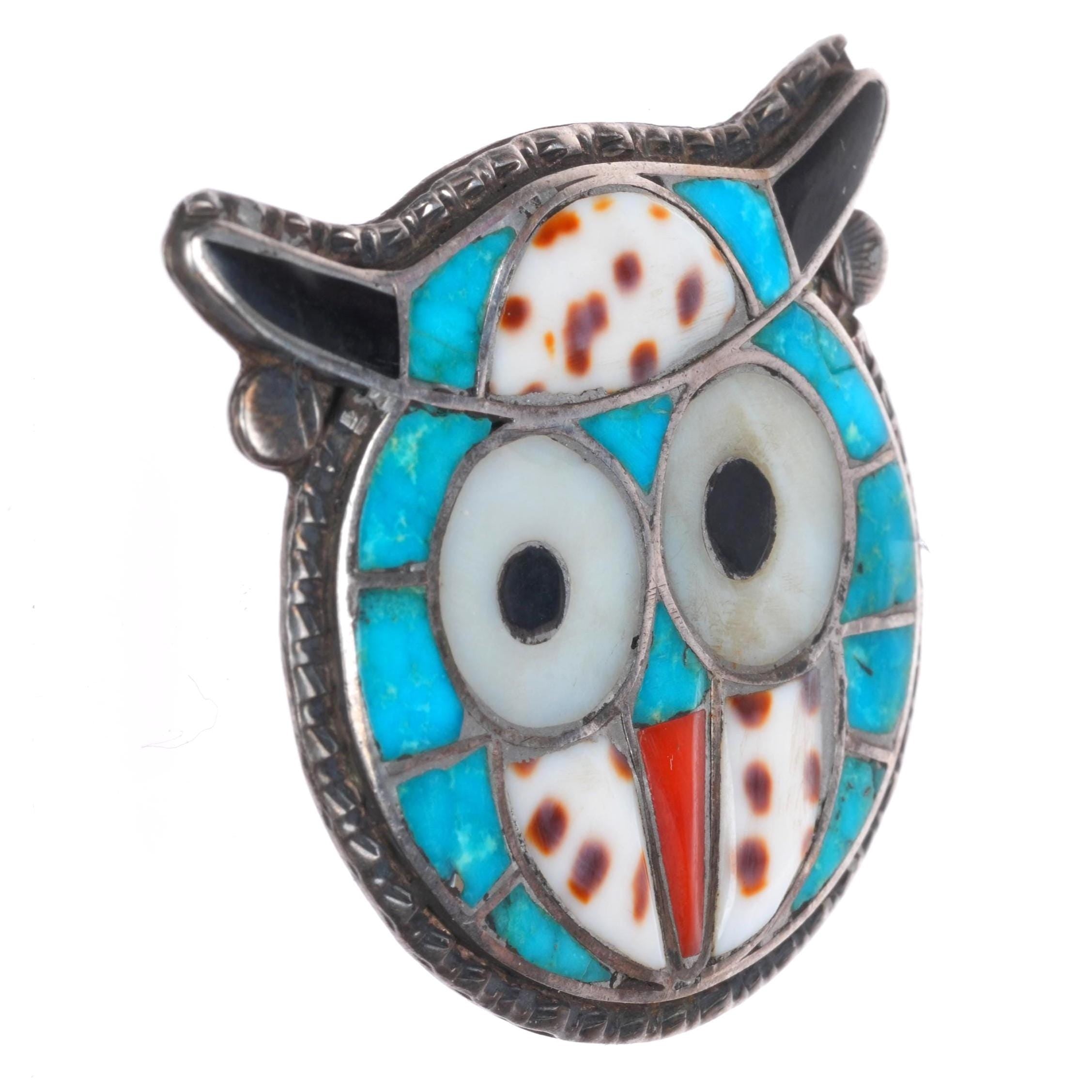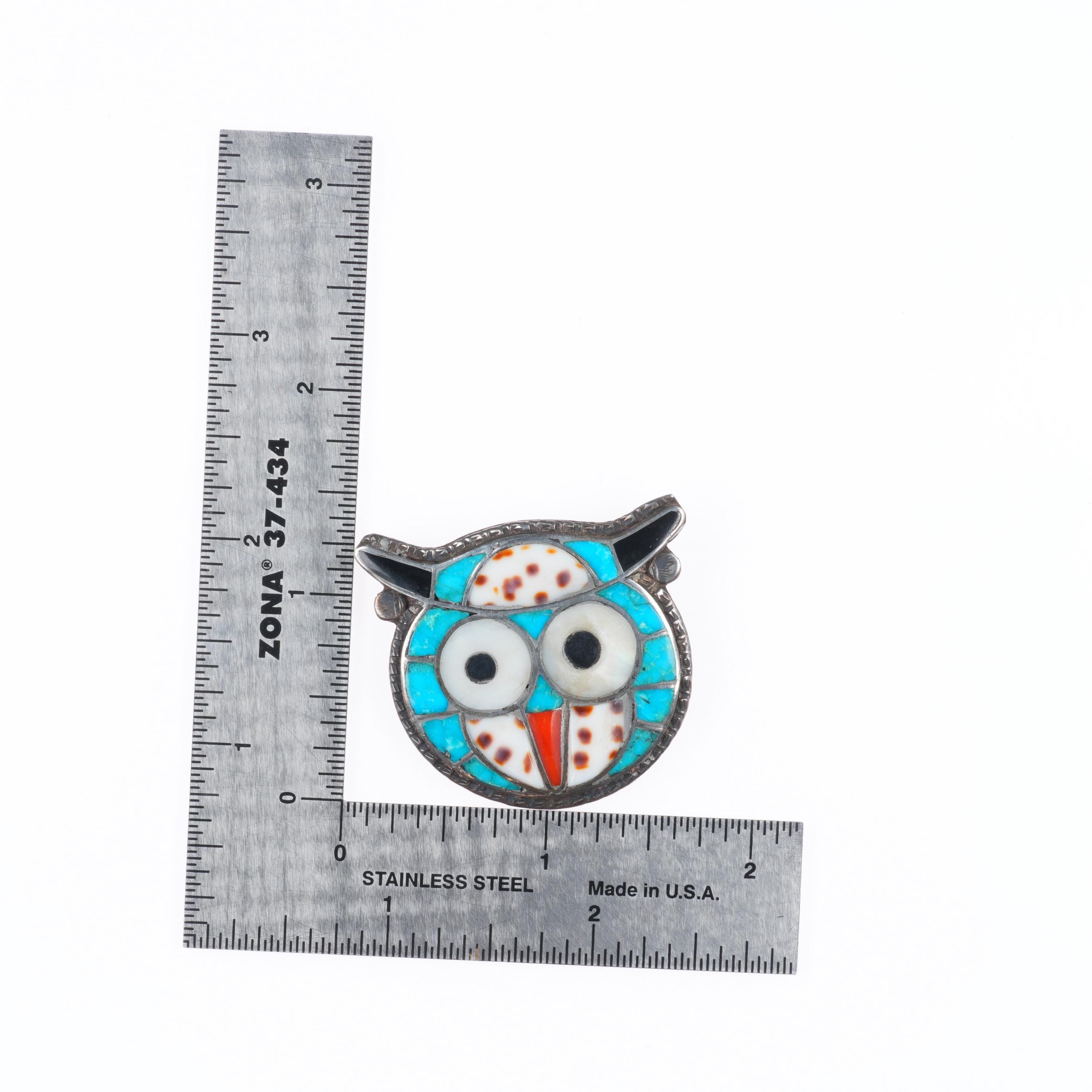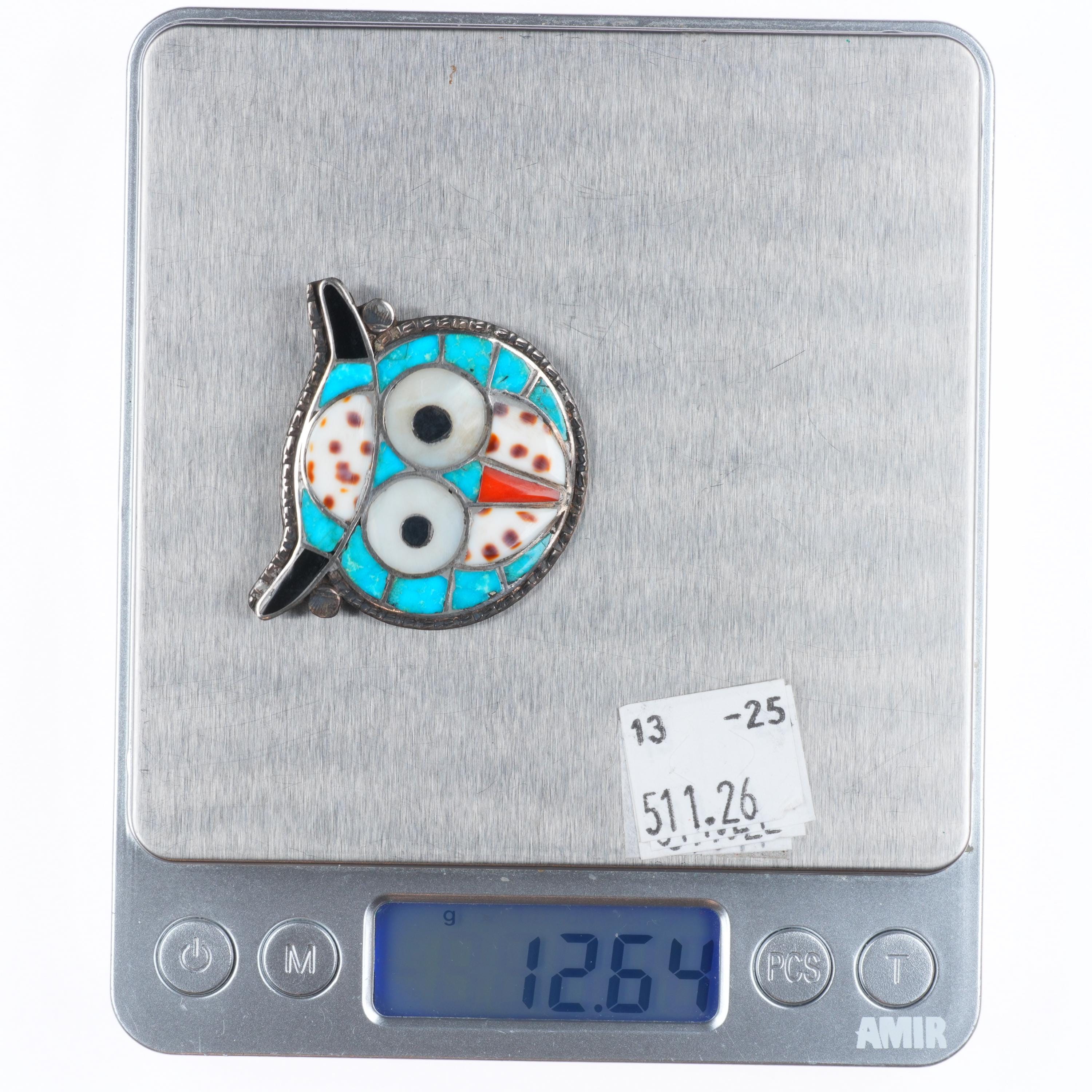 Ted Edaakie Zuni sterling silver turquoise/coral/shell inlay own pin/pendant. Solid sterling silver tested and guaranteed with weight and measurements in the pictures. No issues, Circa third quarter of the 20th century.