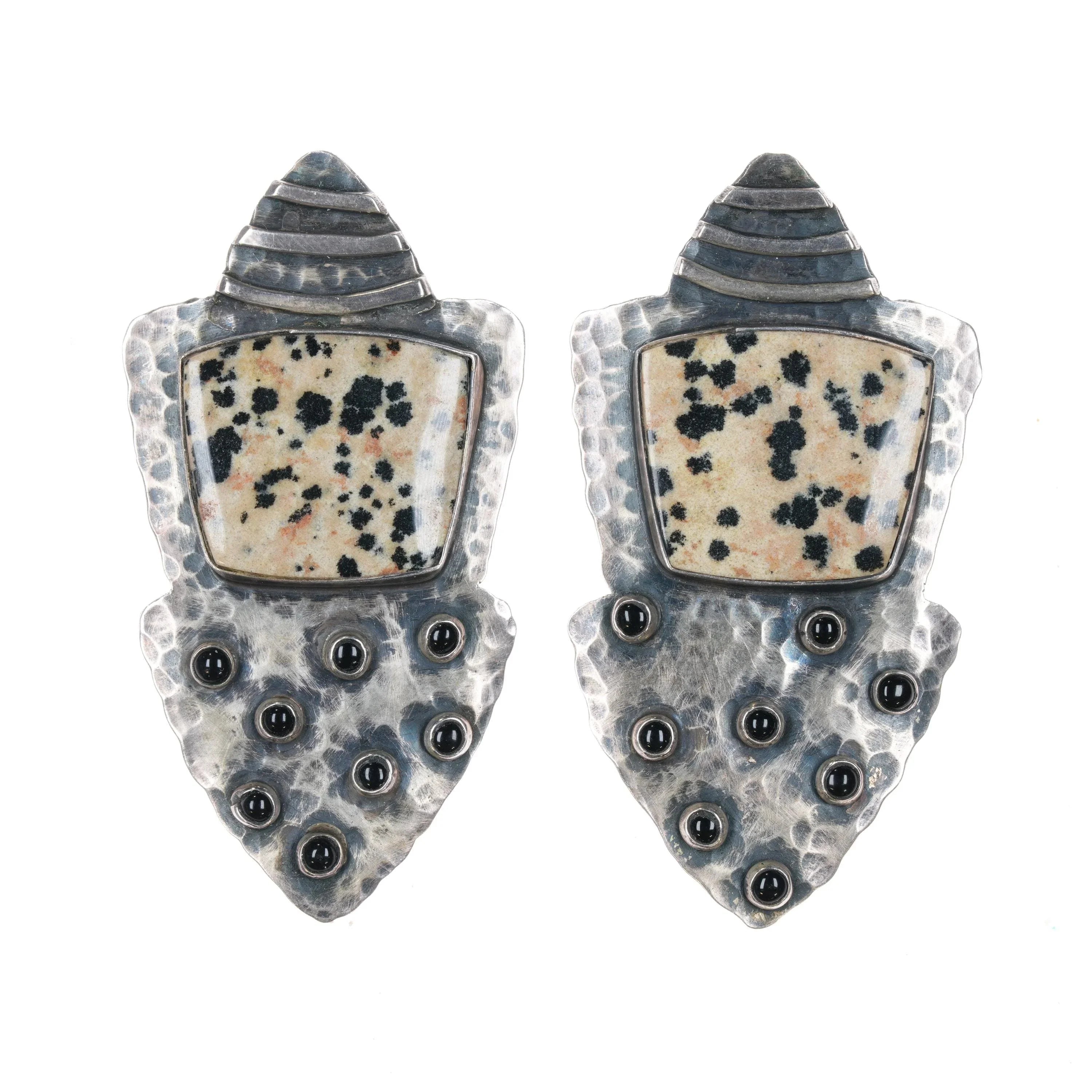 Victoria Maase Stoll Large Sterling Jasper onyx snake eye earrings.