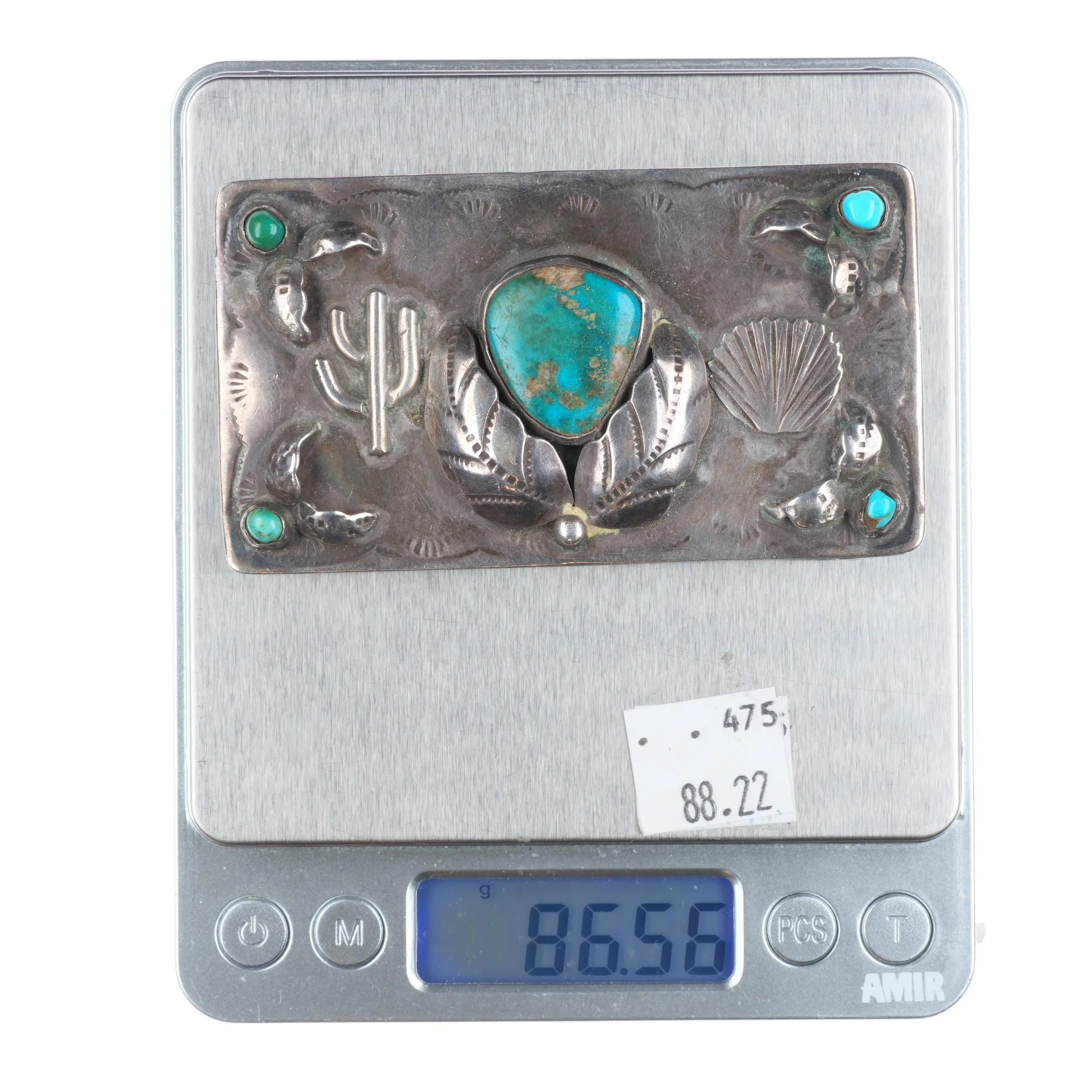 Vintage 50's-60's southwestern sterling silver turquoise cactus belt buckle