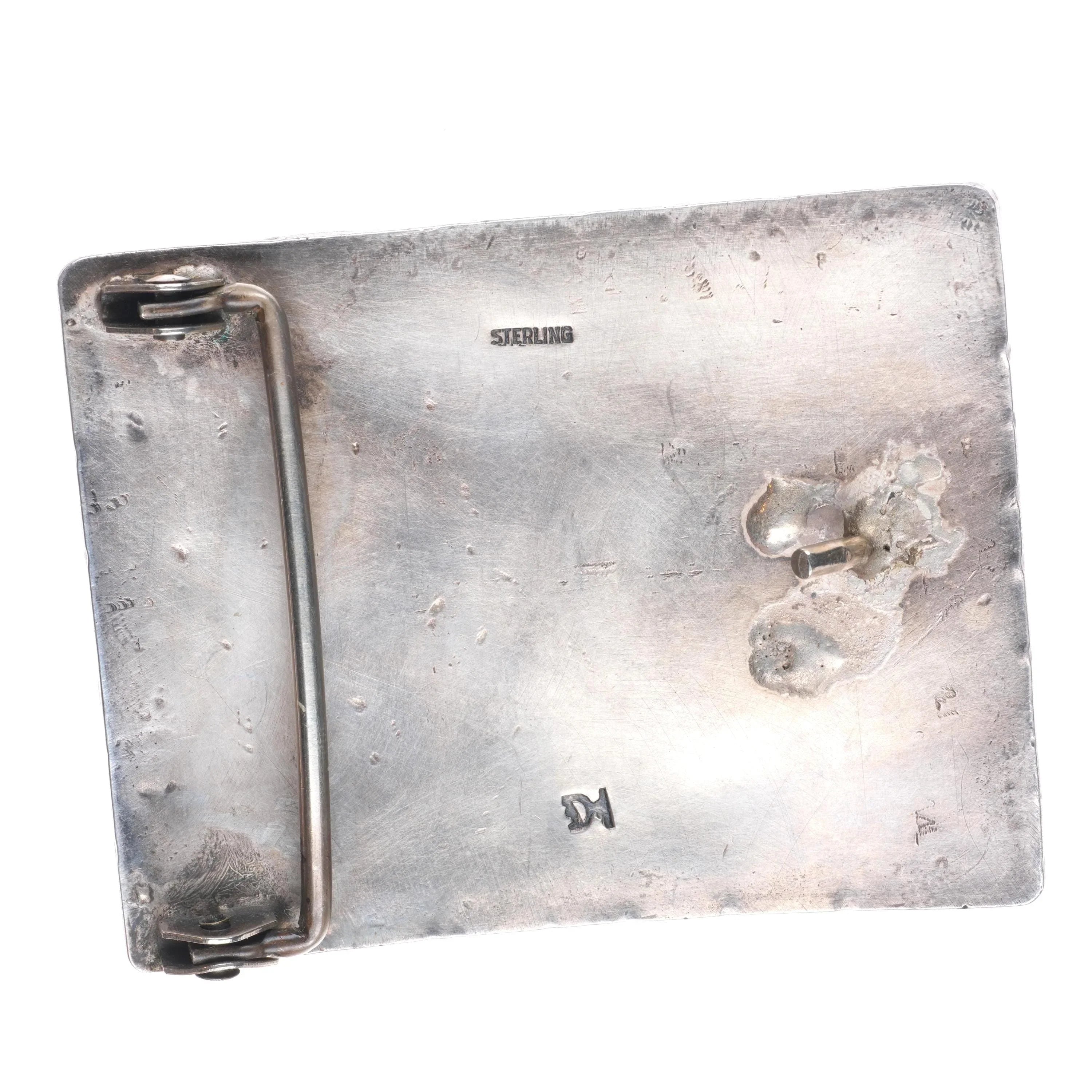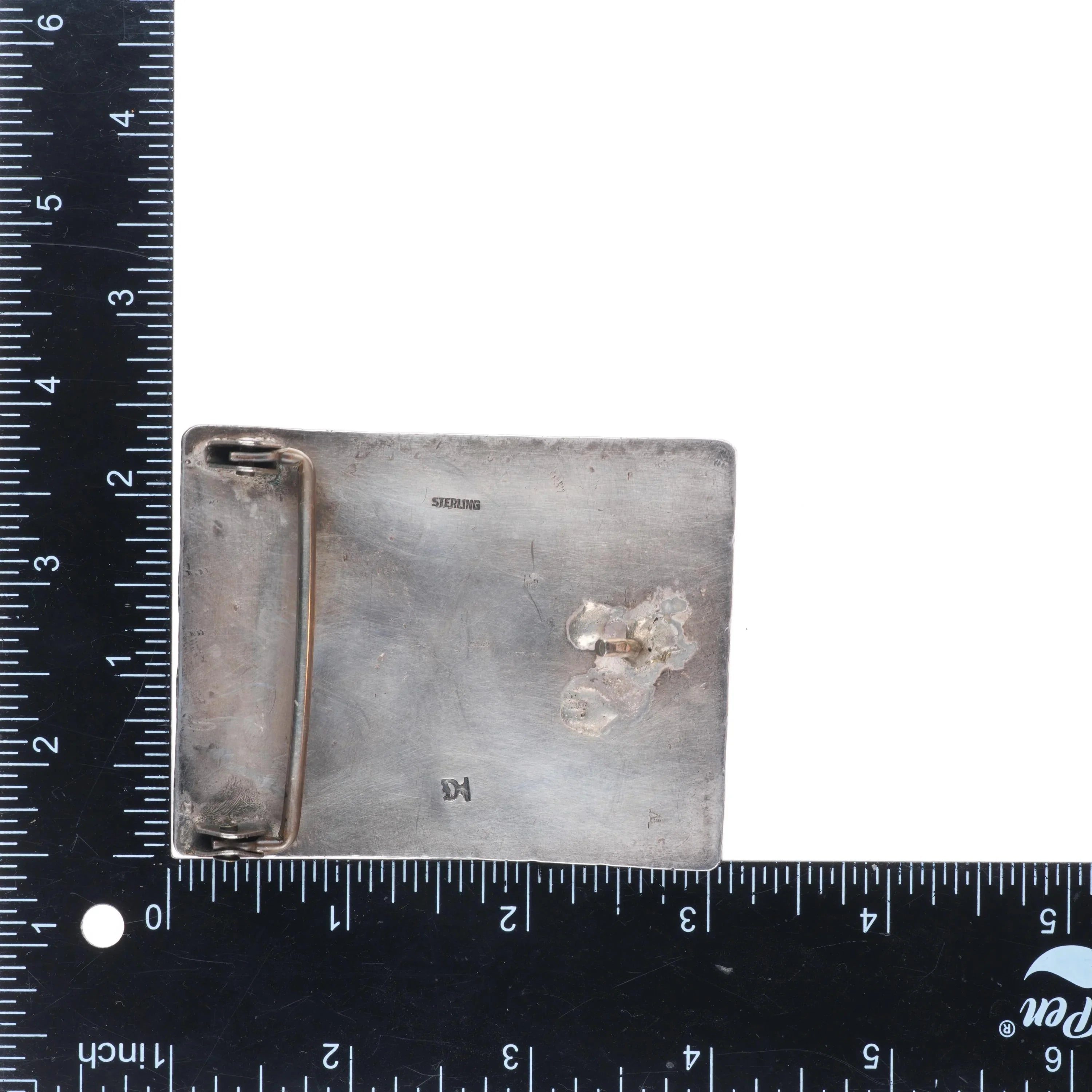 Vintage 60's-70's Navajo sterling silver red web turquoise belt buckle feathers