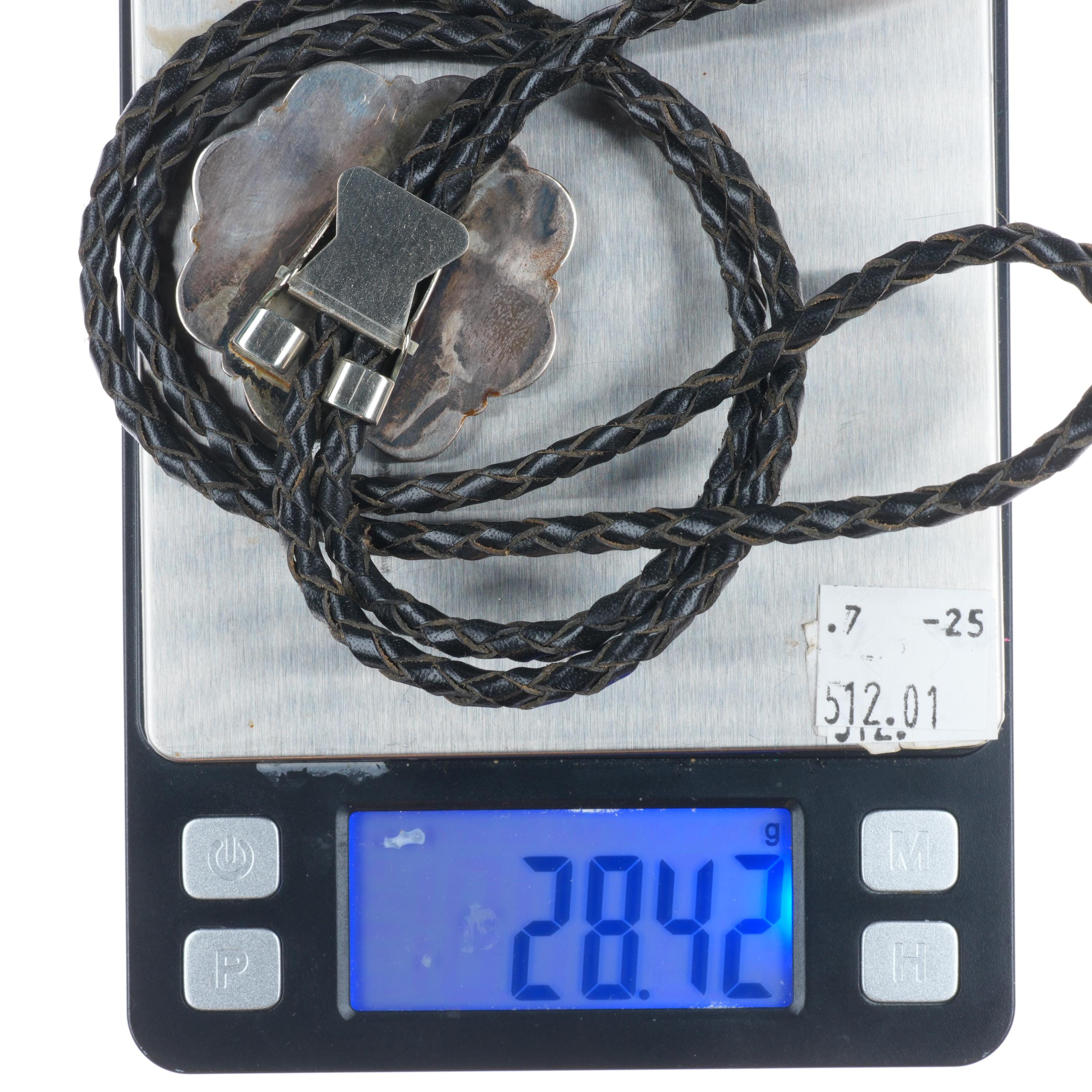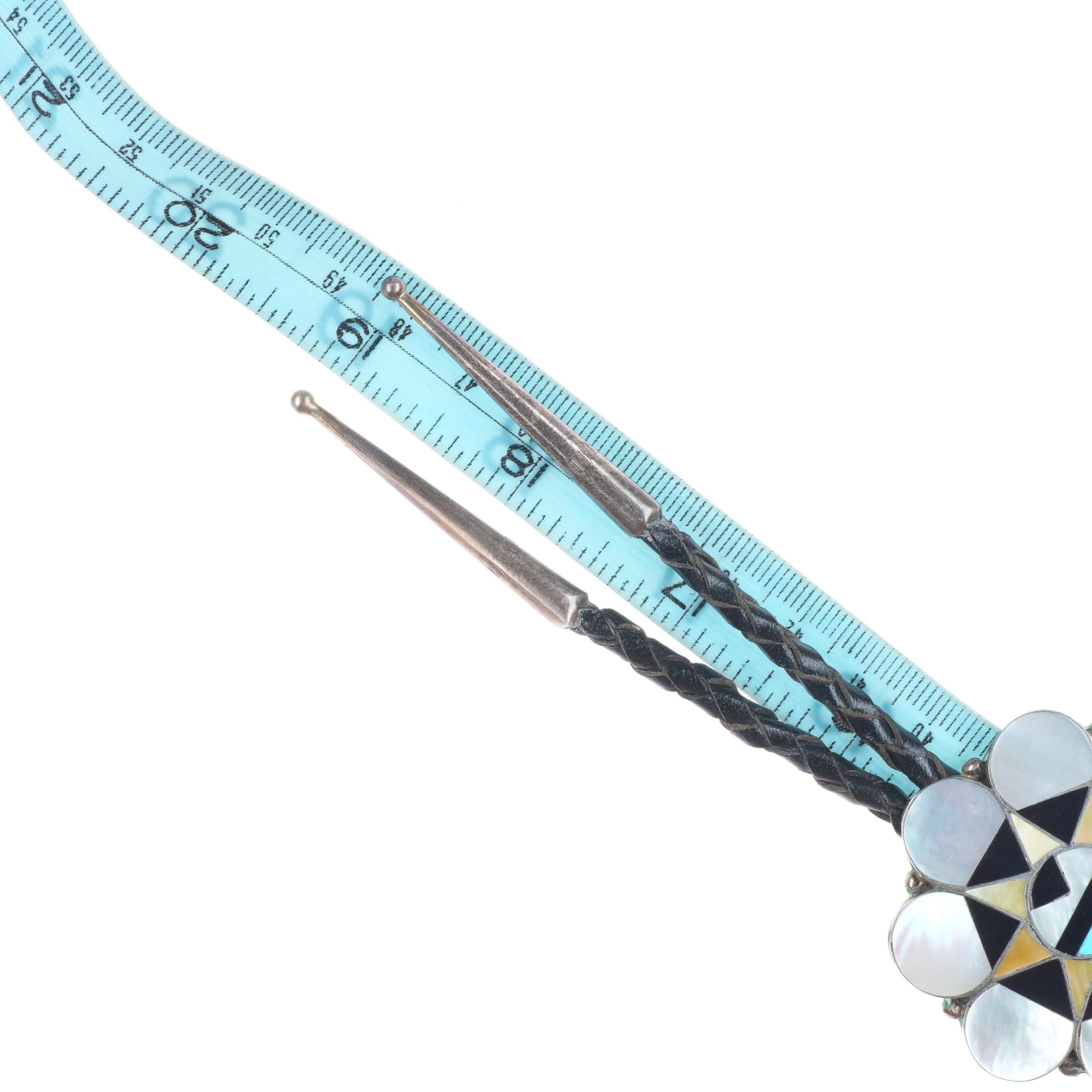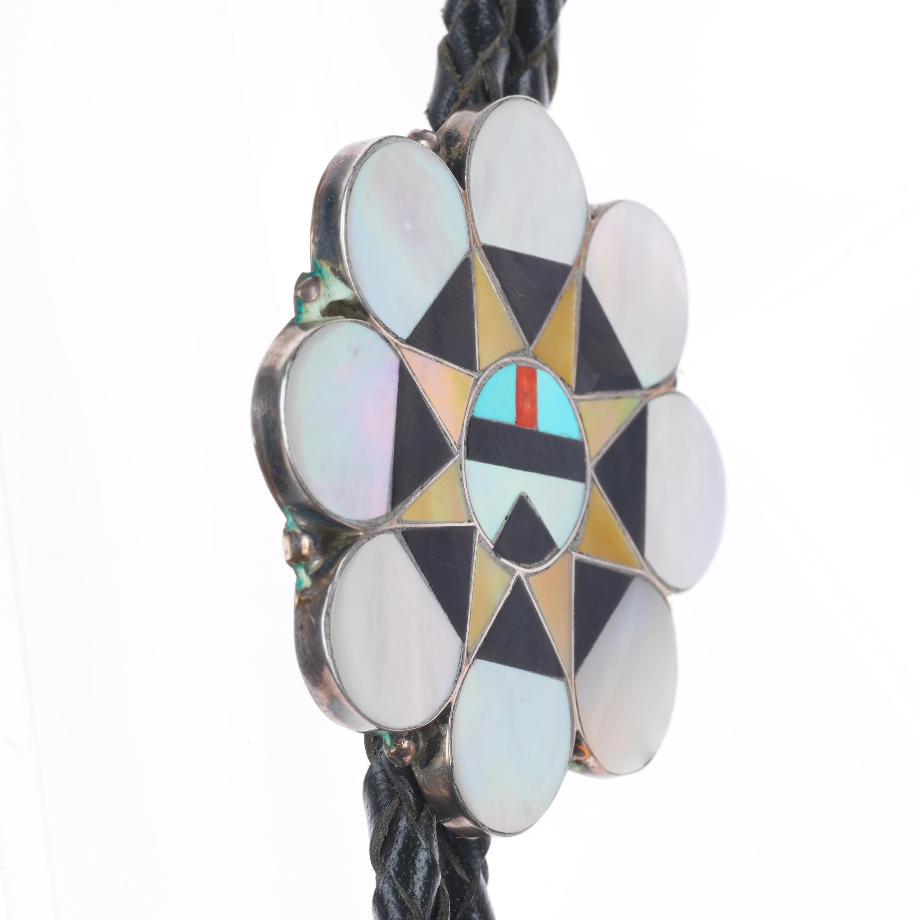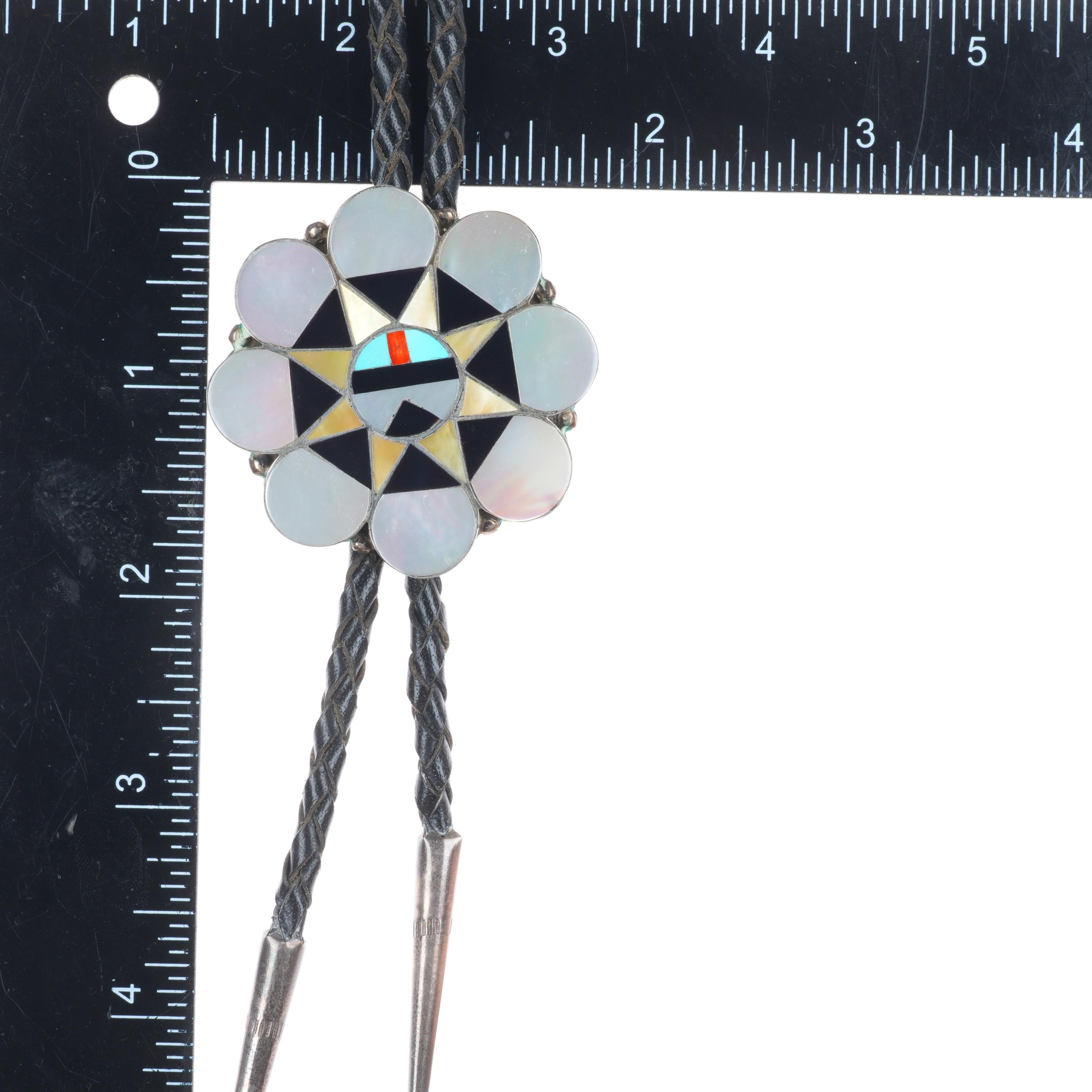 Vintage Dishta Zuni sterling silver sunface shell/turquoise inlay bolo tie