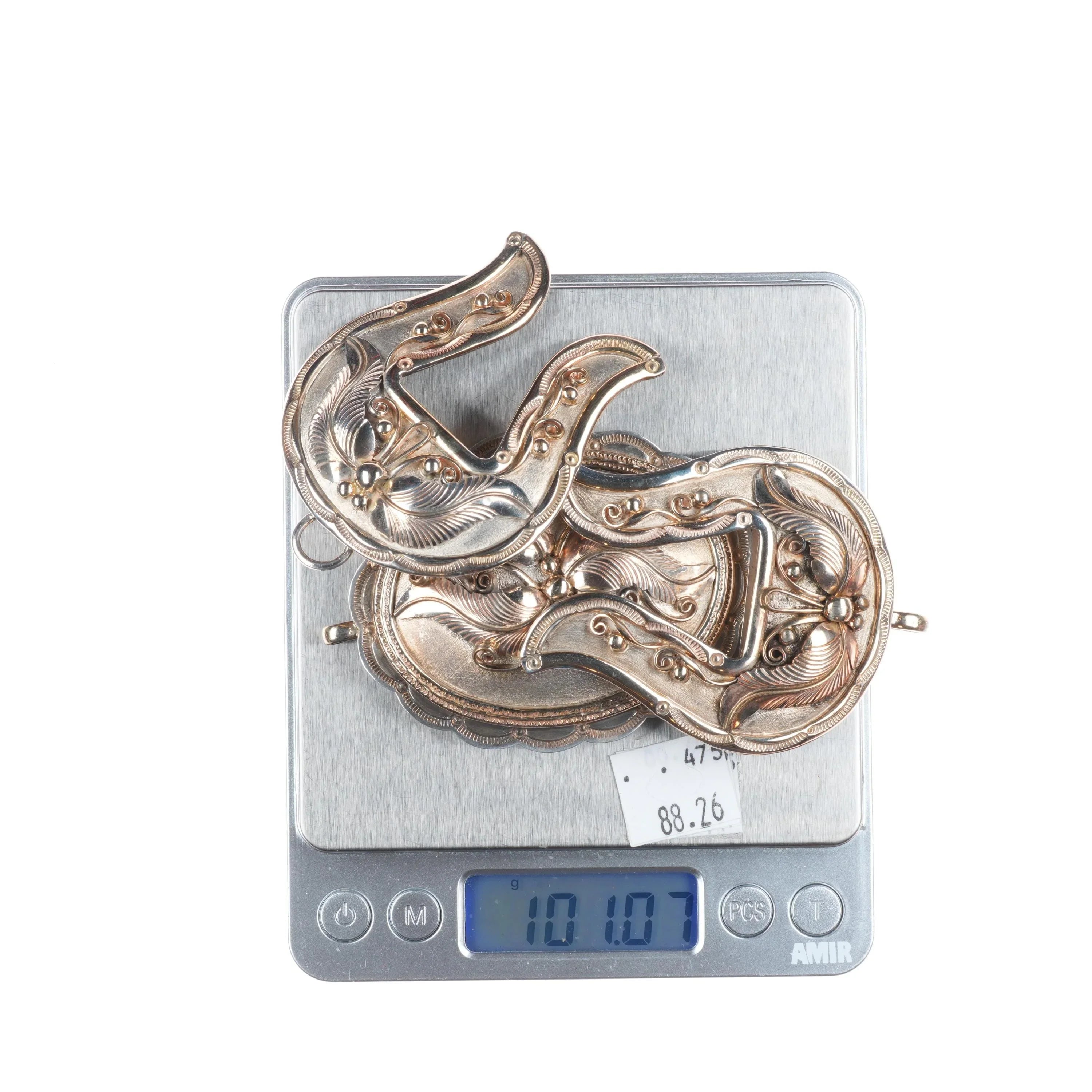 Vintage EB Navajo 3pc belt buckle set sterling silver/gold filled