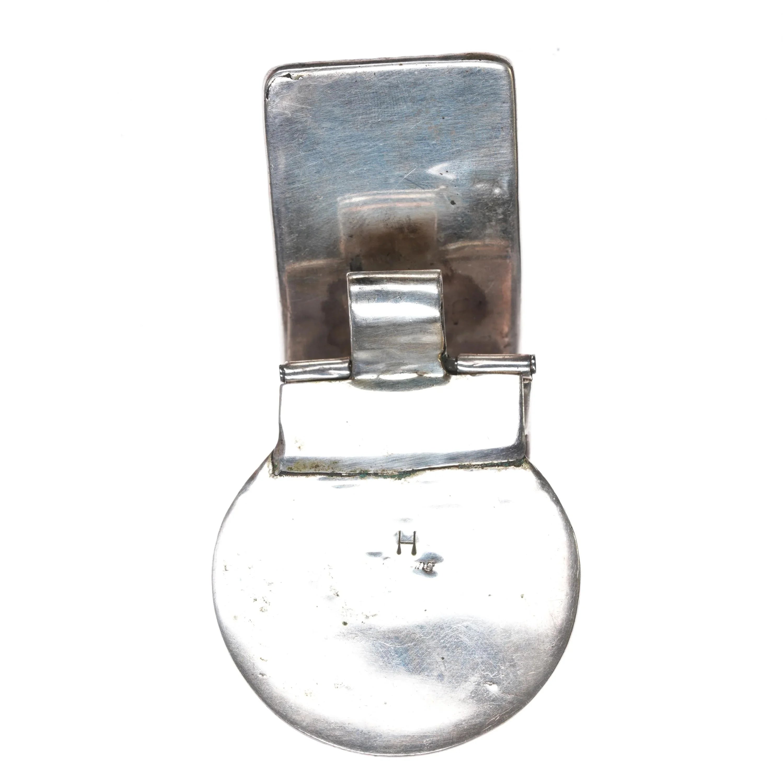 Vintage H Navajo sterling silver and turquoise heavy hinged money clip