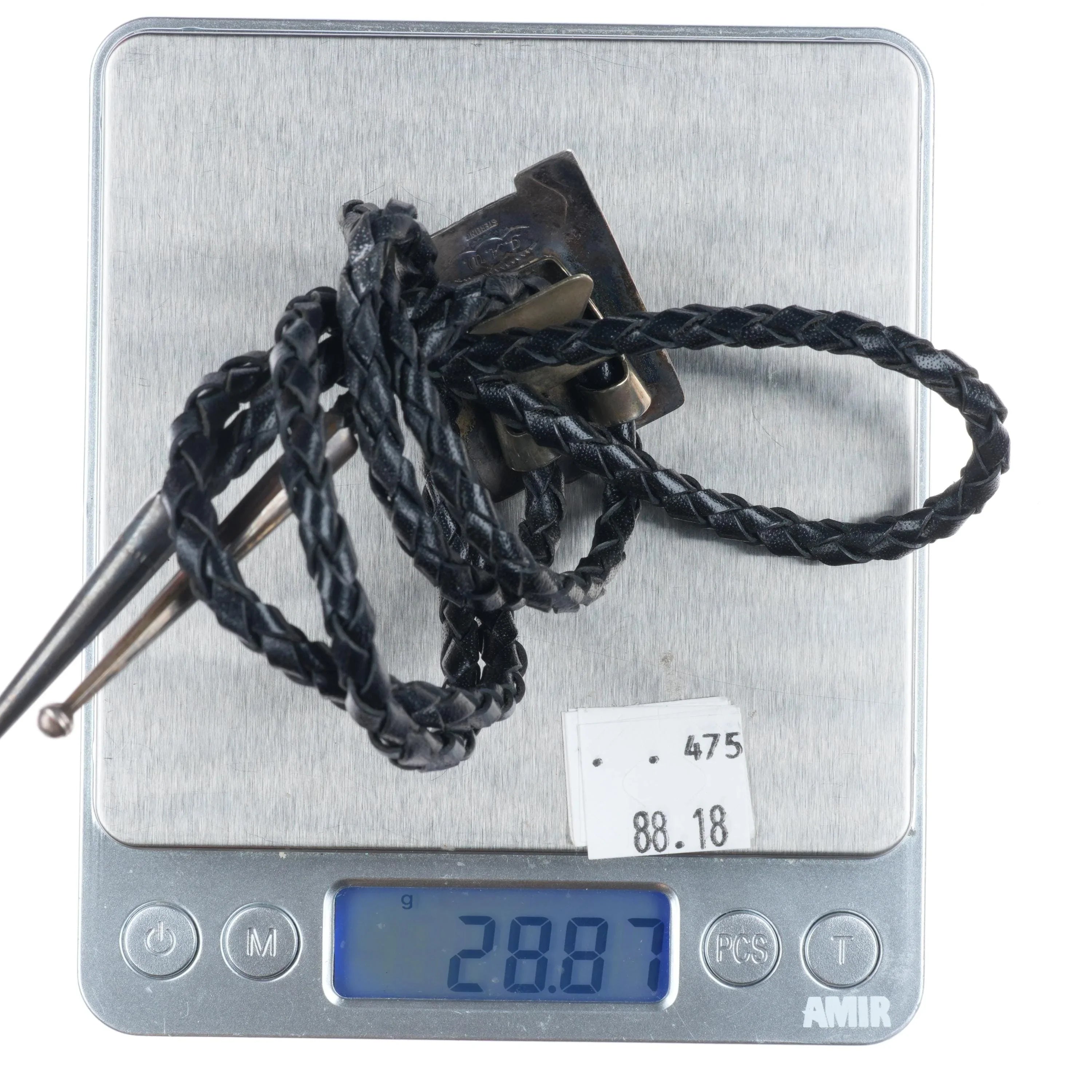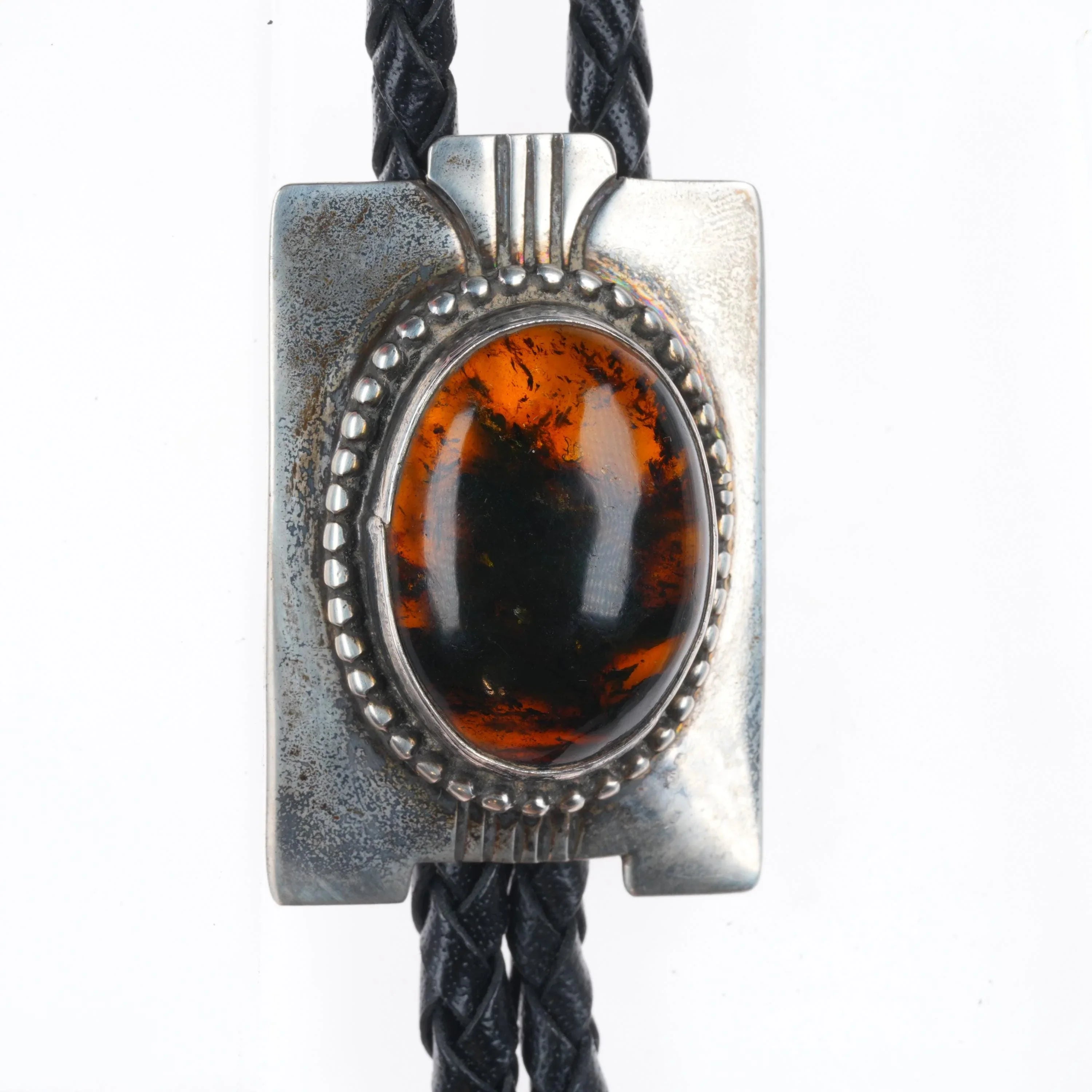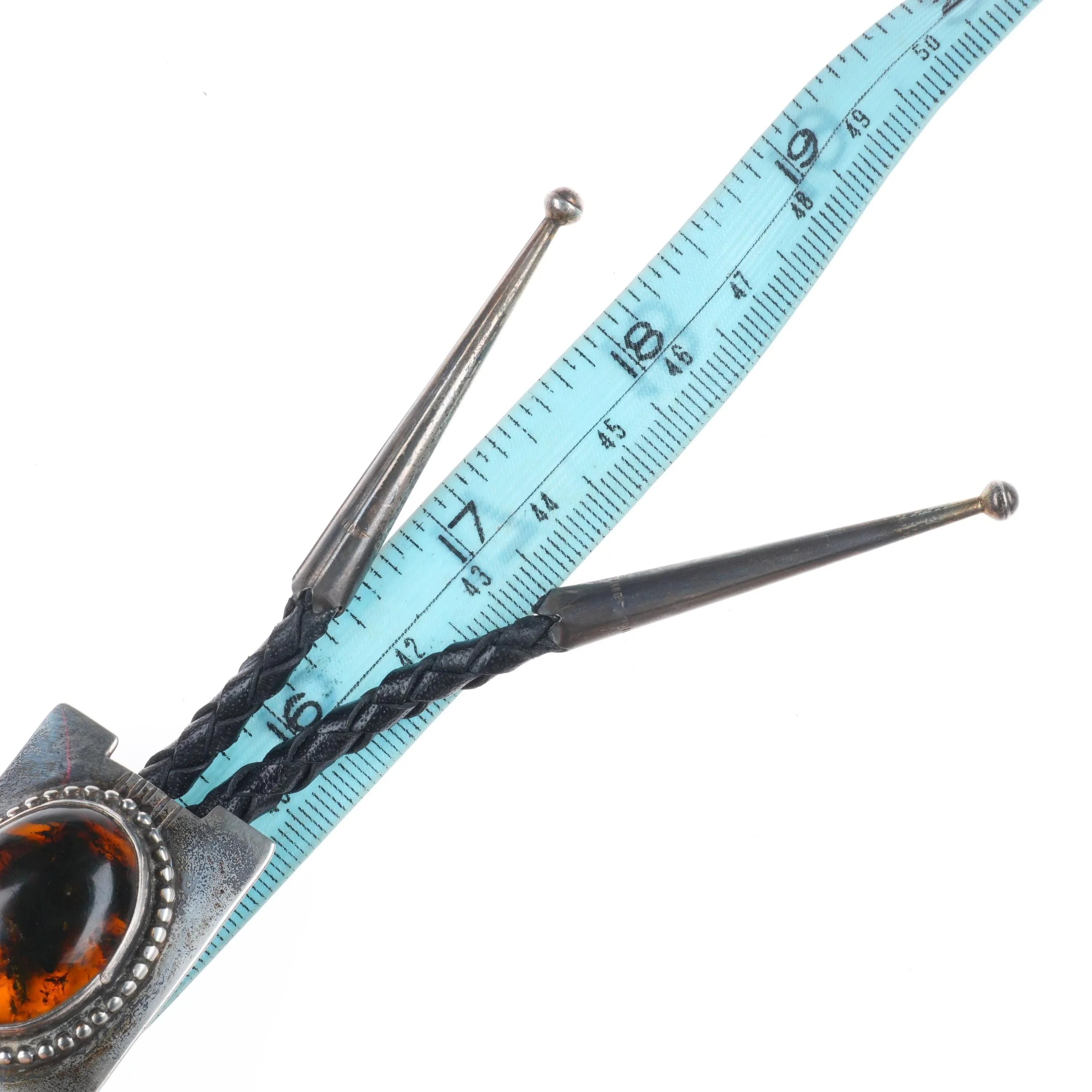 Vintage Native American sterling silver/Amber J.A.W. southwestern bolo tie