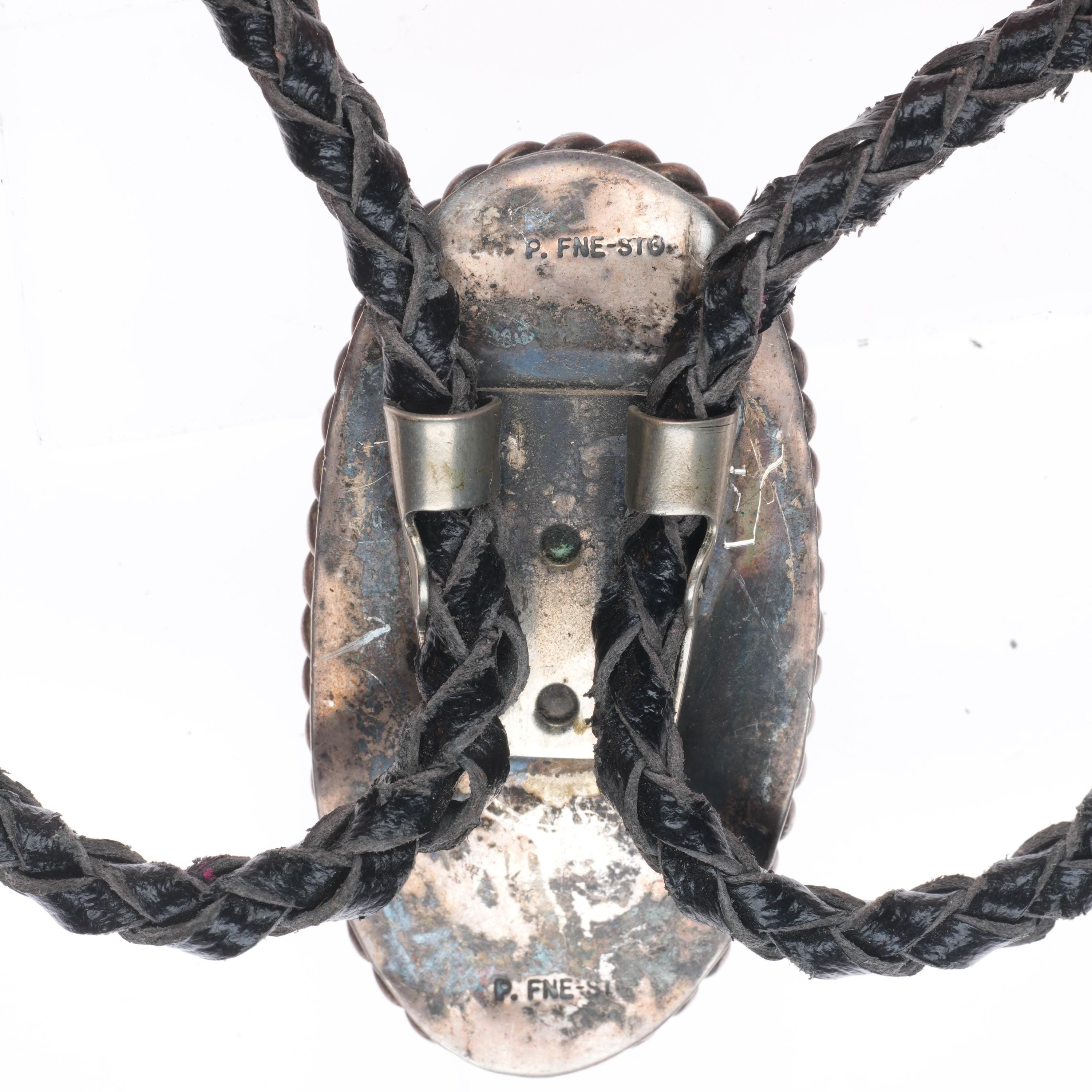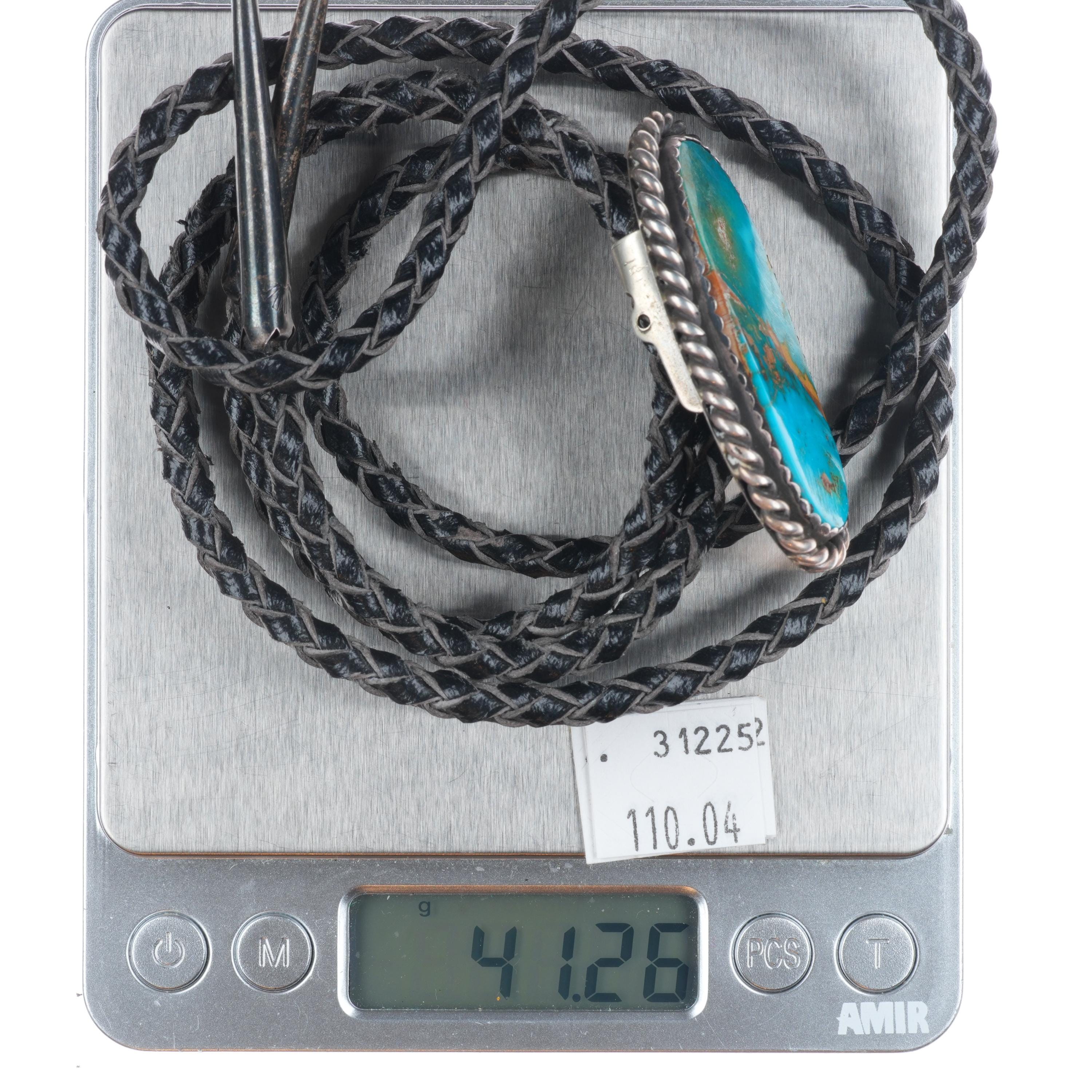 Vintage Navajo Blue Gem turquoise sterling silver rope edge bolo tie