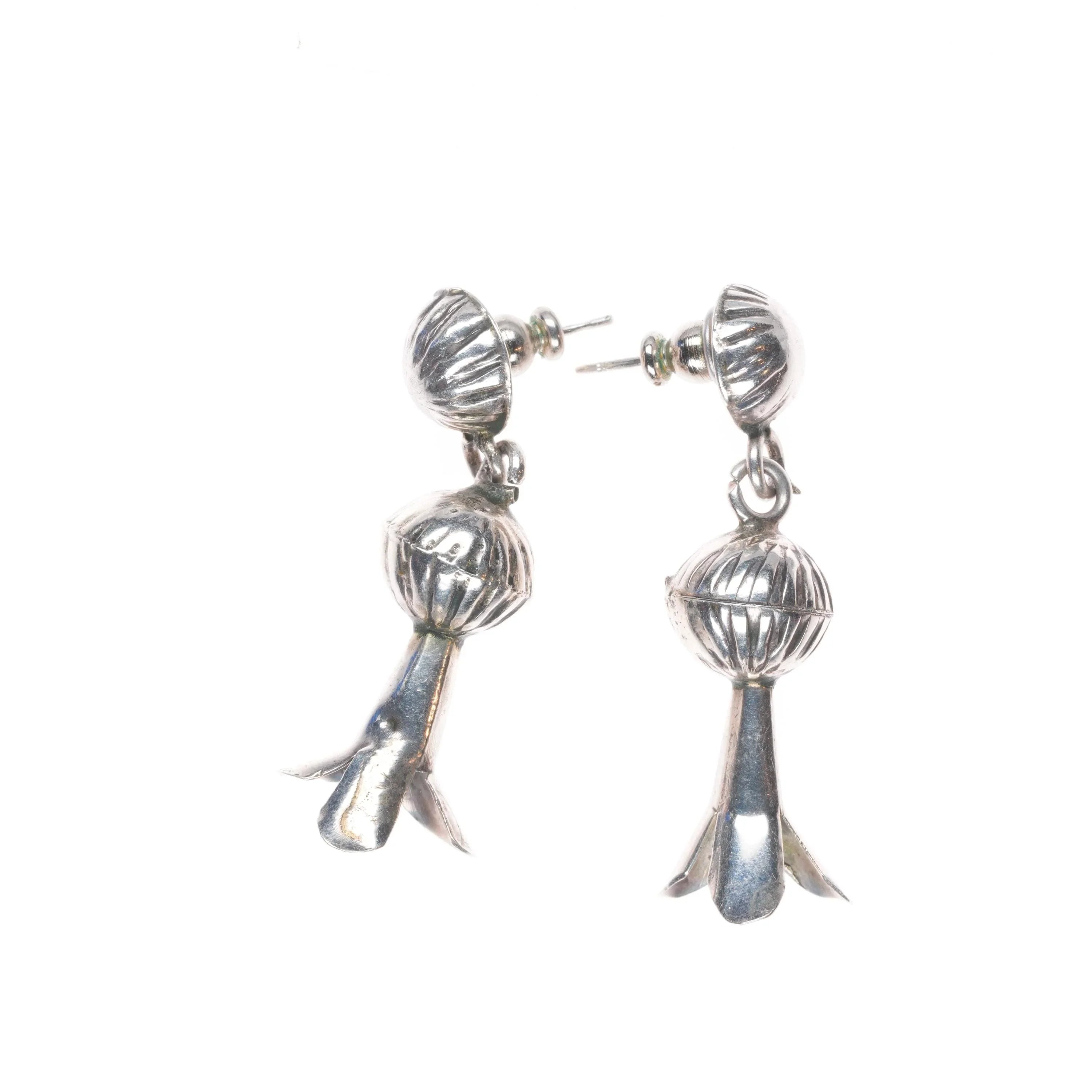 Vintage Navajo pearl fluted squash blossom earrings sterling silver