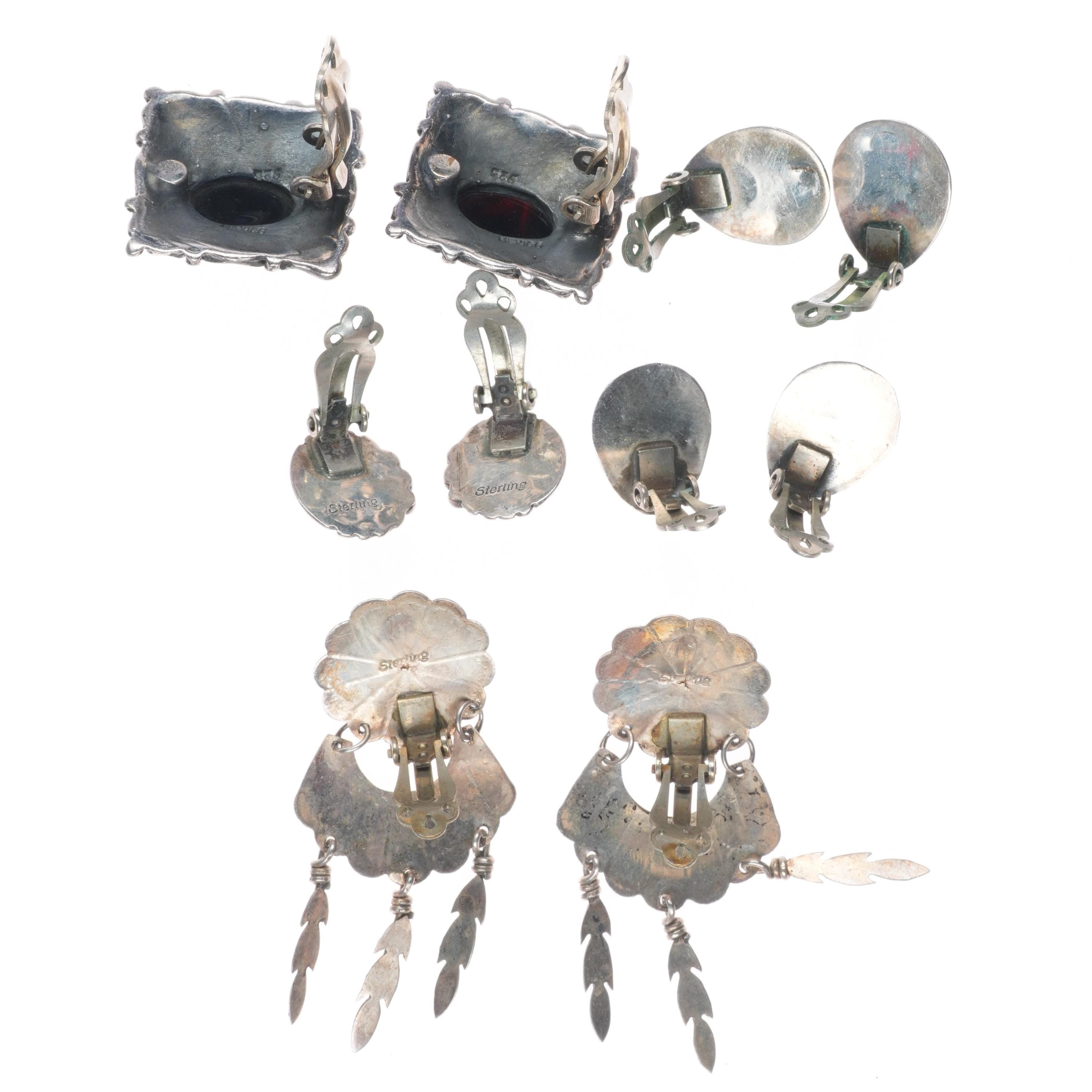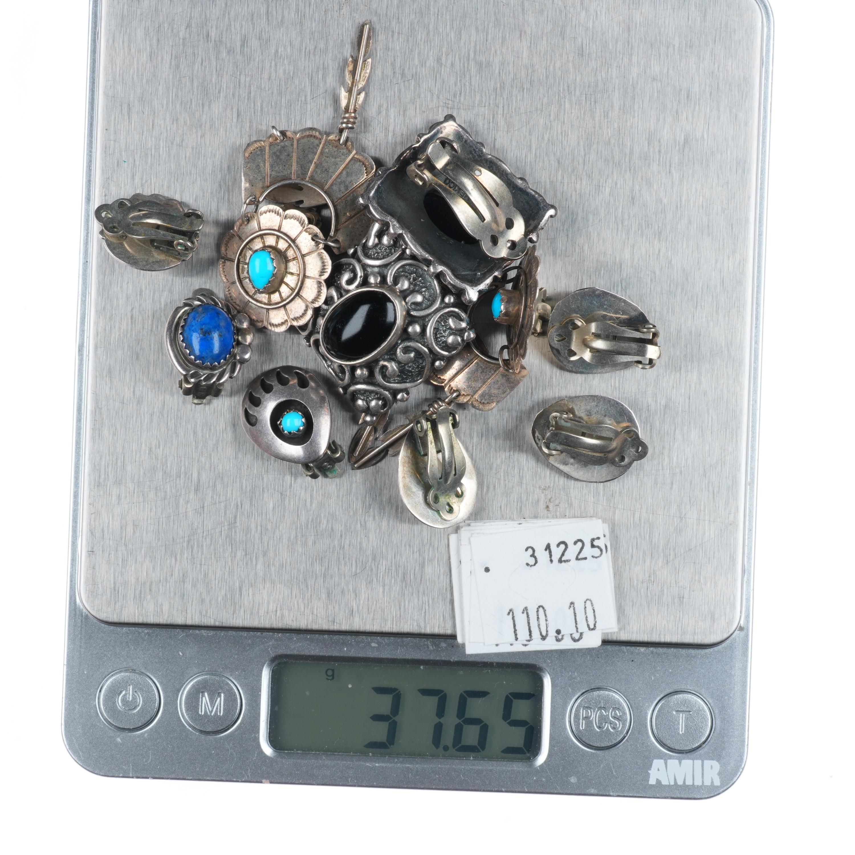 Vintage Navajo/southwestern sterling silver turquoise/lapis clip on earring lot