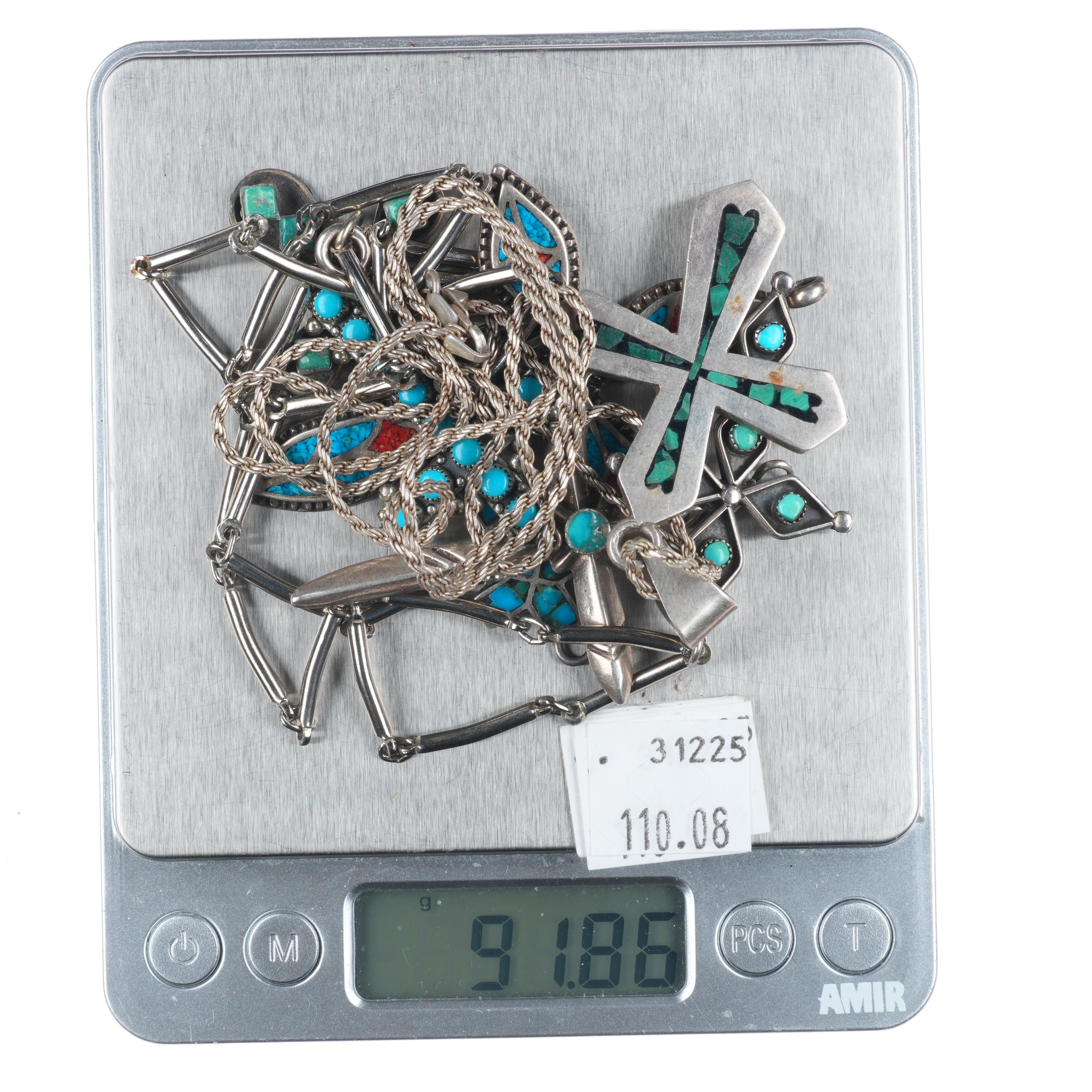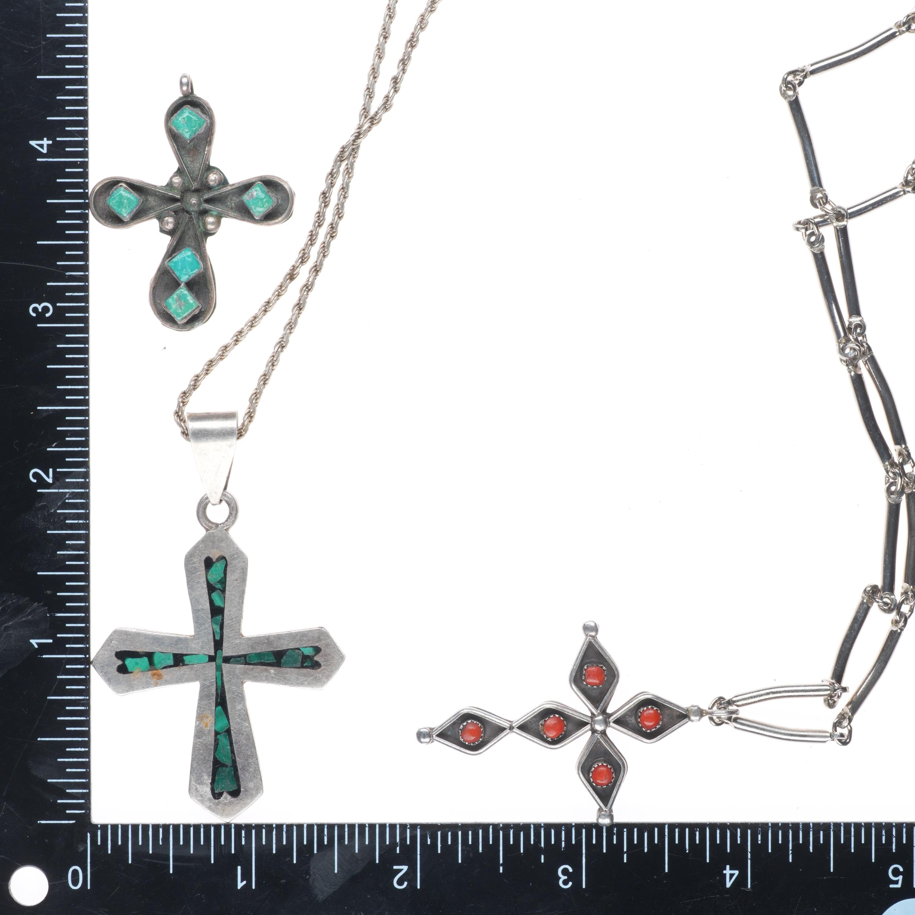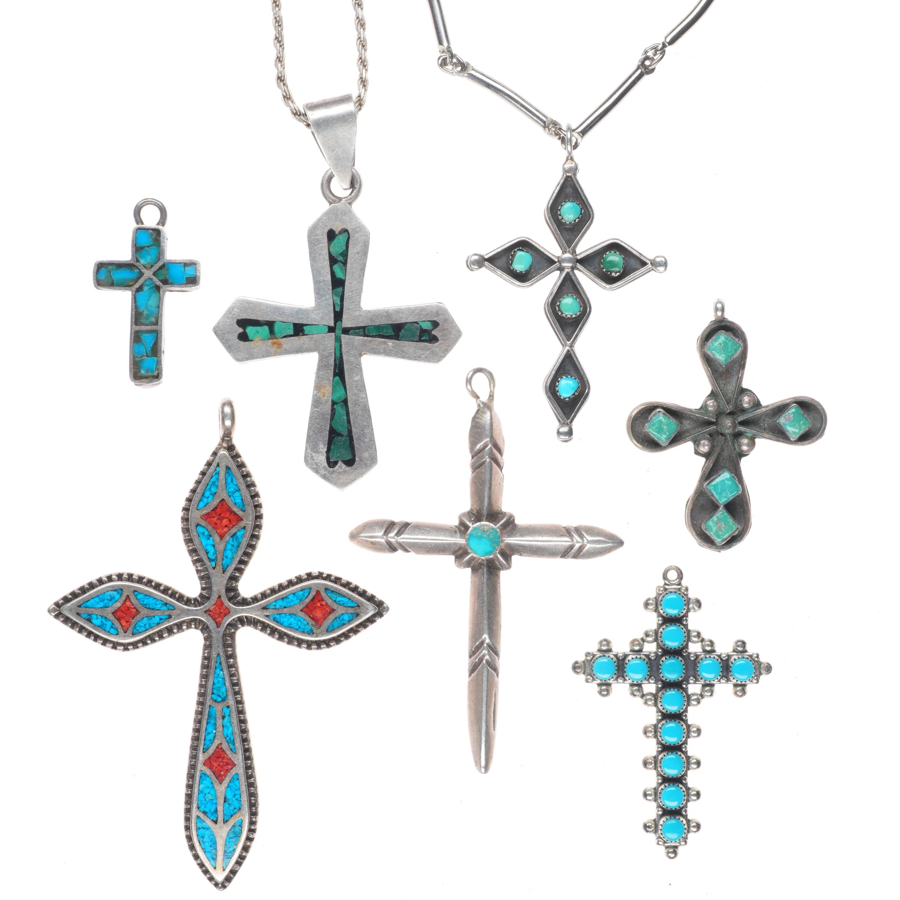 Vintage Navajo/Zuni sterling silver/turquoise snake eye cross collection/lot