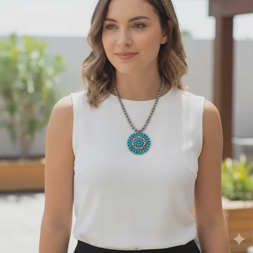 Vintage Nieto Zuni #8 spiderweb Turquoise cluster pendant/beaded necklace