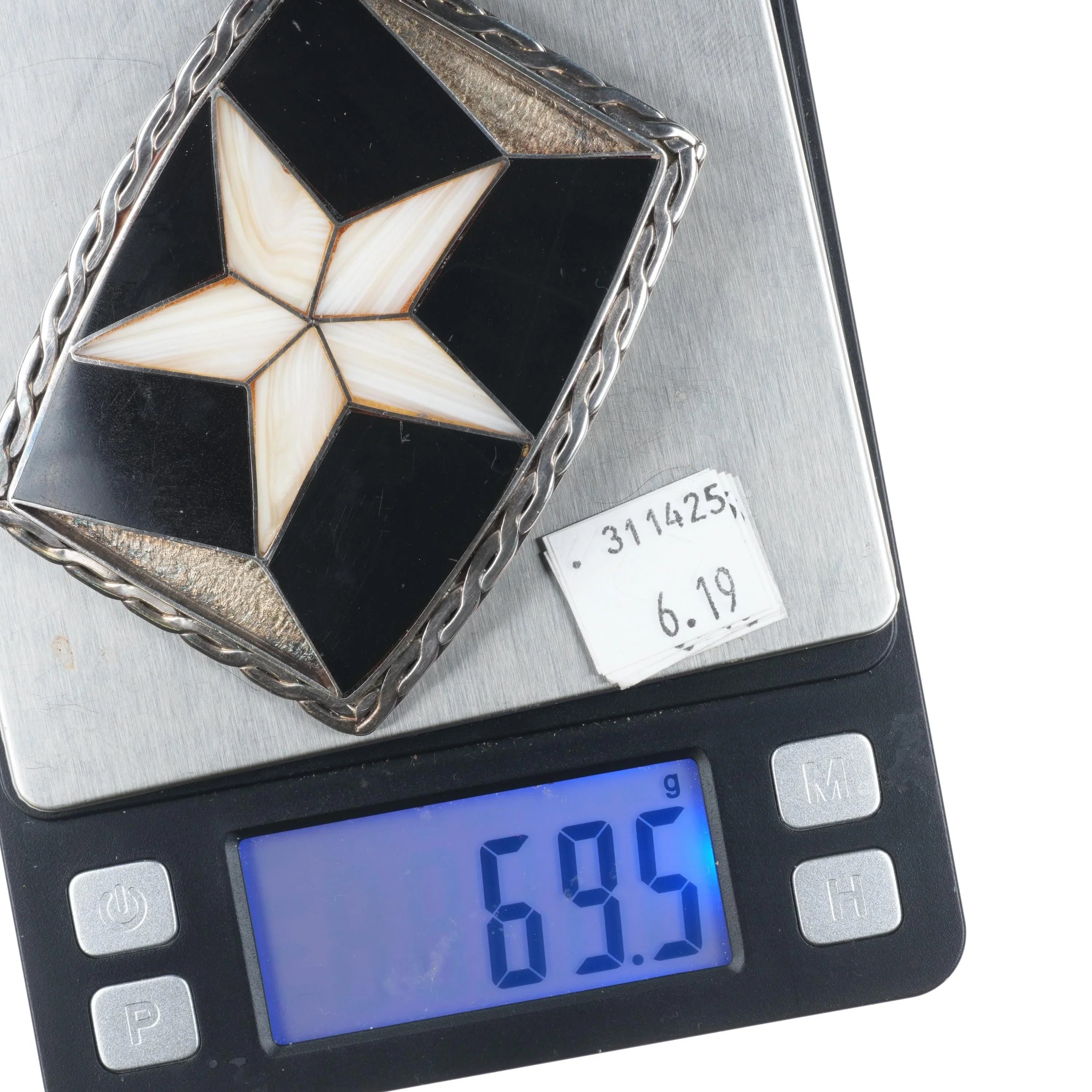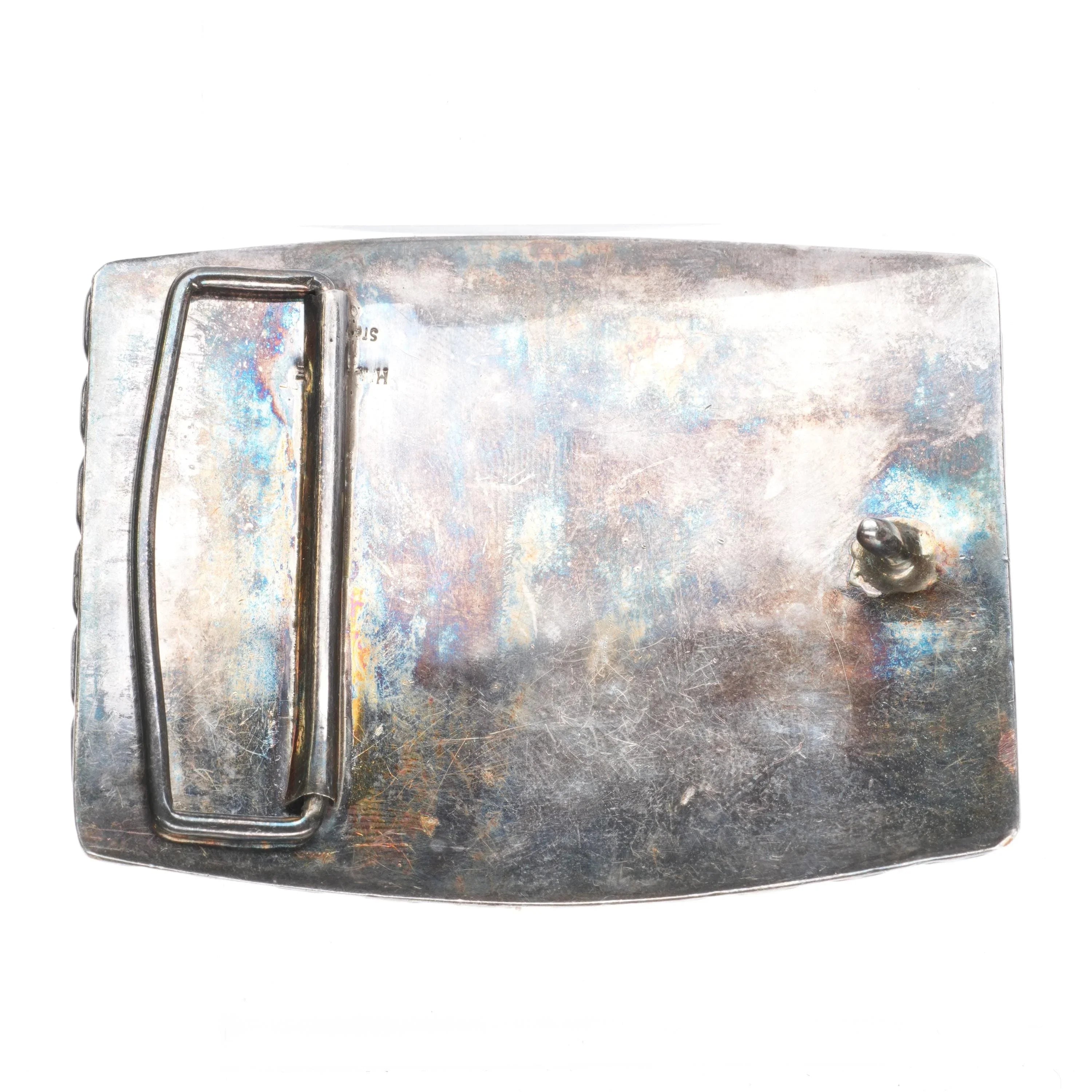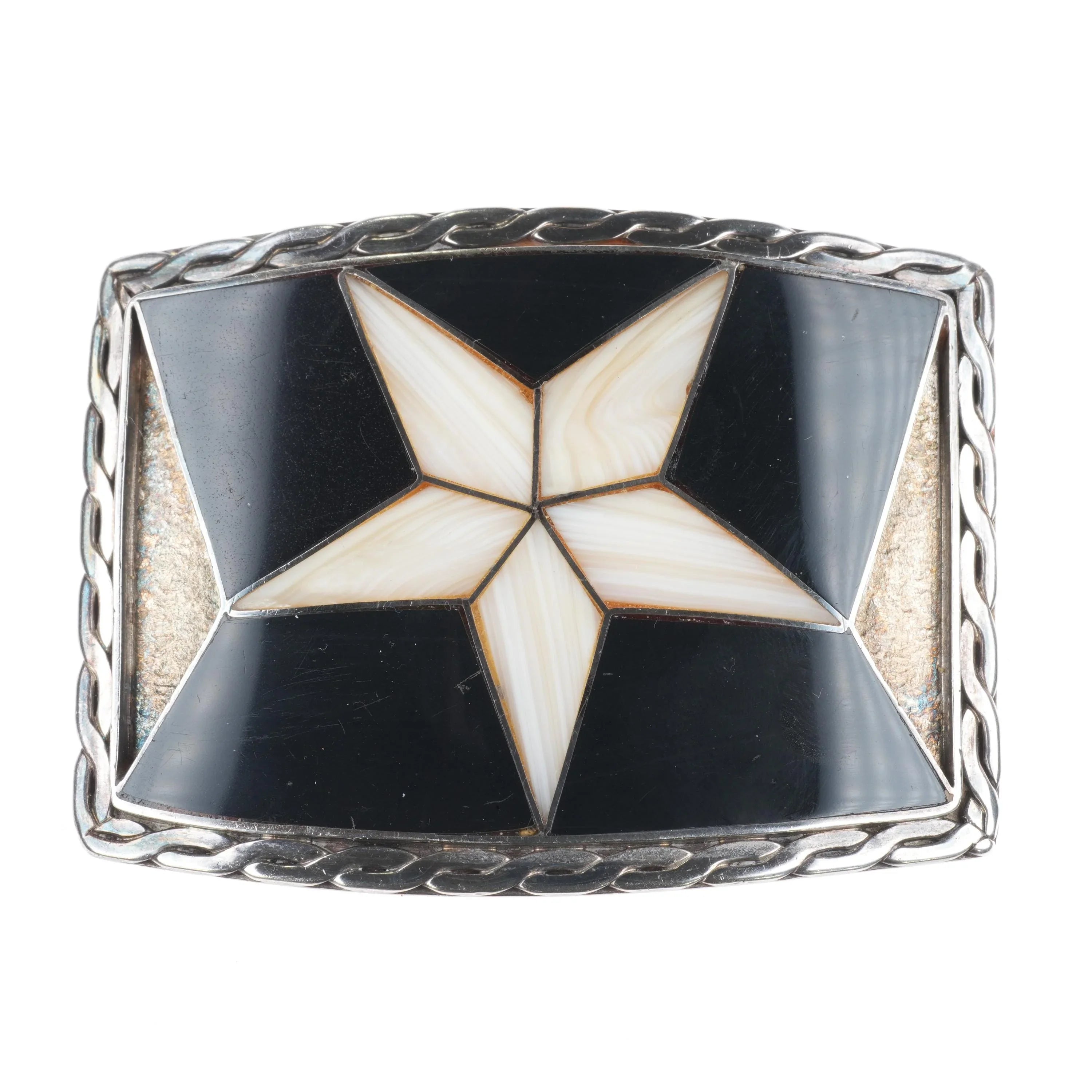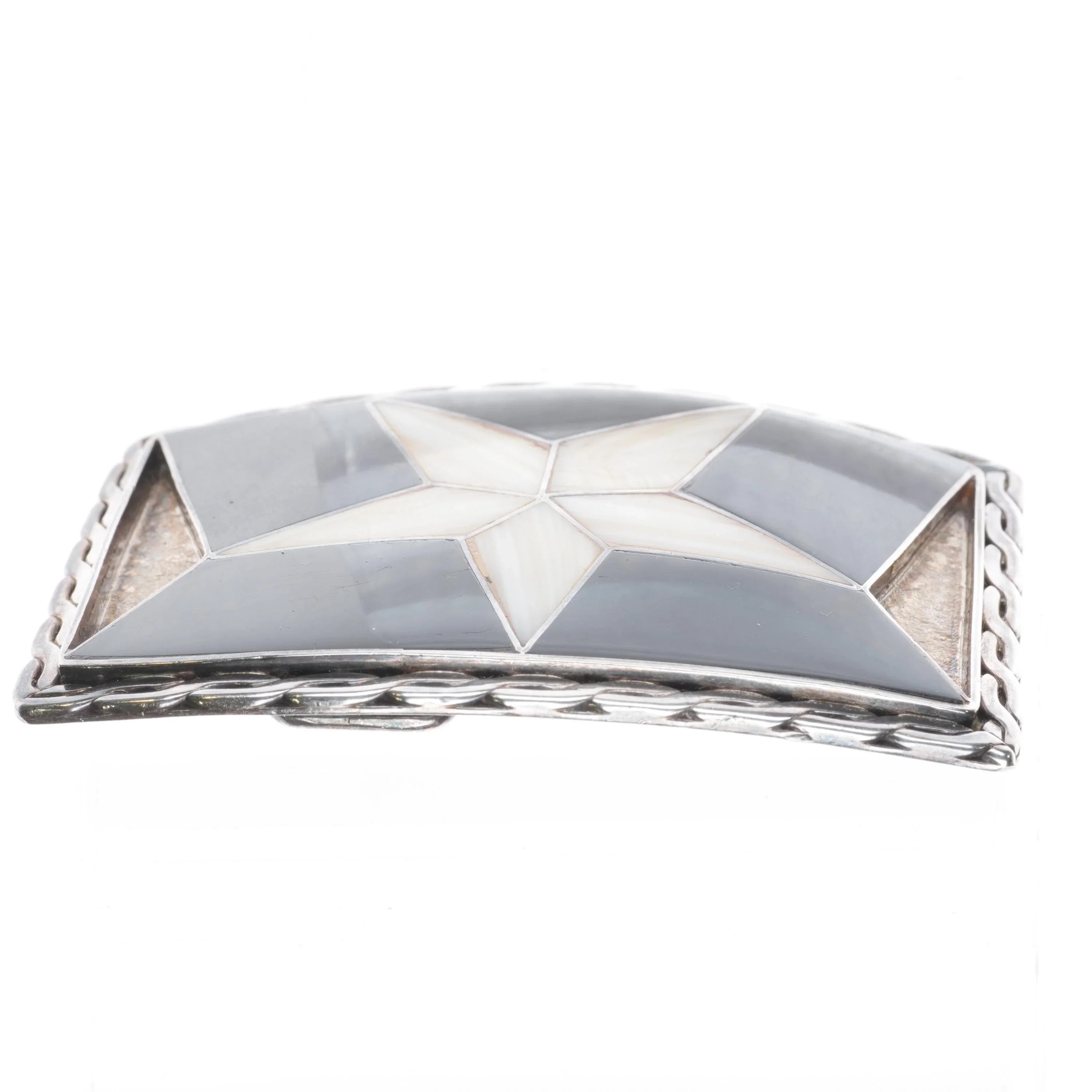 Vintage Sterling silver Texas star inlaid belt buckle fossil/shell