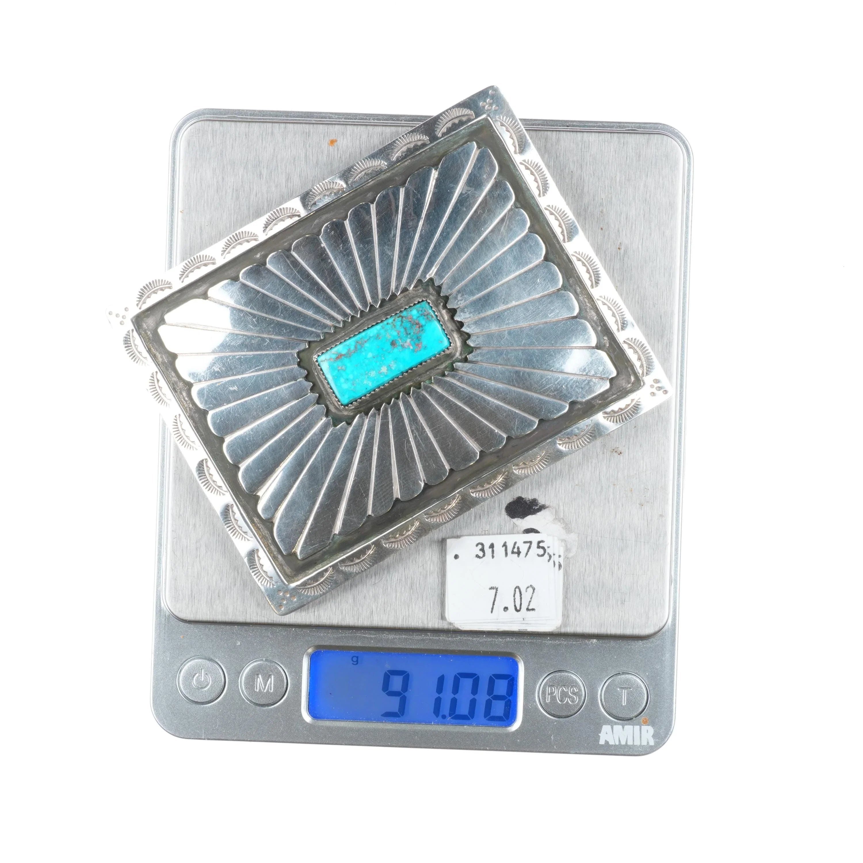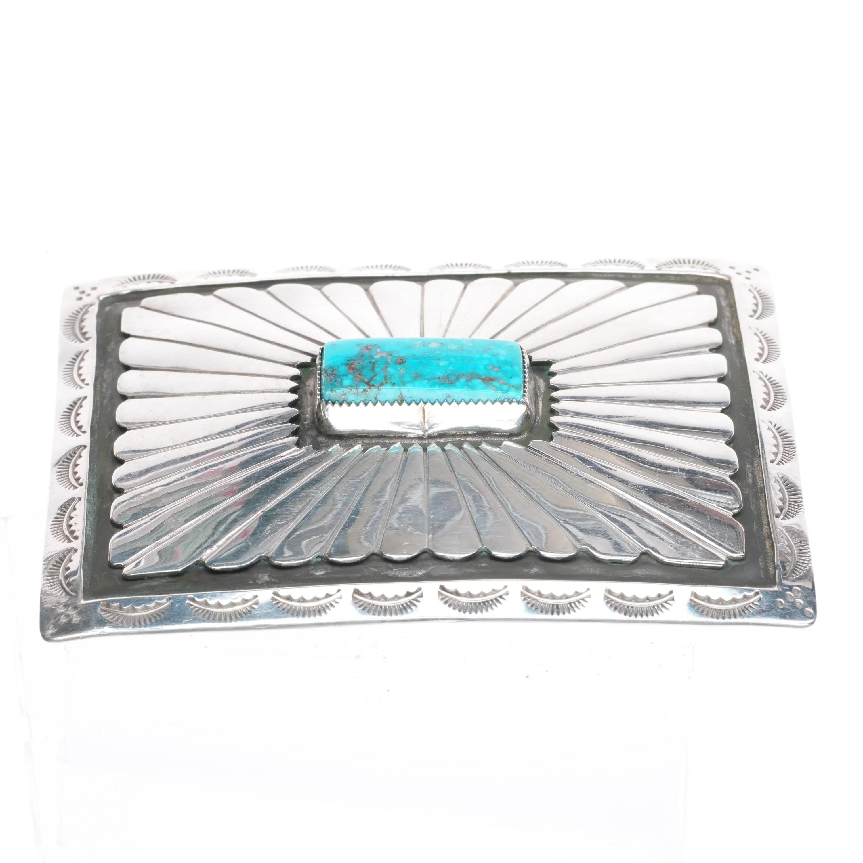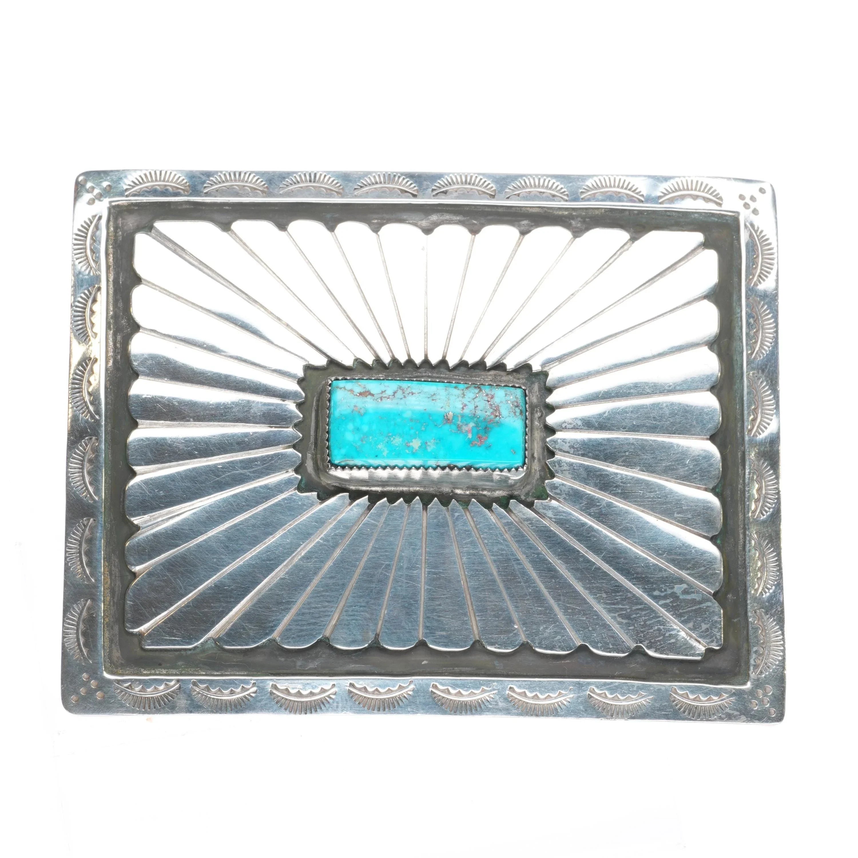 Vintage YD Navajo square sterling silver belt buckle w/ nice turquoise