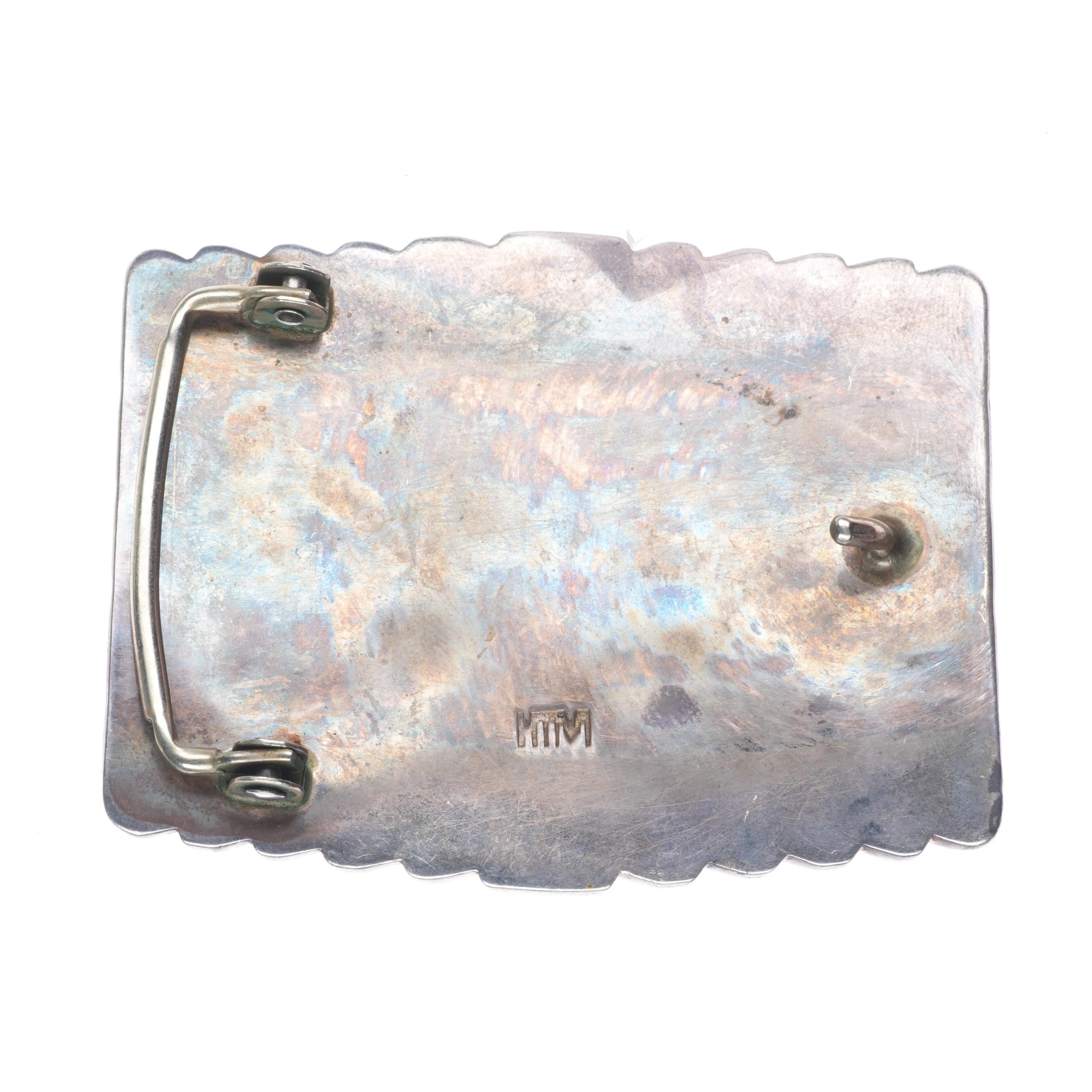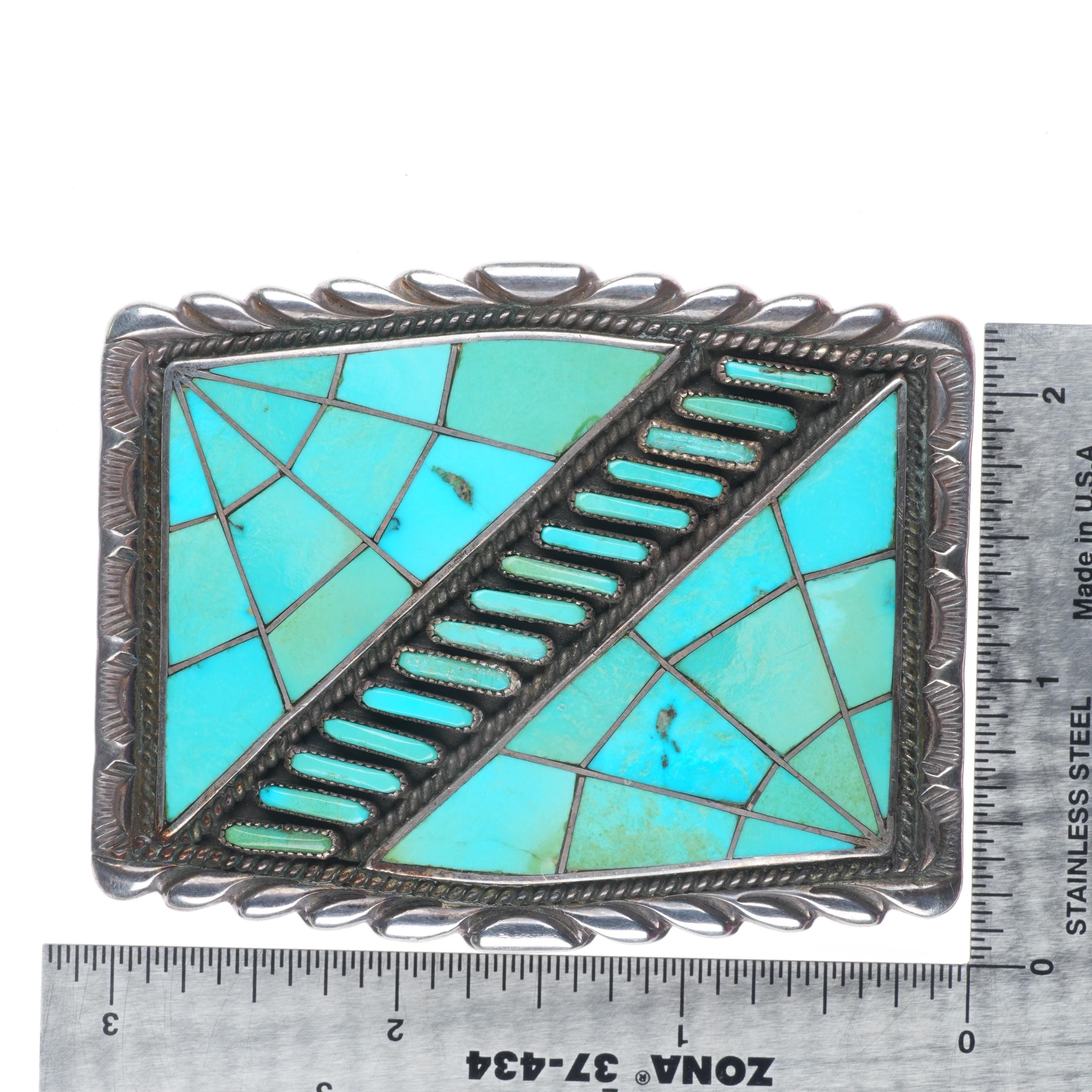 Vintage Zuni sterling silver/turquoise needlepoint/spiderweb inlay belt buckle