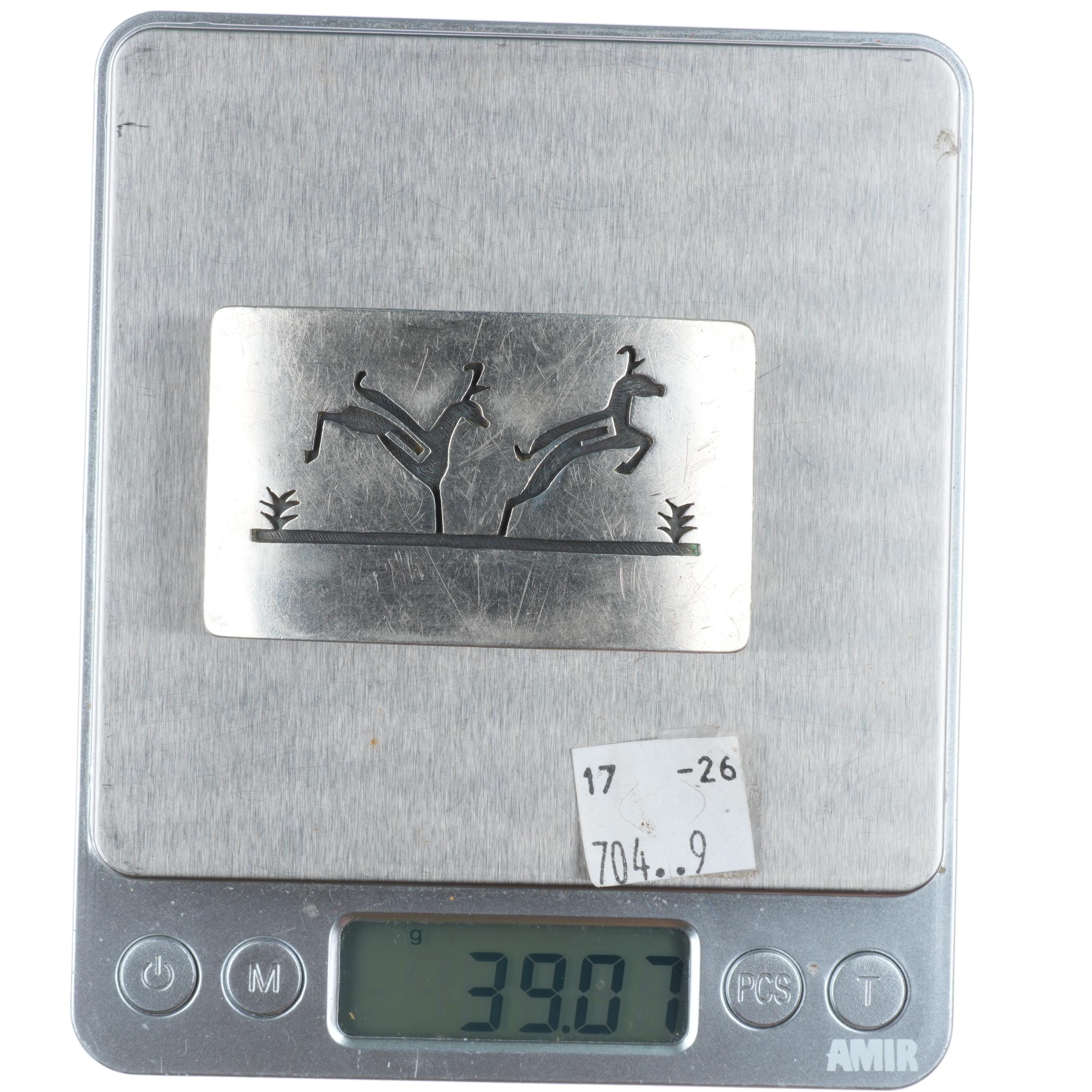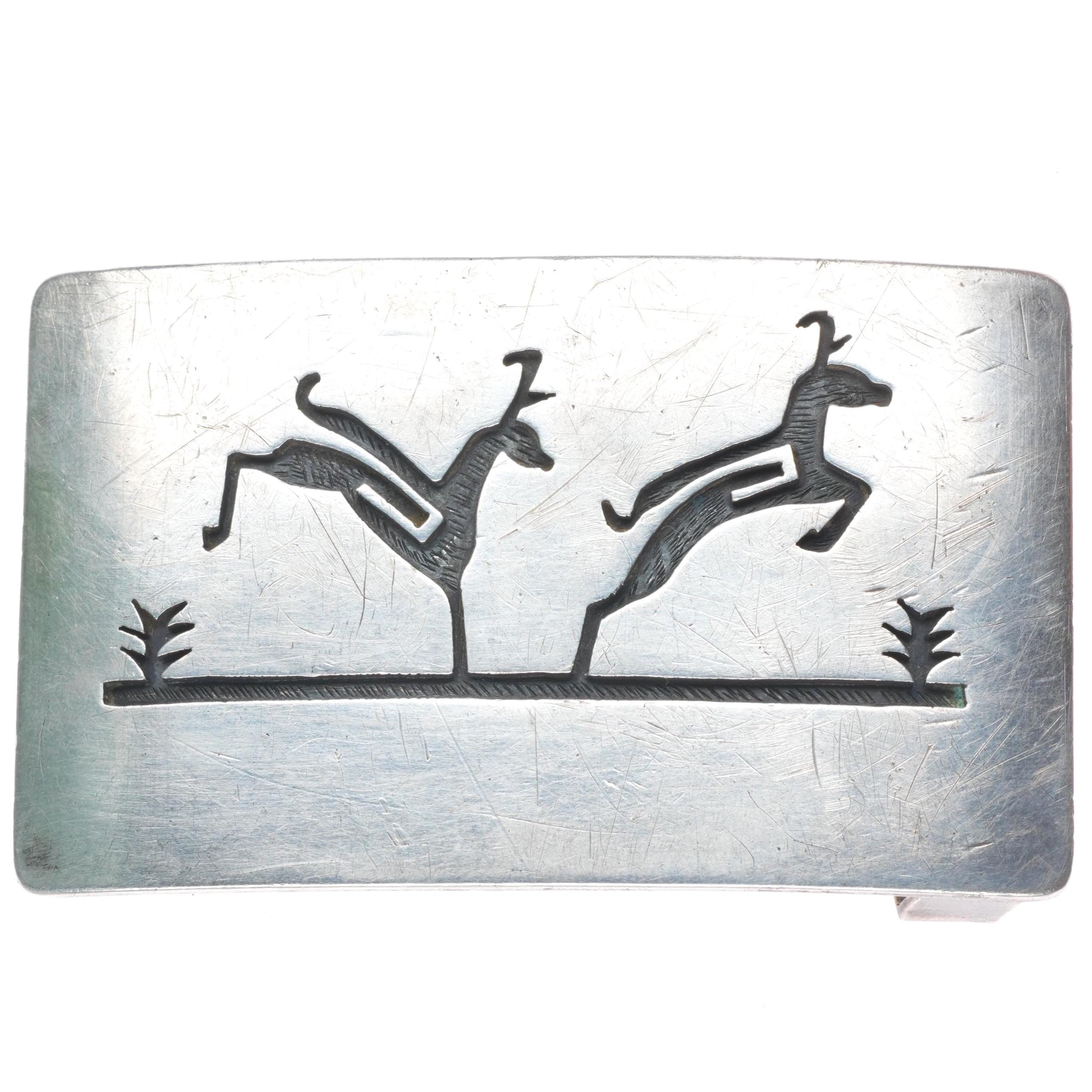 1.25" Joe Coochyumptewa Hopi overlay jumping deer belt buckle sterling silver