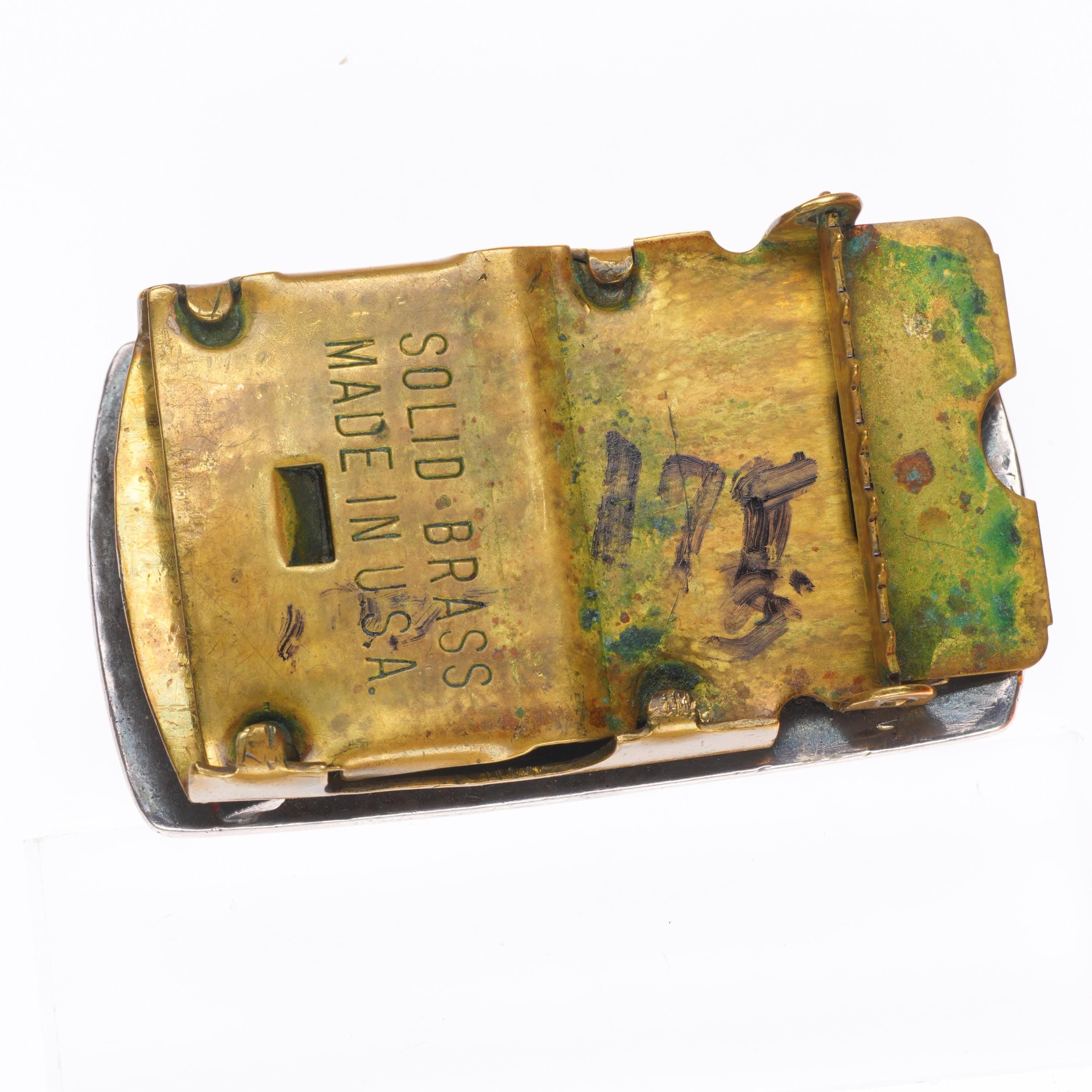 1.25" Vintage Navajo sterling silver turquoise channel inlay belt buckle. Solid sterling silver (tested) with weight and measurements in pictures..... Read more