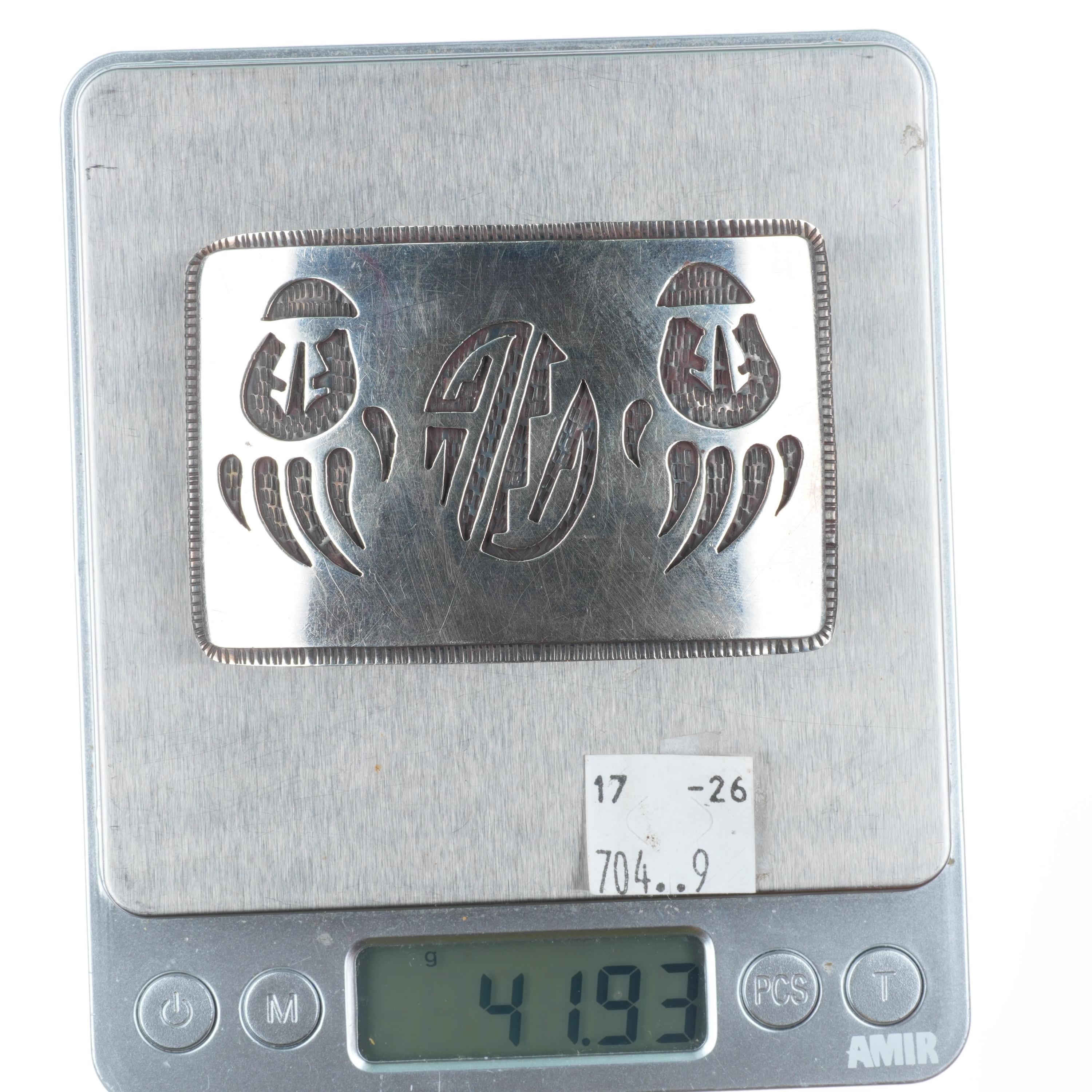 1.5" Karen Dale Navajo or Hopi sterling silver bear paw belt buckle . Solid sterling silver (tested) with weight and measurements in pictures.. Buckle fits a 1.5" belt. Circa third quarter of the 20th century.