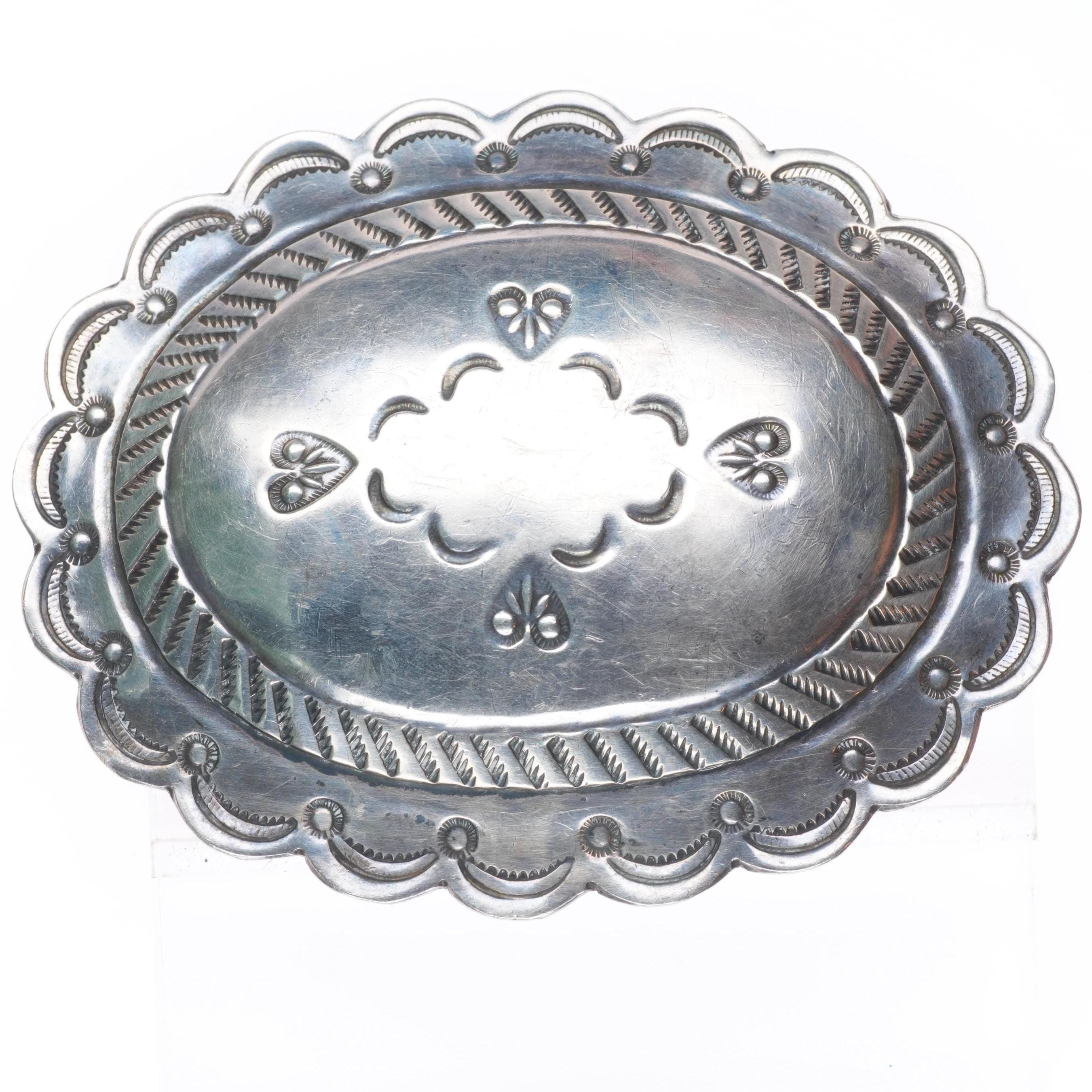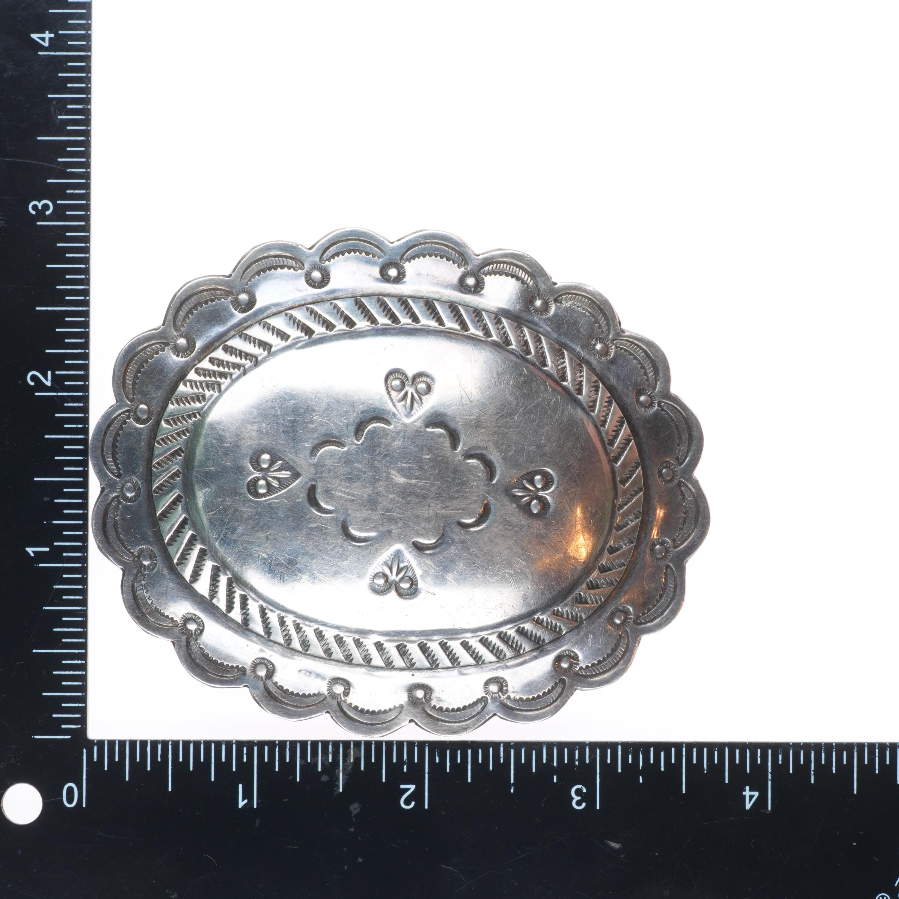 1.5" Vintage Navajo sterling silver stamped sterling silver concho belt buckle