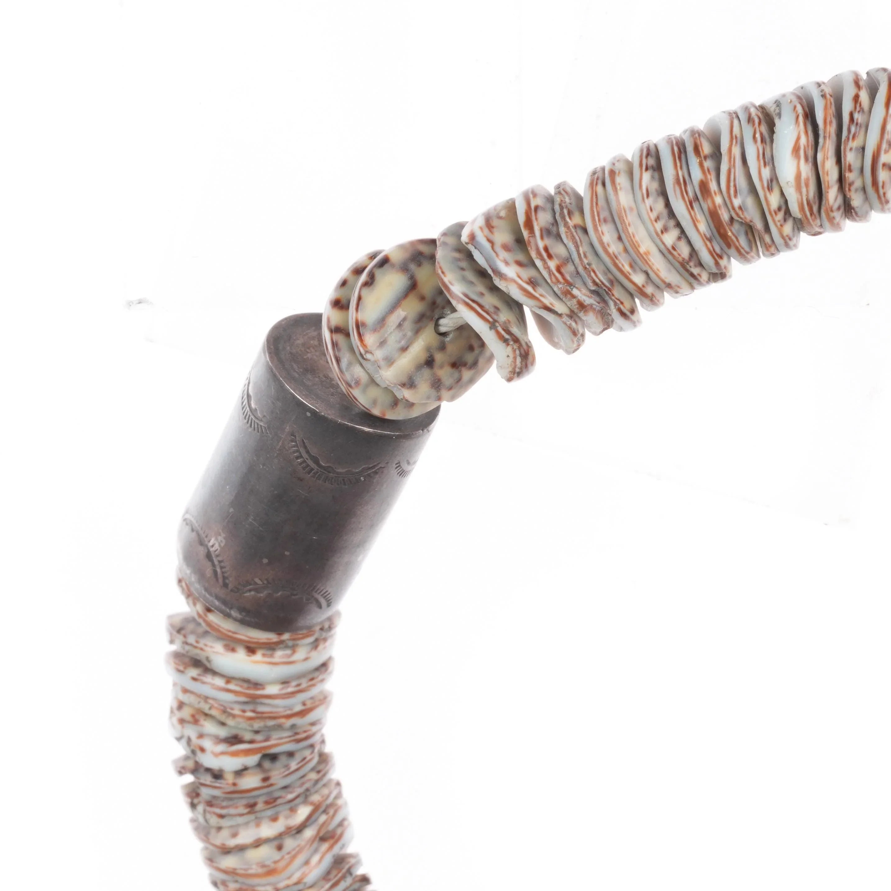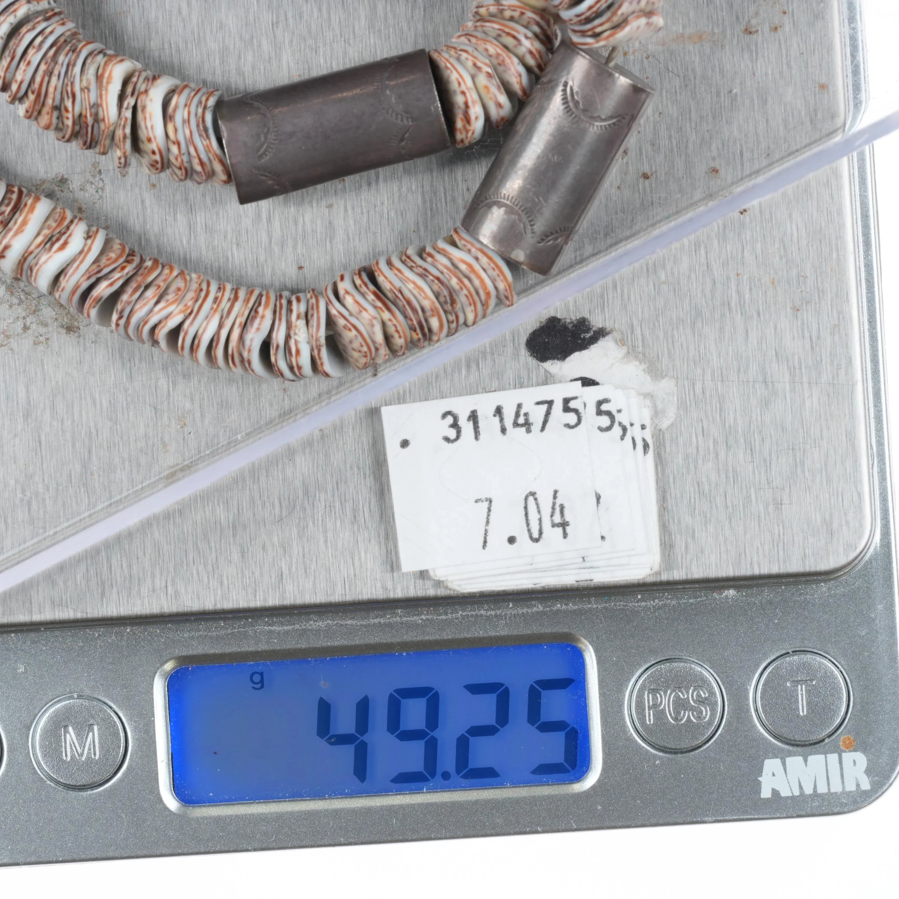 16" Vintage Santo Domingo shell bead stamped sterling silver tube necklace