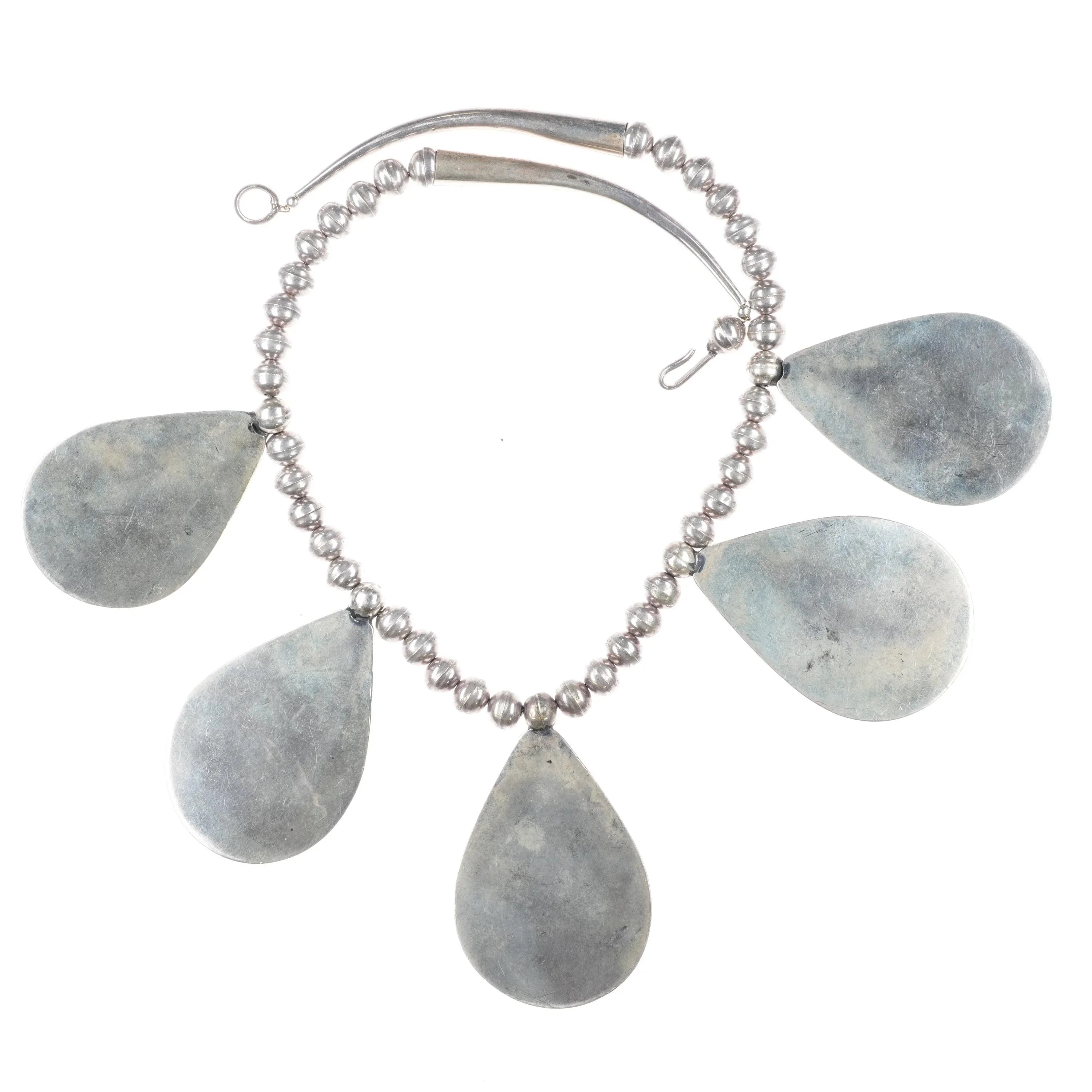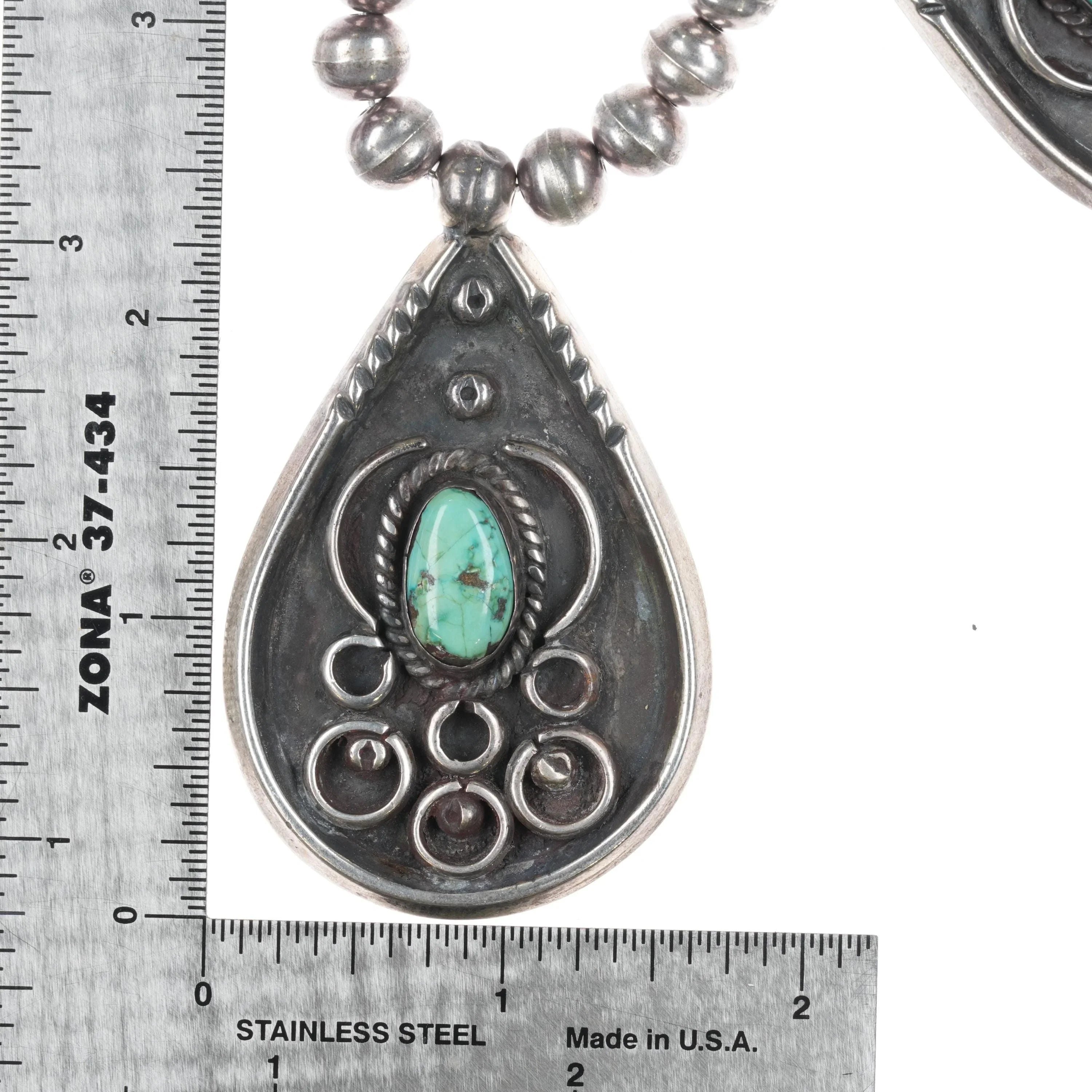 18" Vintage Navajo sterling silver beaded turquoise pendant necklace 5 drop