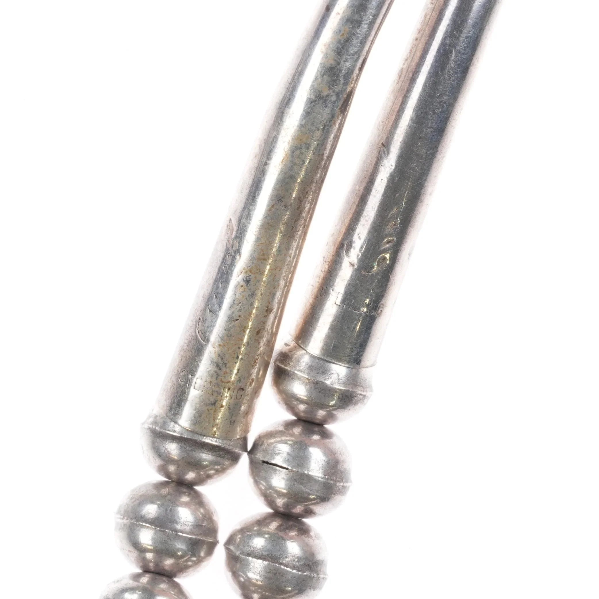18" Vintage Navajo sterling silver beaded turquoise pendant necklace 5 drop. No damage or issues, Buying the Necklace shown with no damage, circa 1970‘s, no detectable markings other than the sterling and other stamps on the tubes by the clasp. Tested and guaranteed solid sterling silver.