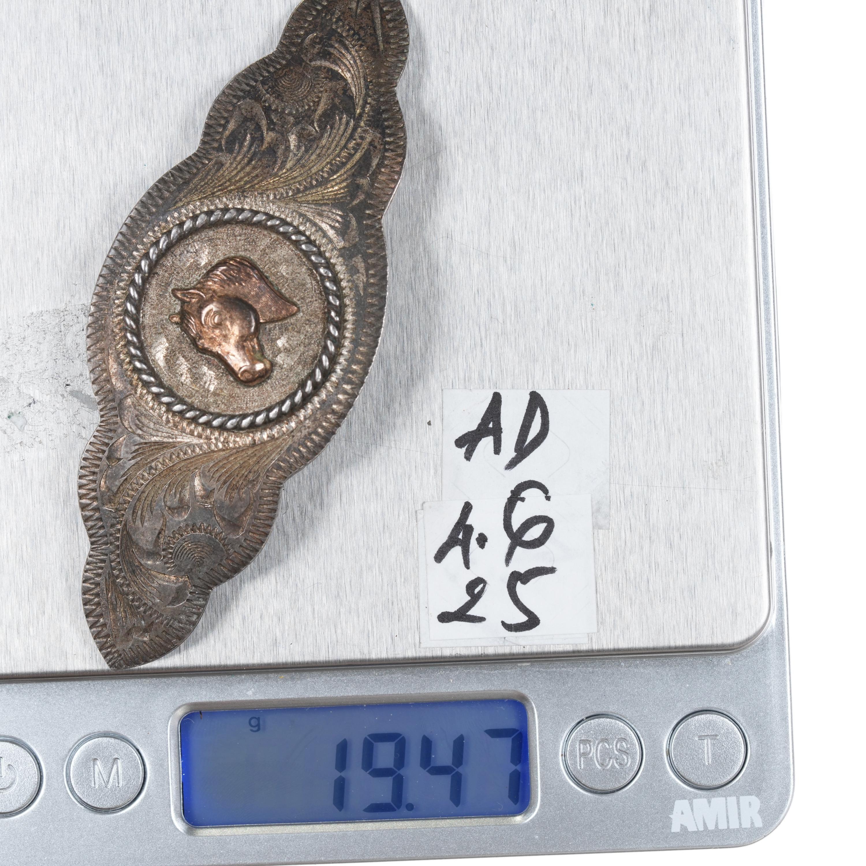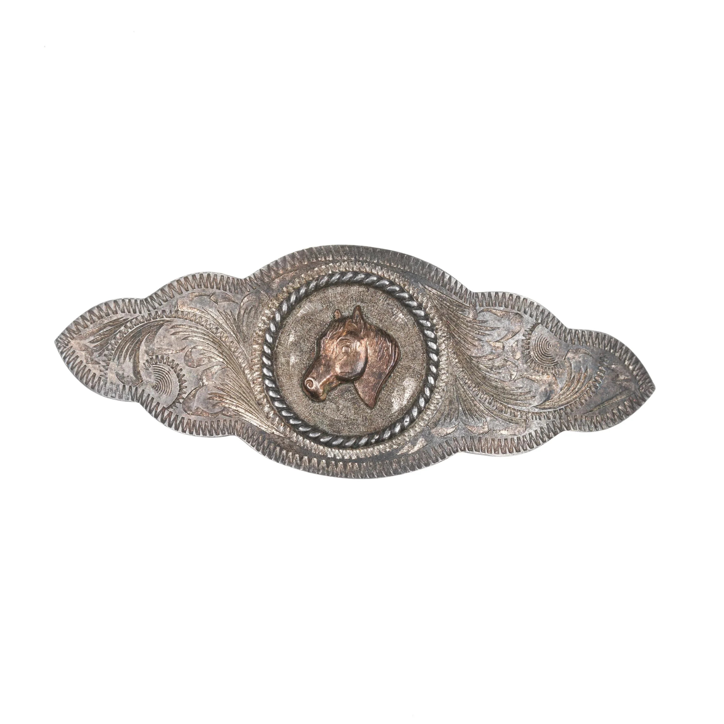 1960's Vogt Sterling/10k hand engraved horse hair barrette