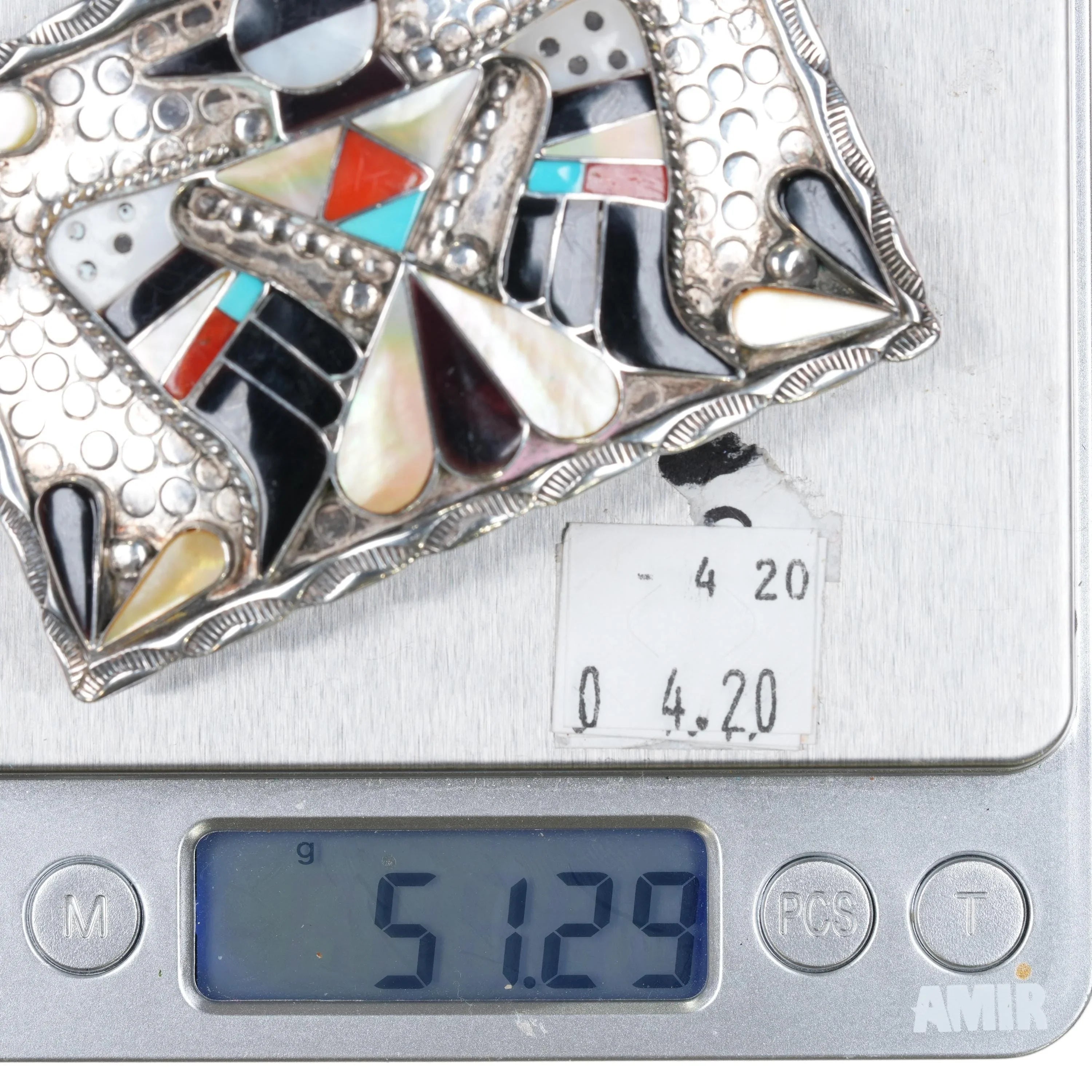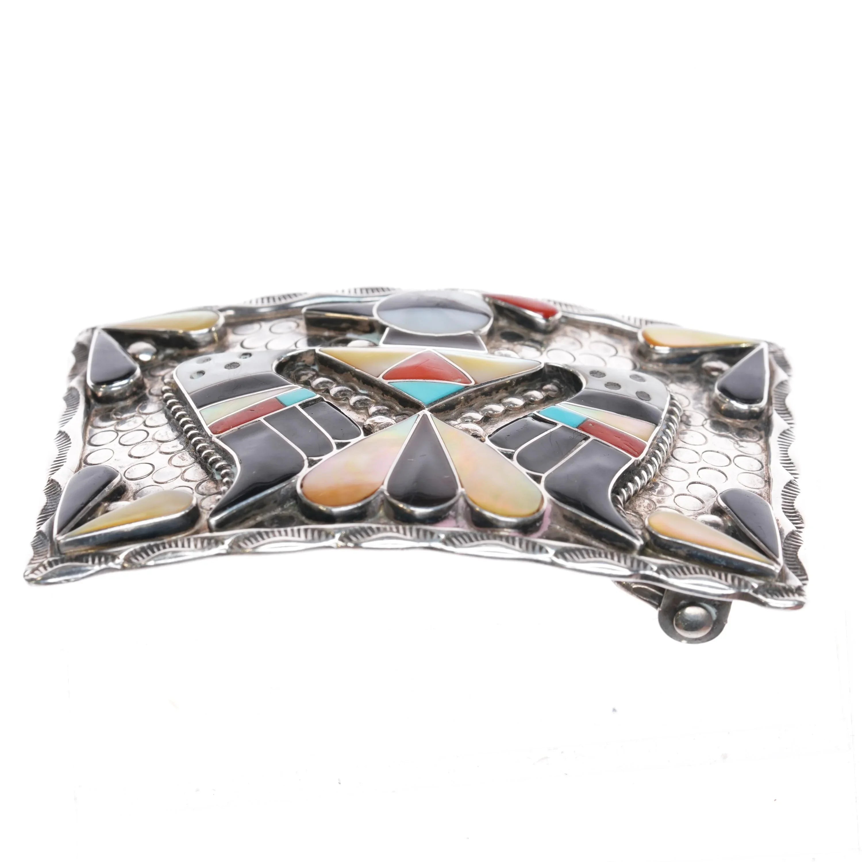 1970's Bobby & Corraine Shack Zuni sterling silver inlay thunderbird belt buckle