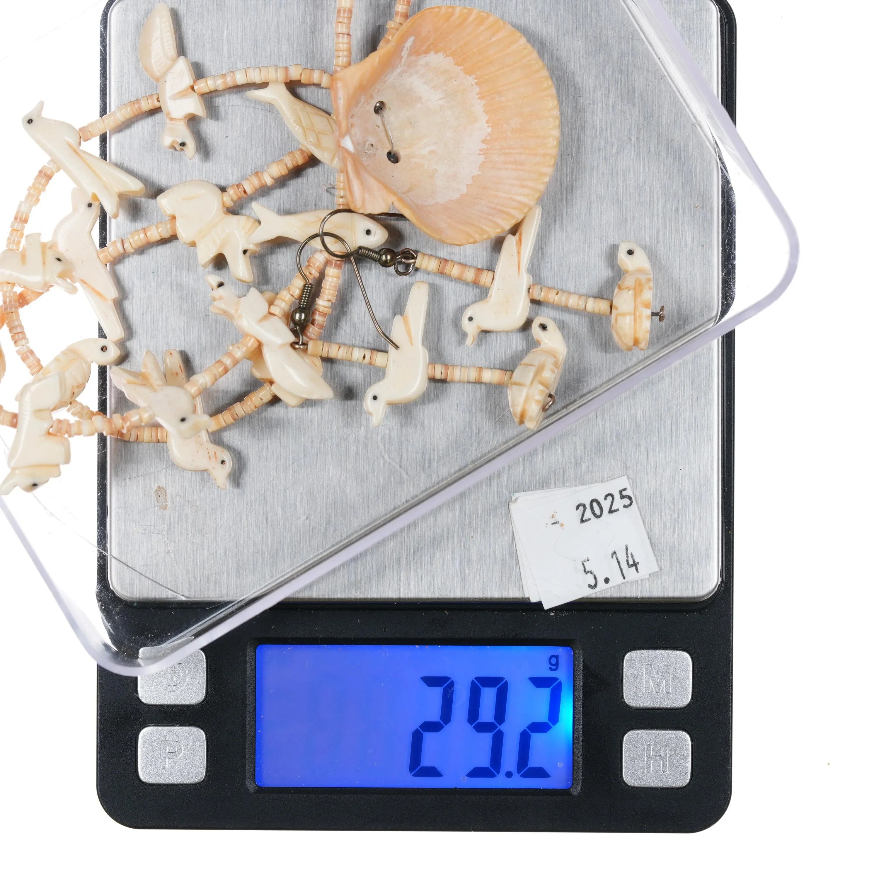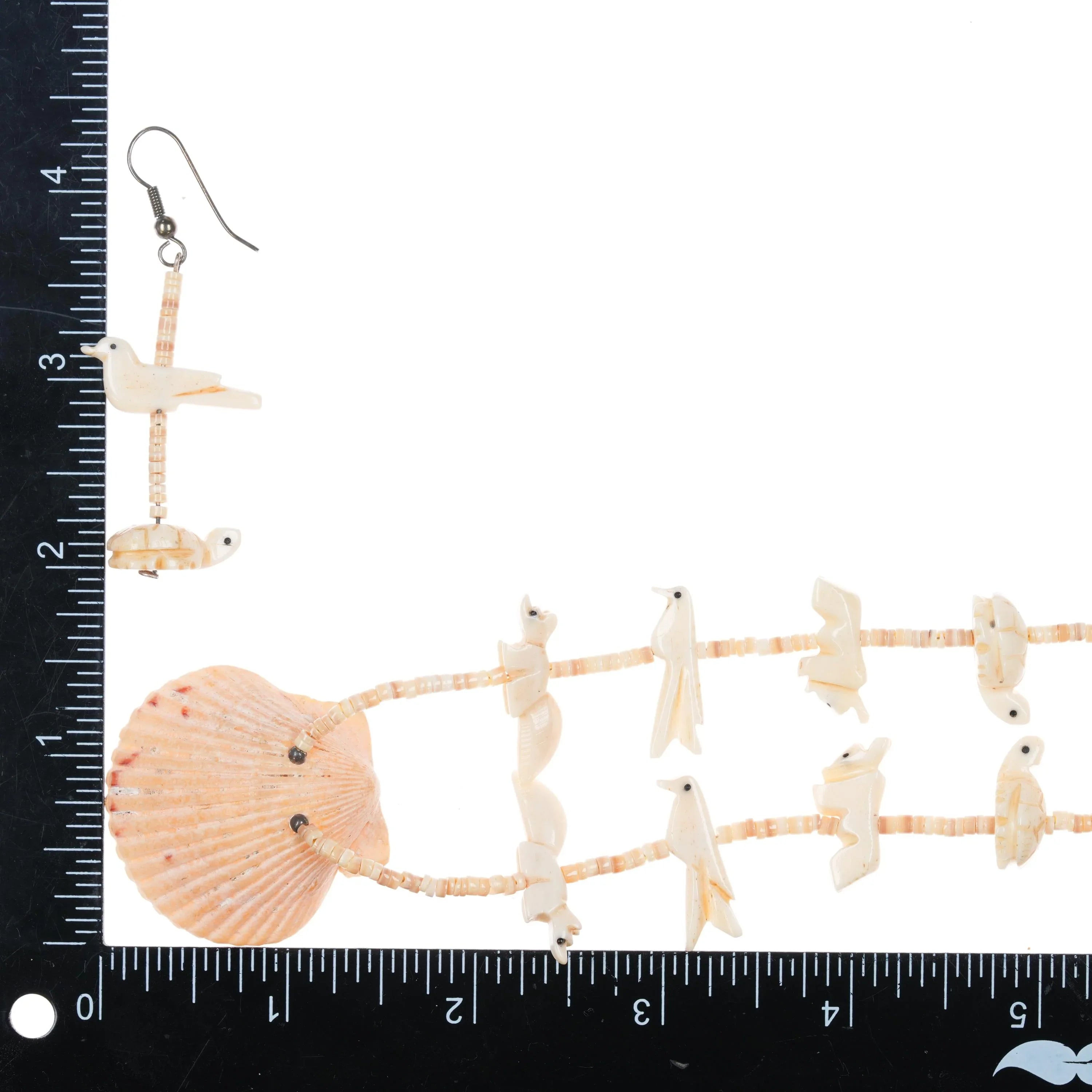 1970's Carved Bone/Shell Northwest coast Native American silver fetish necklace