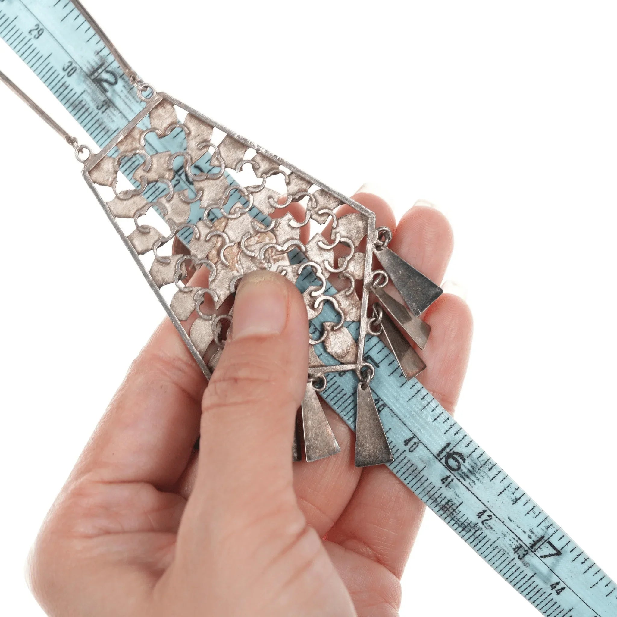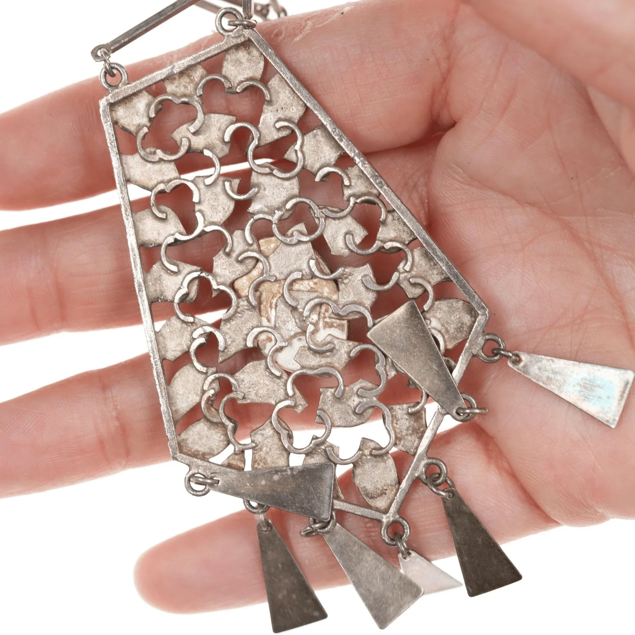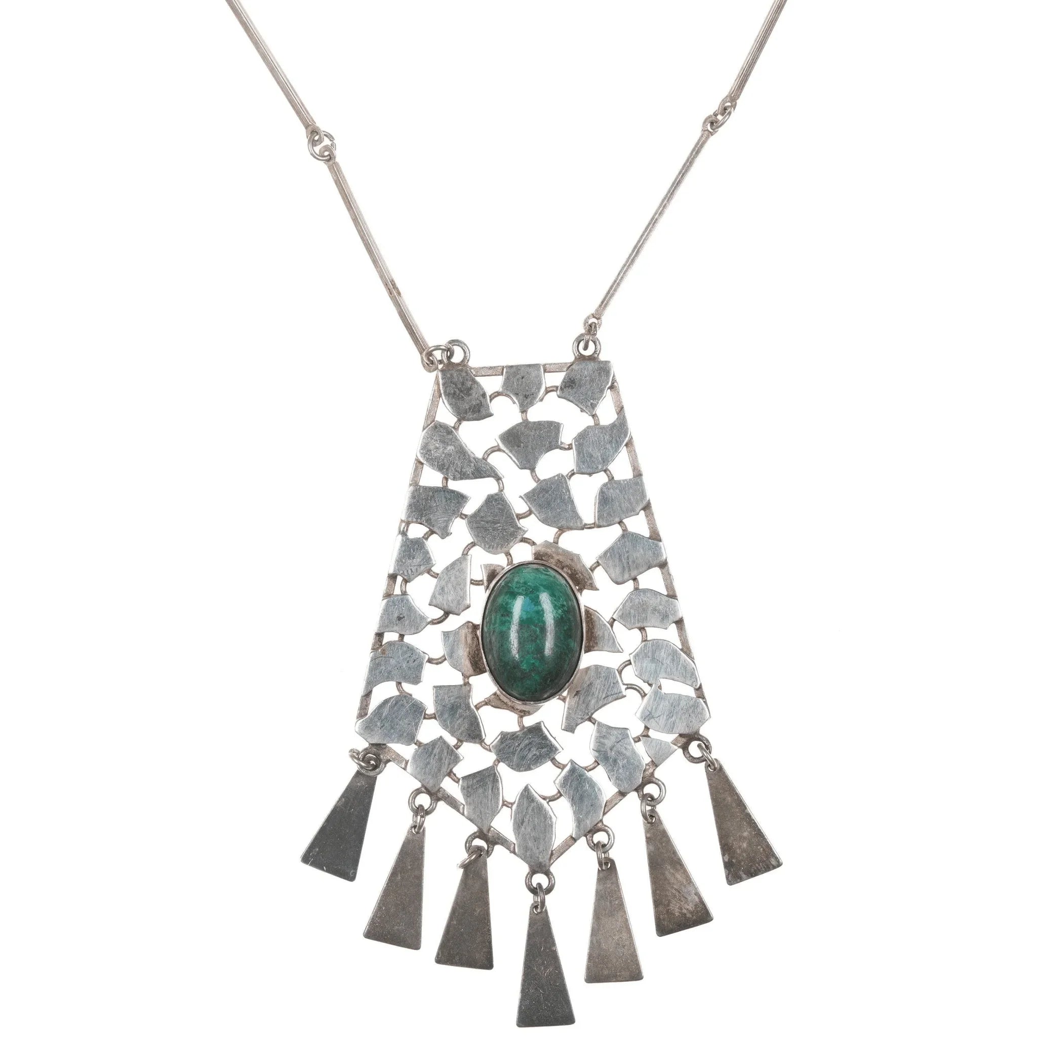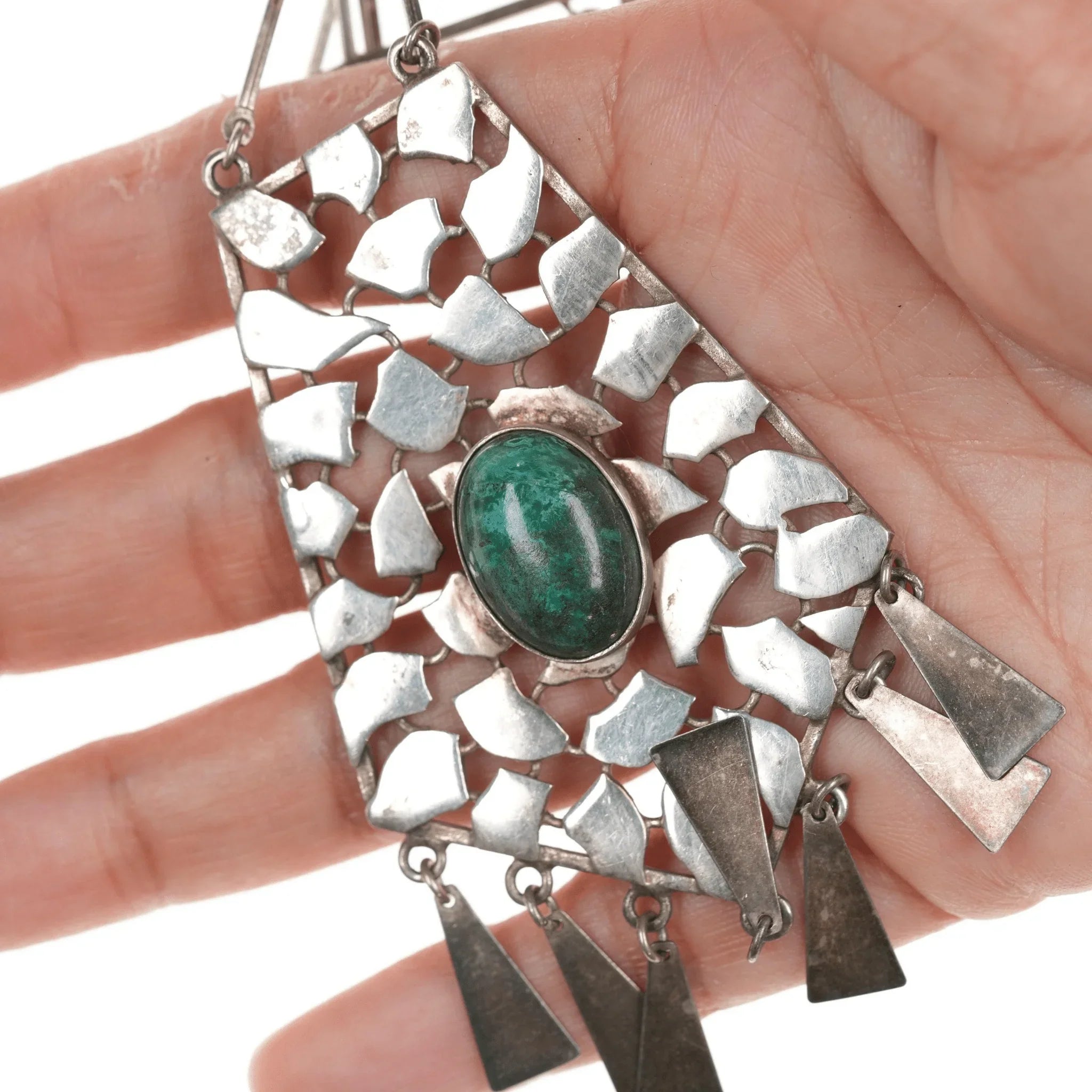 24" Vintage Modernist sterling chrysocolla pendant/necklace. No aparent markings, tested and guaranteed solid sterling.
