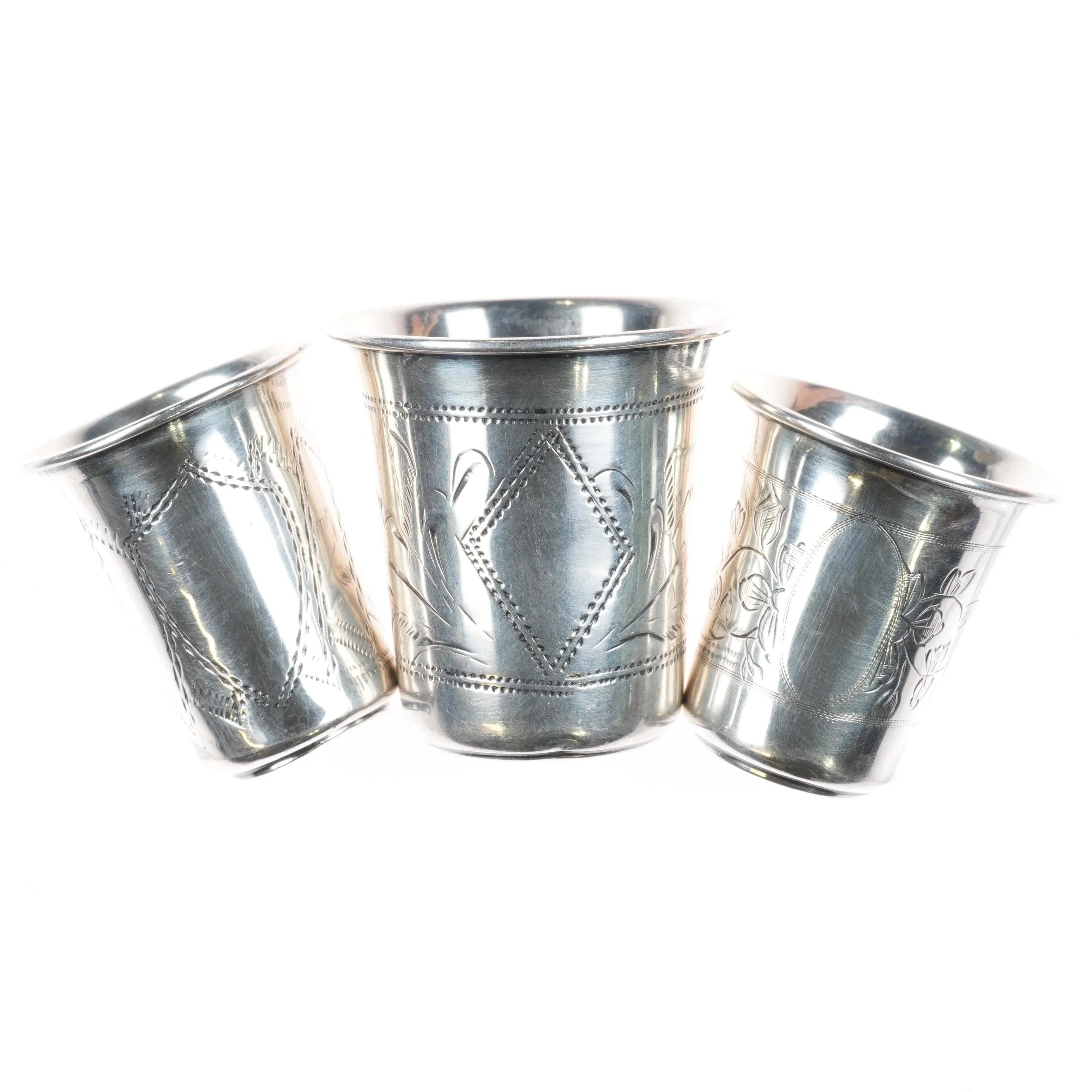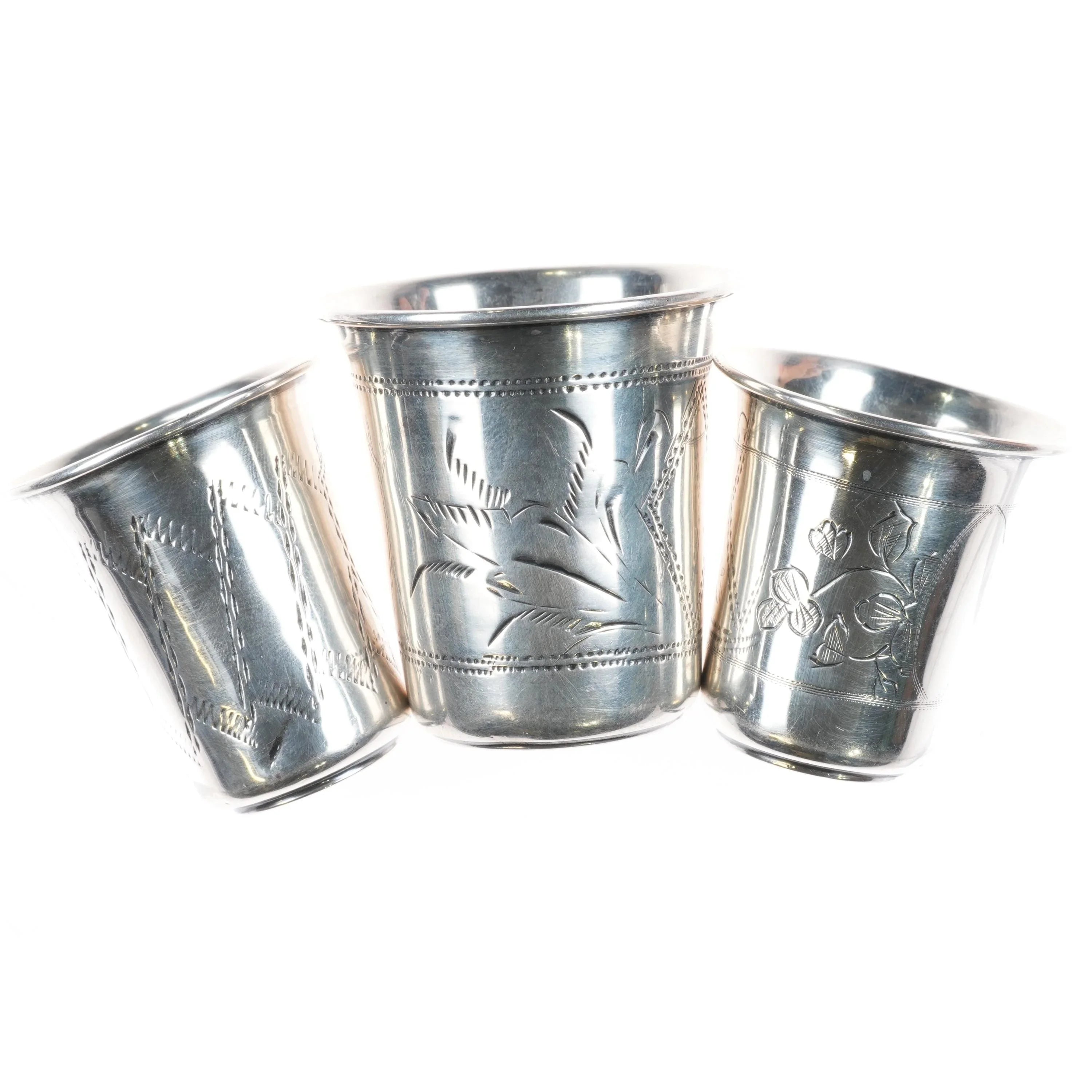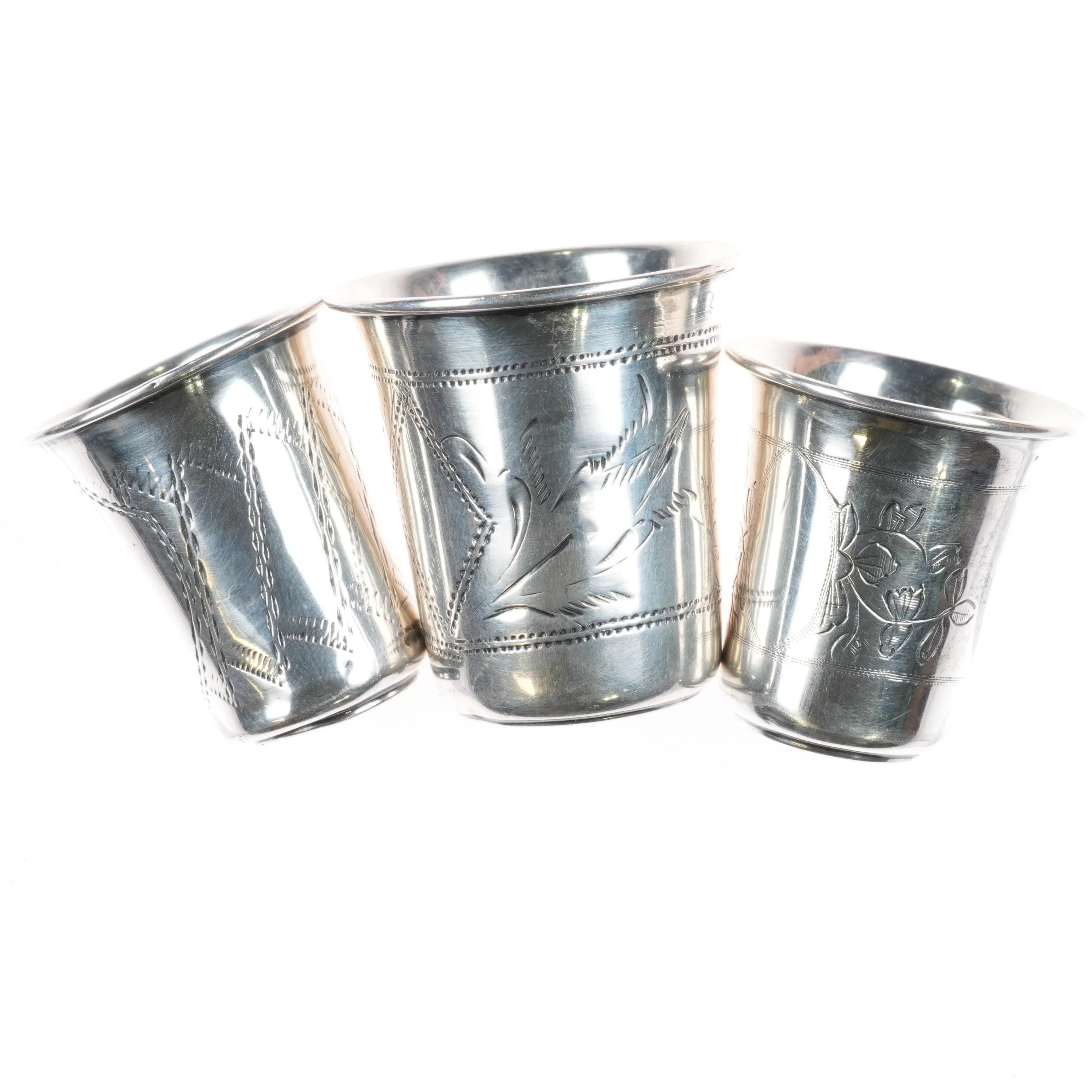 3 Antique Russian 84 Silver Shot glasses Kiddush Cup Sterling