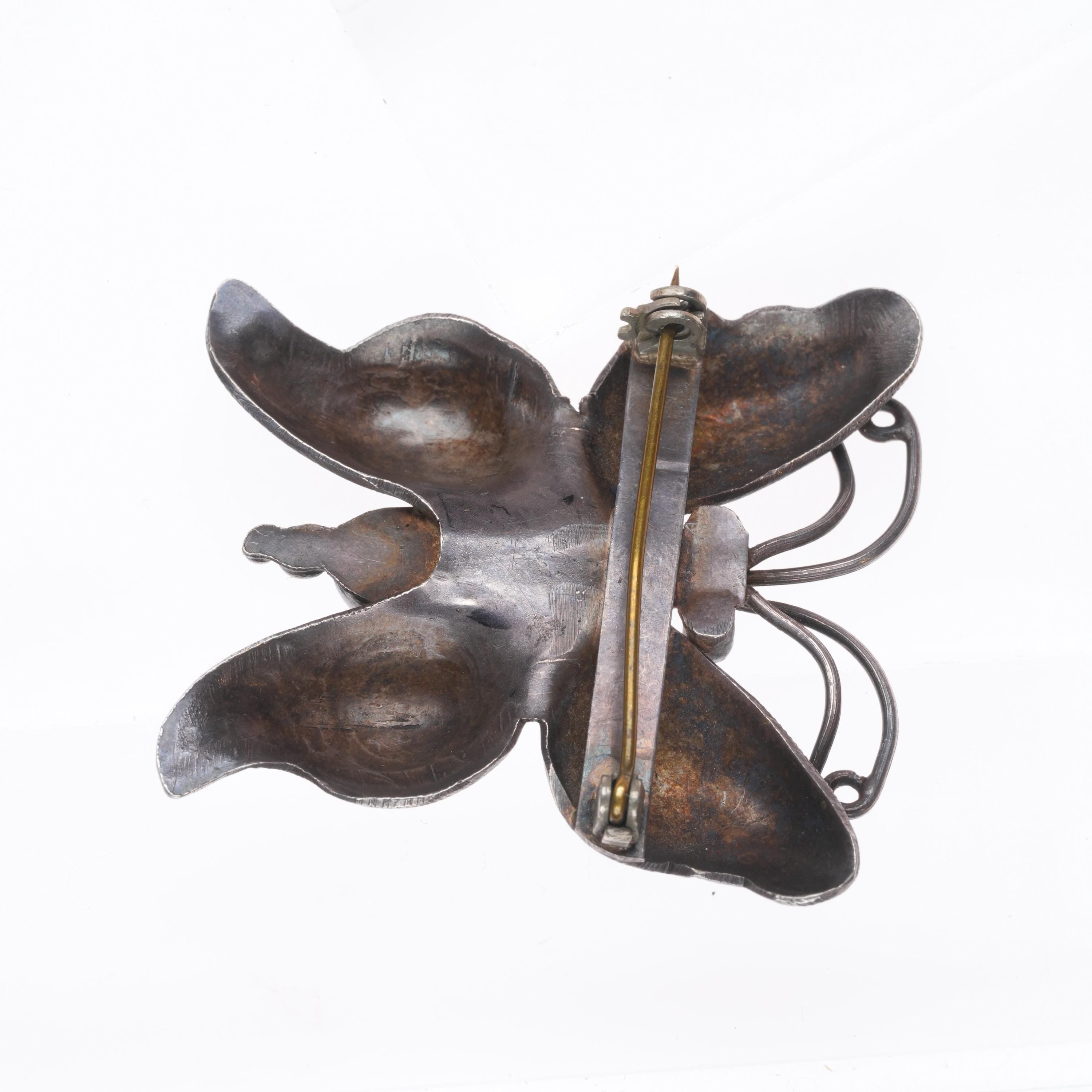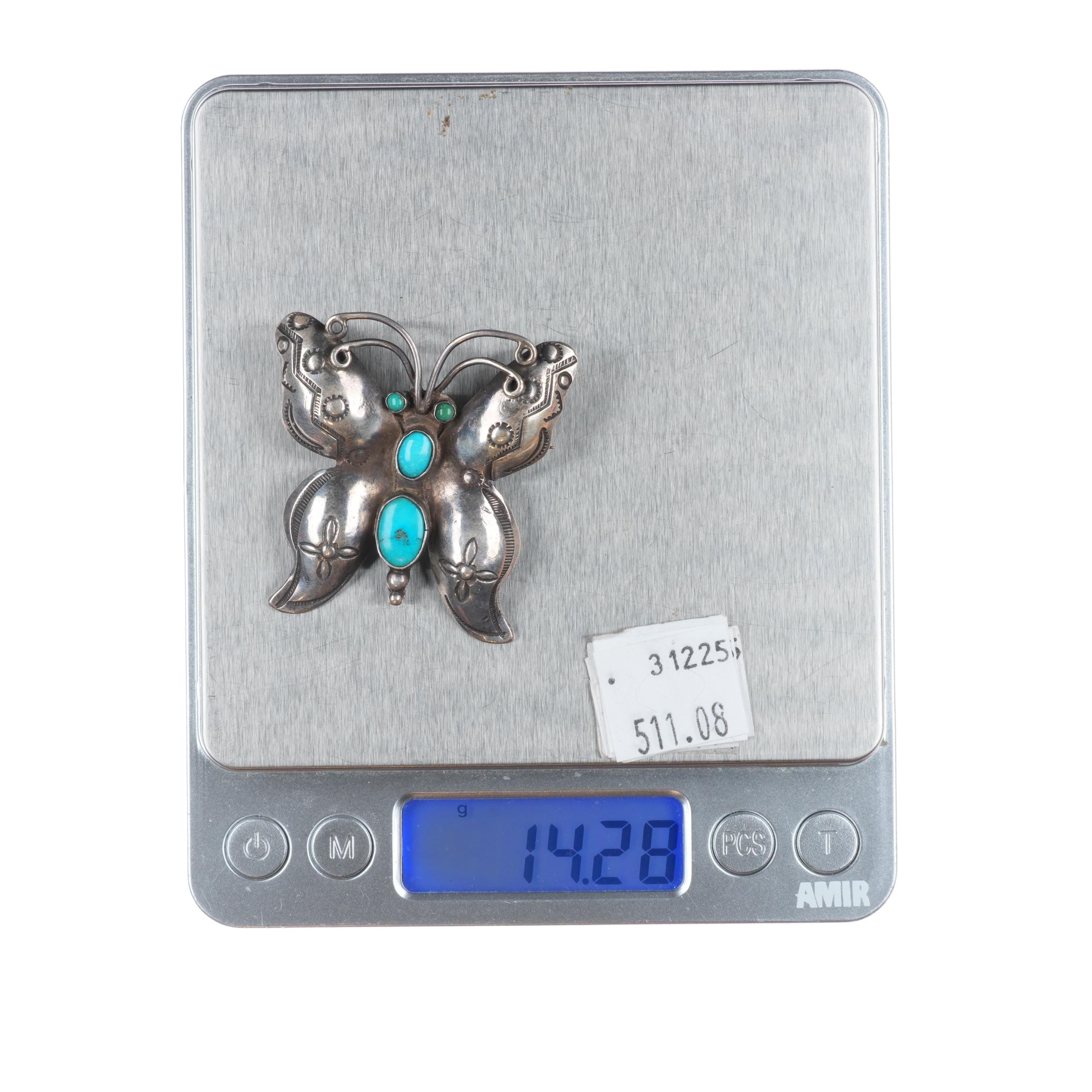 30's-40's Navajo sterling silver hand stamped butterfly pin with turquoise