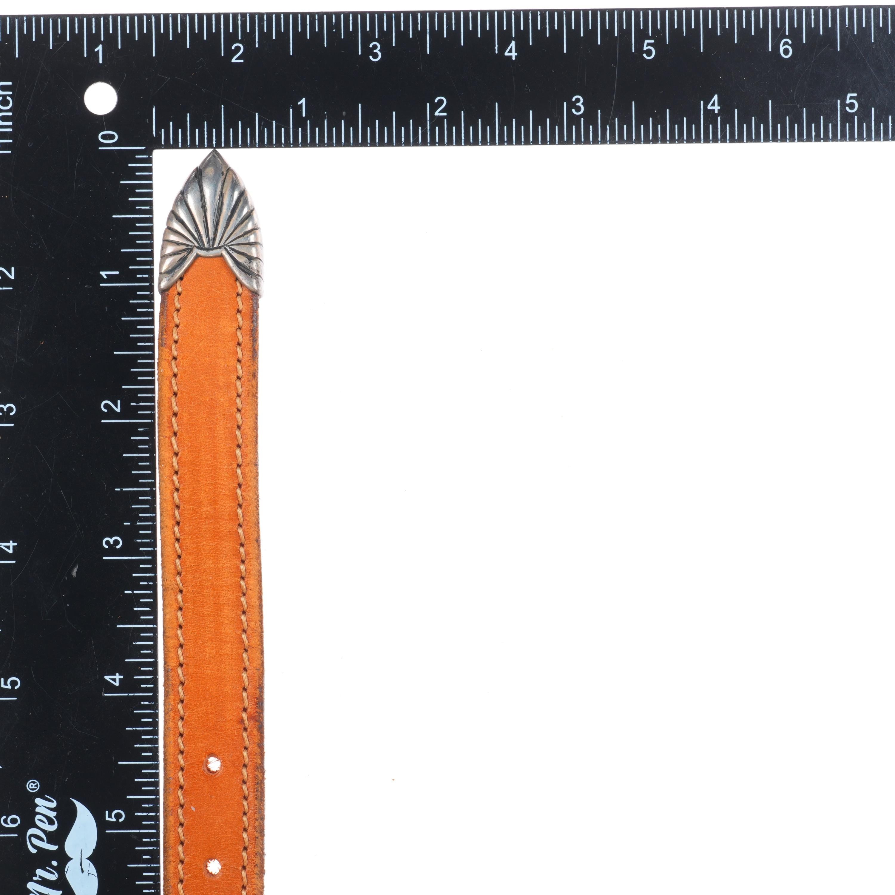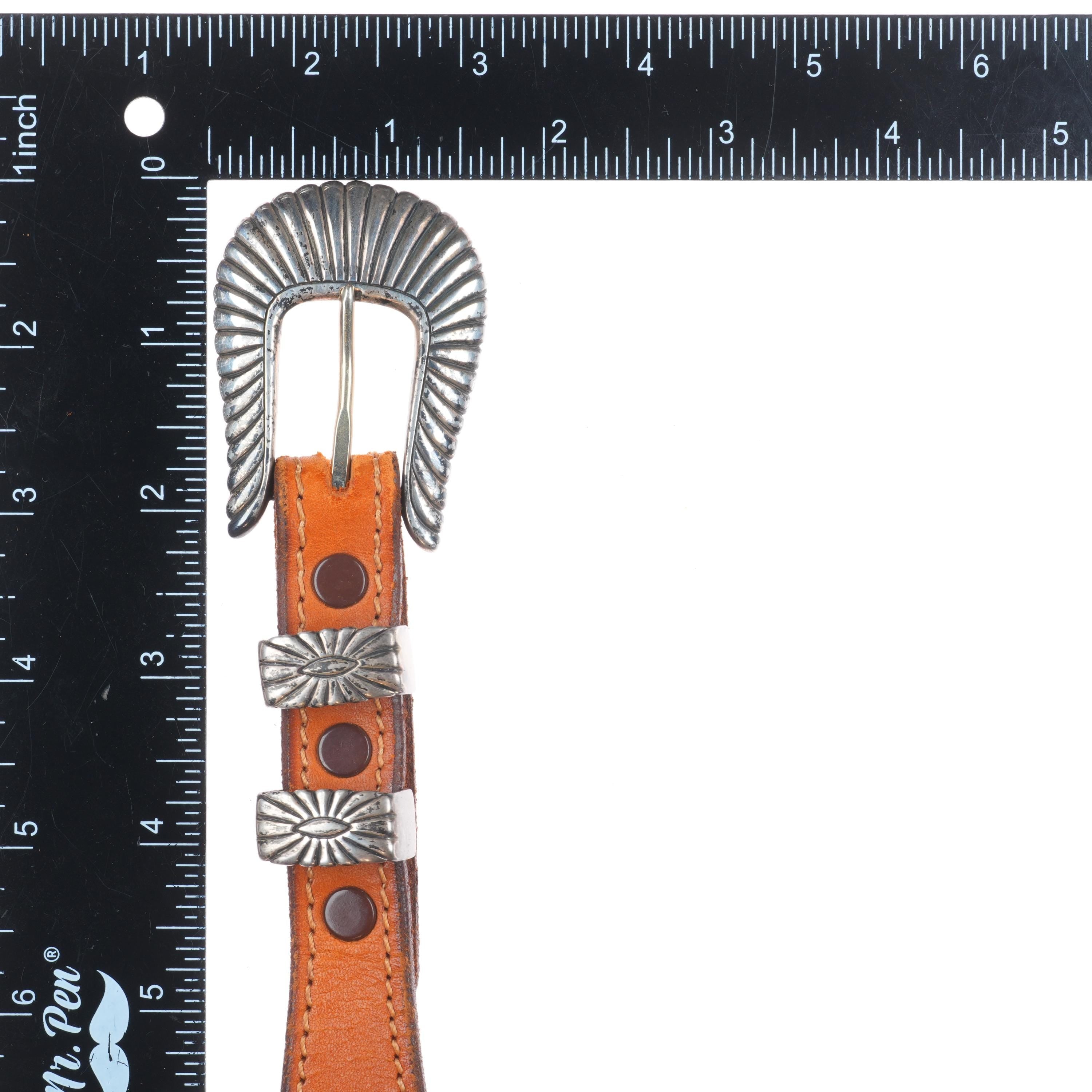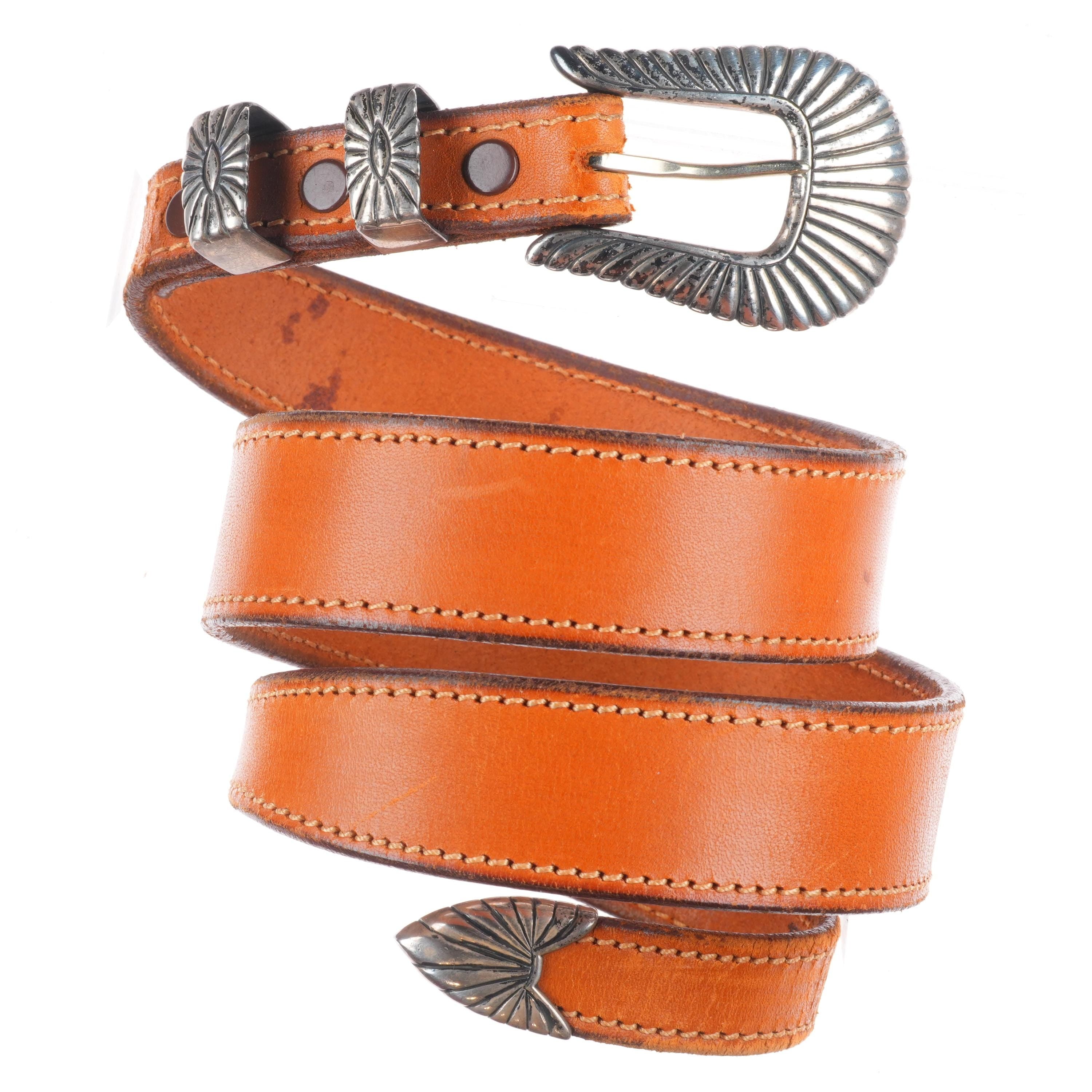 Ranger belts taper down at the buckle/keeper/tip as shown. Belt not guaranteed for condition, I‘m selling the sterling ranger belt buckle set and the belt is free, last hole on belt is 31.5". Ranger set is made in Mexico.