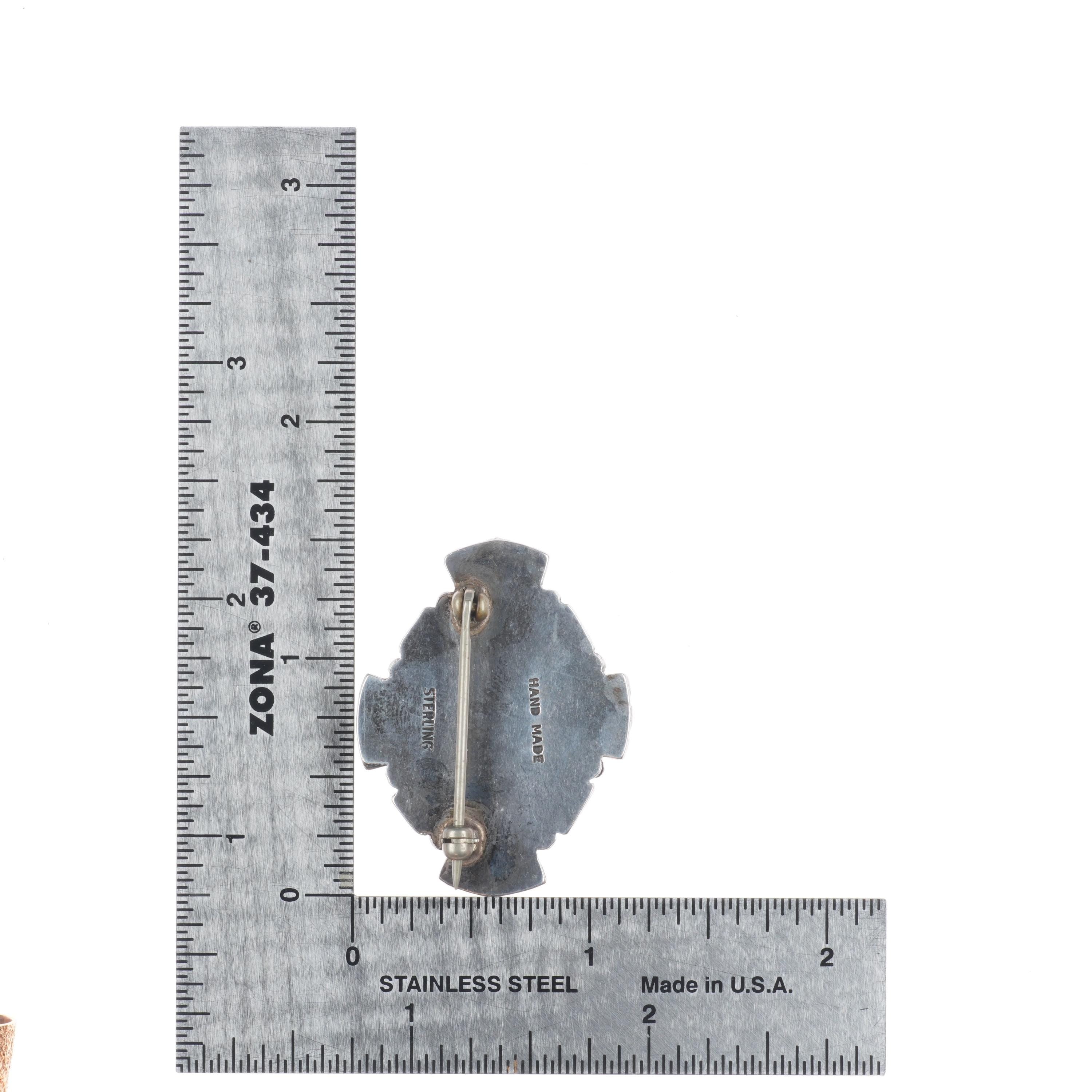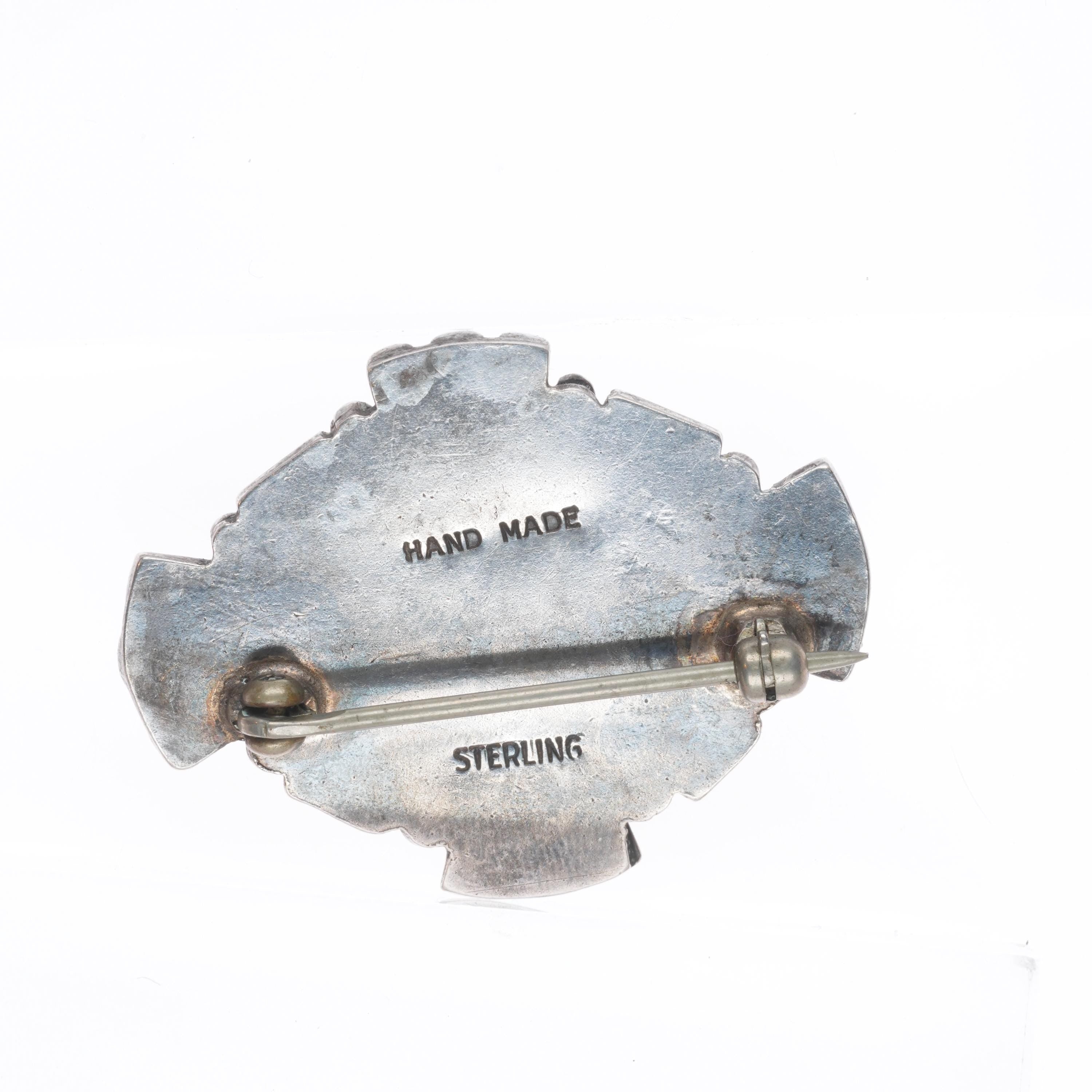 40‘s-50‘s Vintage Navajo sterling silver #8 spiderweb turquoise pin/brooch. Solid sterling silver tested and guaranteed with weight and measurements in the pictures. No issues, Circa second quarter of the 20th century to mid 20th century.