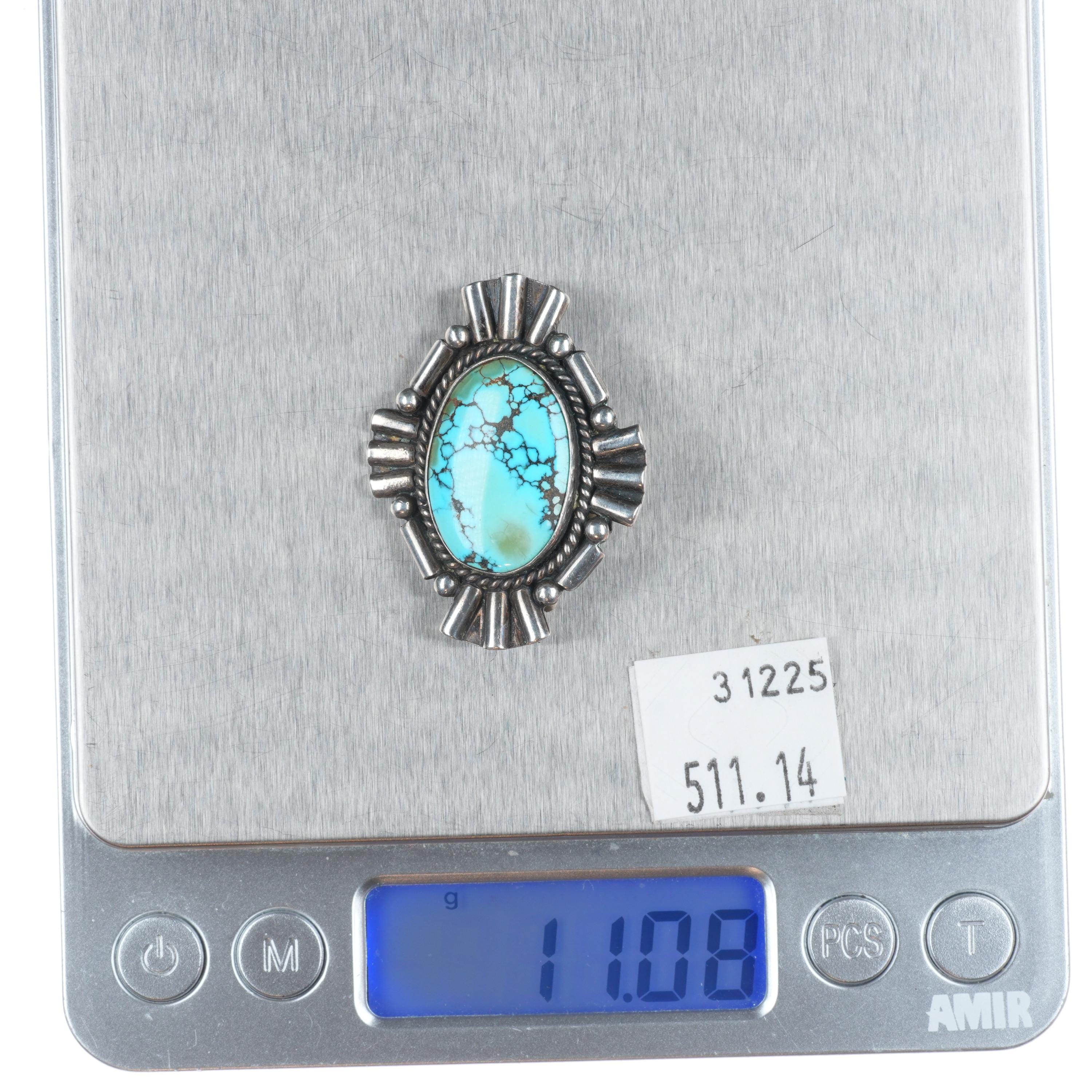 40's-50's Vintage Navajo sterling silver #8 spiderweb turquoise pin/brooch