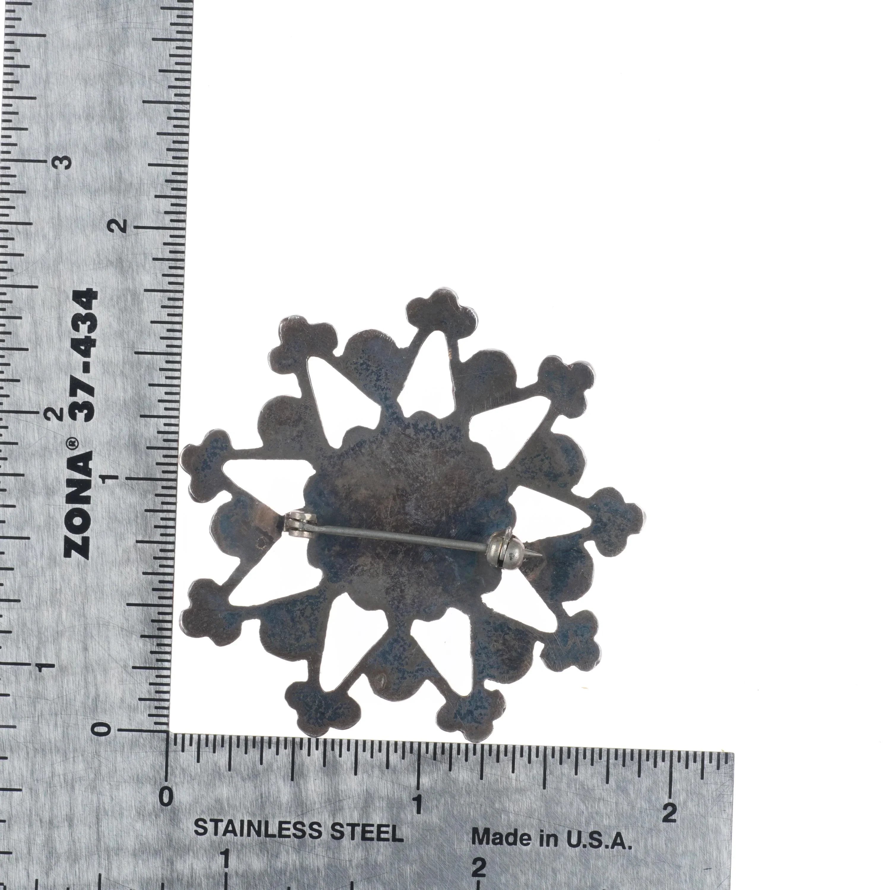 40's Zuni sterling silver petit point/snake eye turquoise snowflake pin/brooch