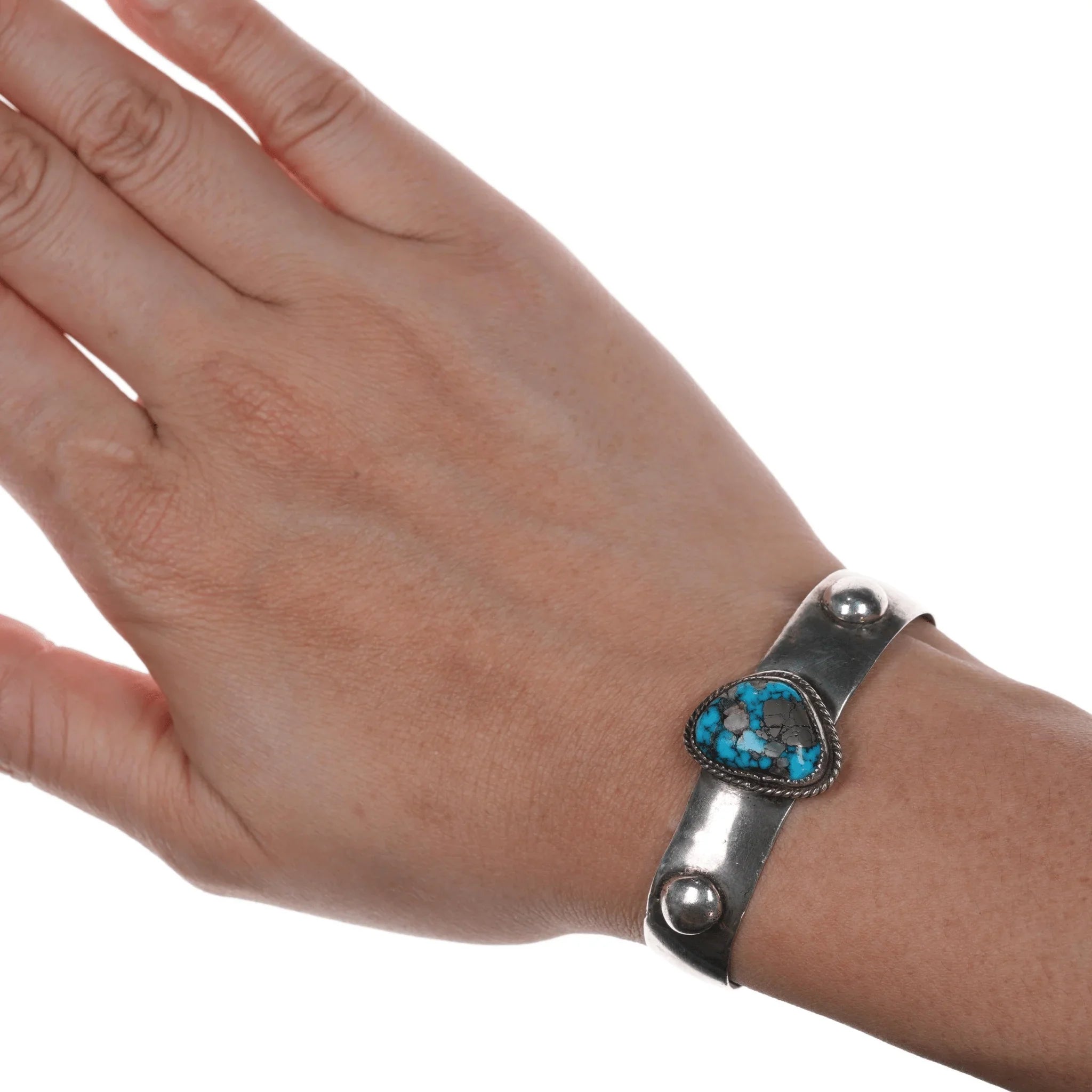 5 3/8" Vintage Morenci turquoise sterling cuff bracelet. Very nice stone with some missing matrix, currently stable if not abused.